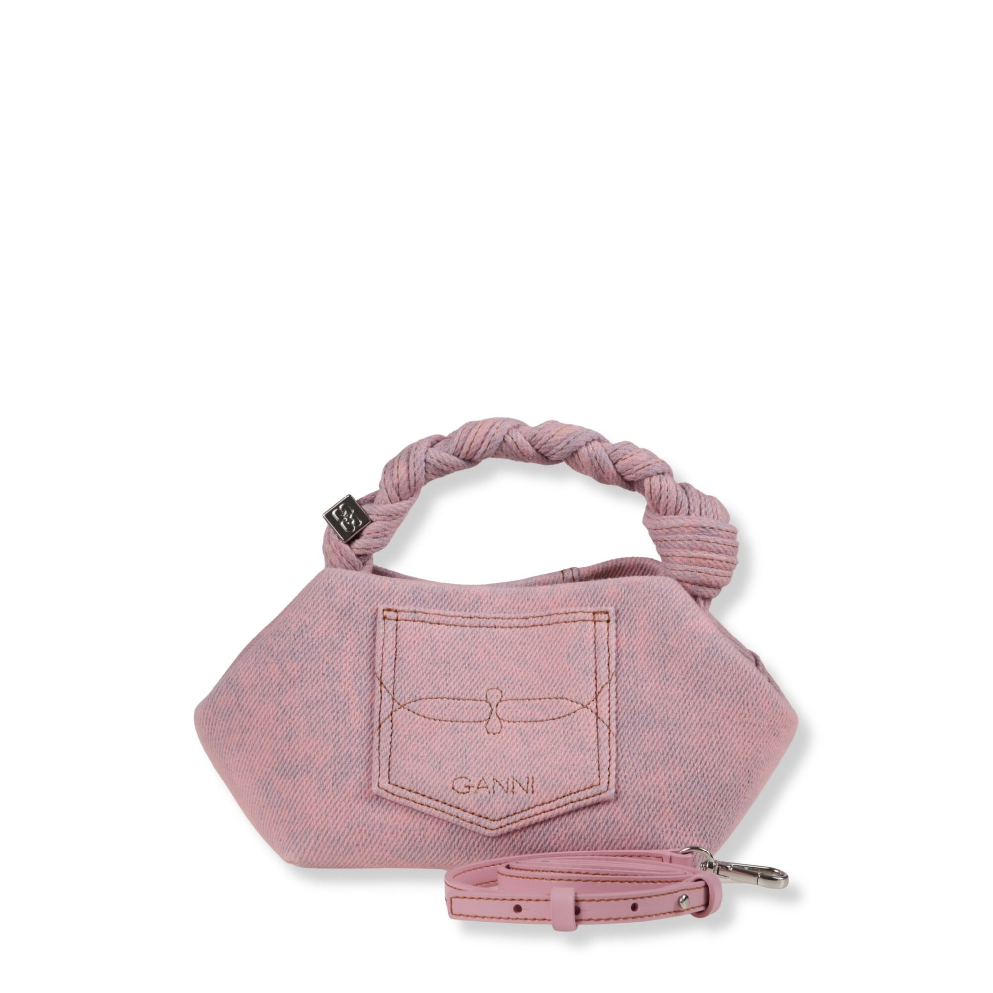 Small Bou Bag Ganni. Design iconico con manico superiore intrecciato e dettaglio dice charm laterale. Interno con chiusura magnetica e slot per carte integrato. Dotata di tracolla rimovibile coordinata.