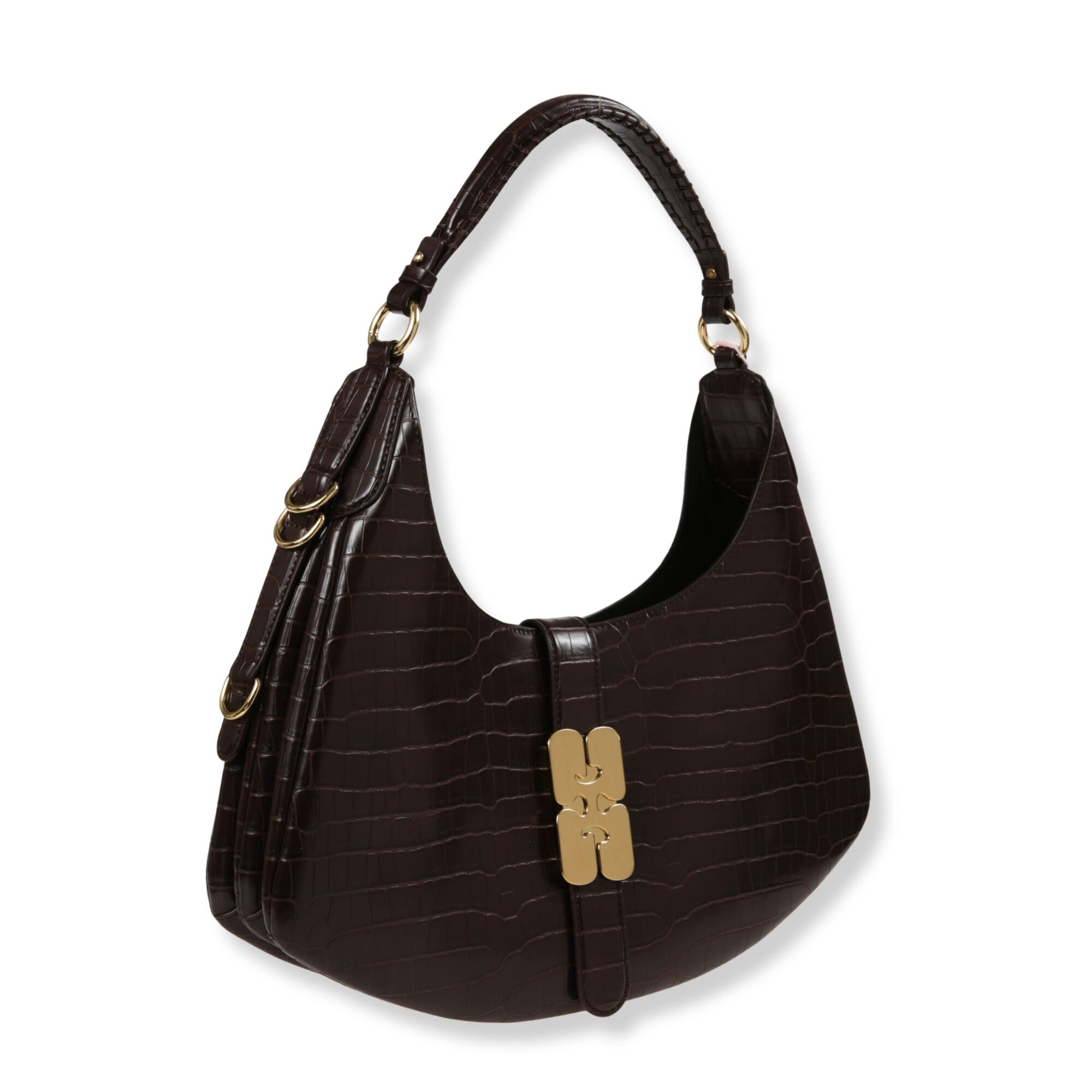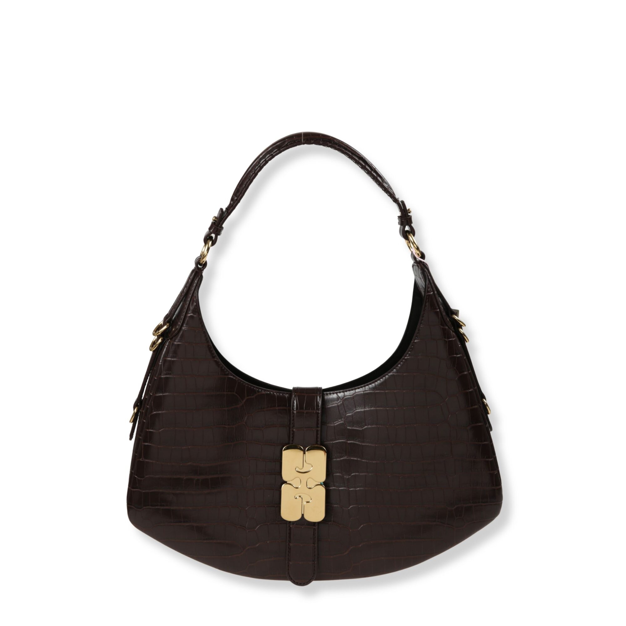 Small Kat Bag Ganni. Design iconico con soffietto, chiusura superiore a zip e manico singolo, in pelle con finitura effetto coccodrillo.