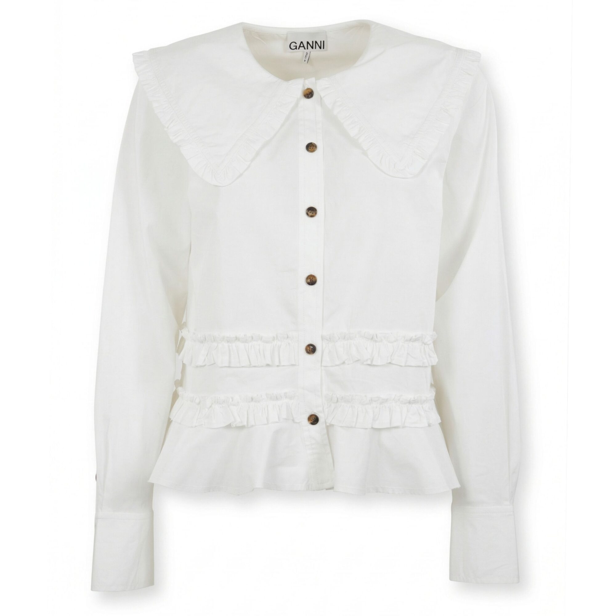 Ruffle Shirt Ganni. Colletto rifinito con ruches, chiusura frontale con bottoni, dettagli a balze.