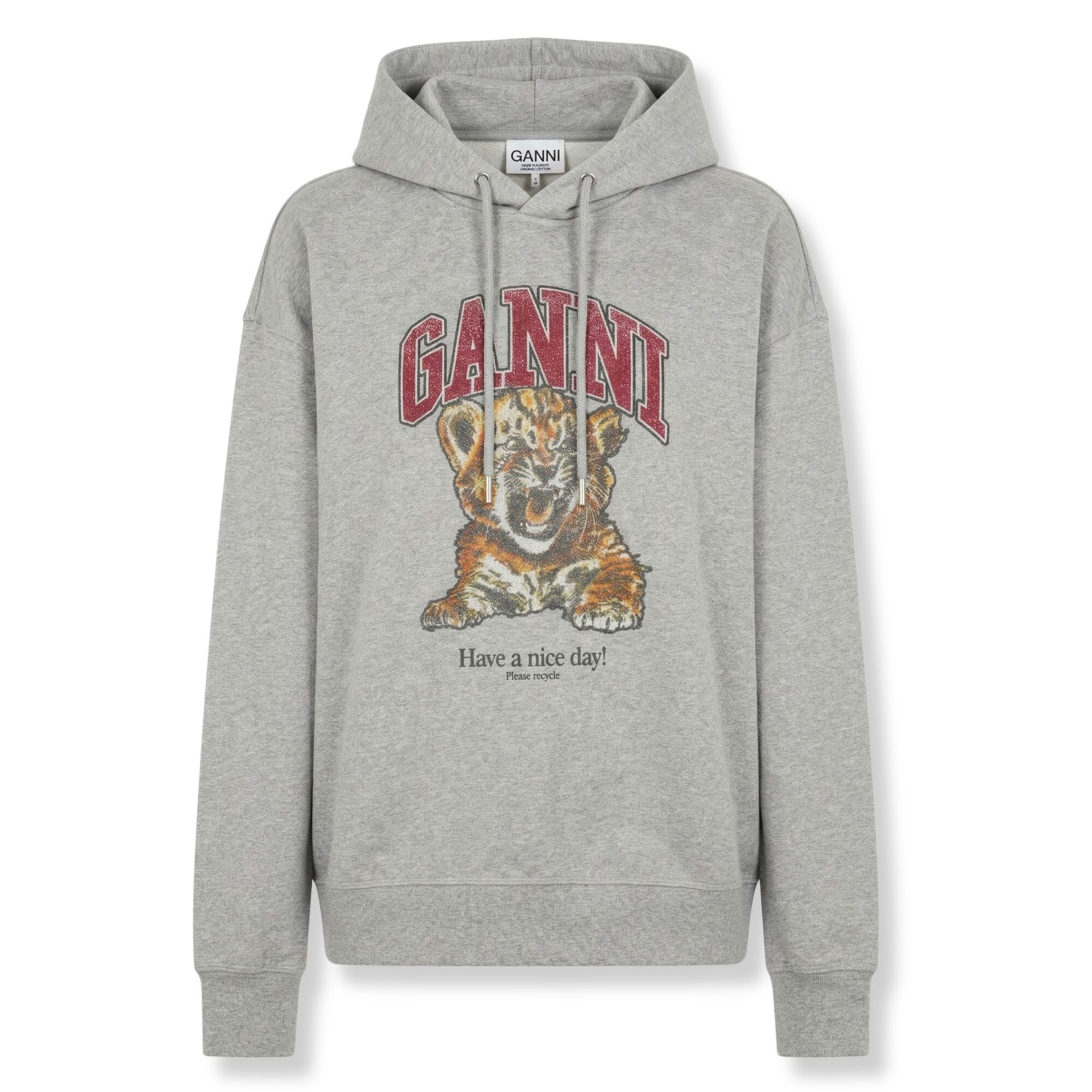 Tiger Hoodie Ganni. Cappuccio, stampa frontale con logo del brand e bordi a costine.