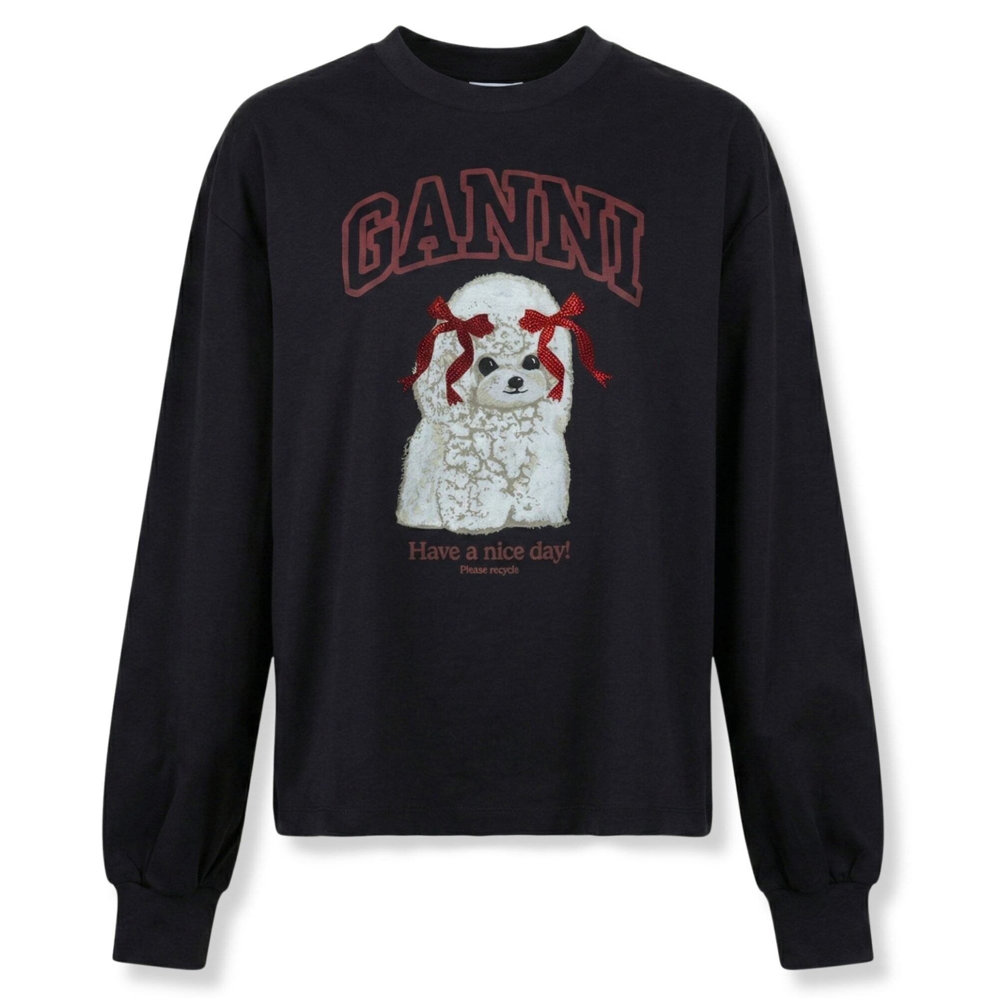 Maglia Poodle Long-sleeve Ganni. Scollo rotondo e bordi a costine, grafica frontale con logo del brand.