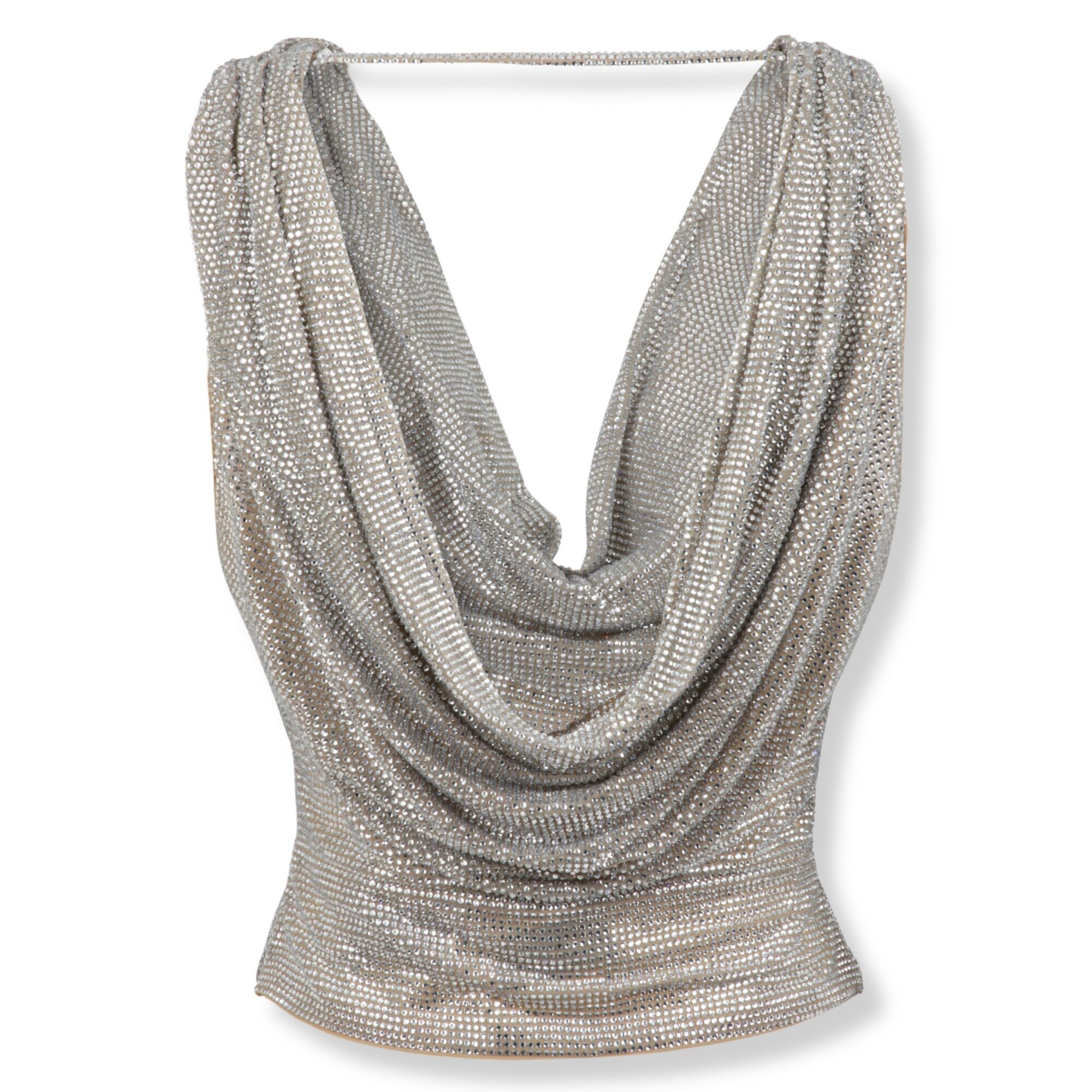 Top Smanicato in Cristalli Giuseppe di Morabito. Vestibilità regolare, con ampio drappo sul fronte e sul retro, decorato con cristalli all-over.