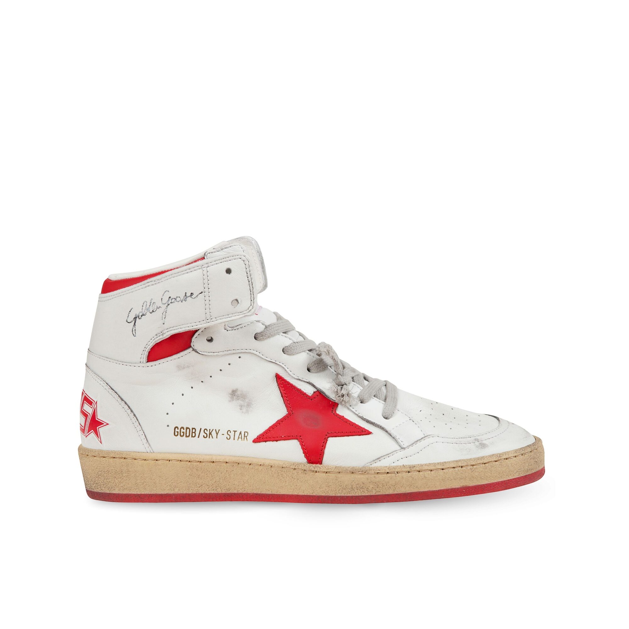 Sneakers Sky-Star Golden Goose. Modello high-top in nappa con dettagli iconici e logo del brand. Punta tonda e suola in gomma.