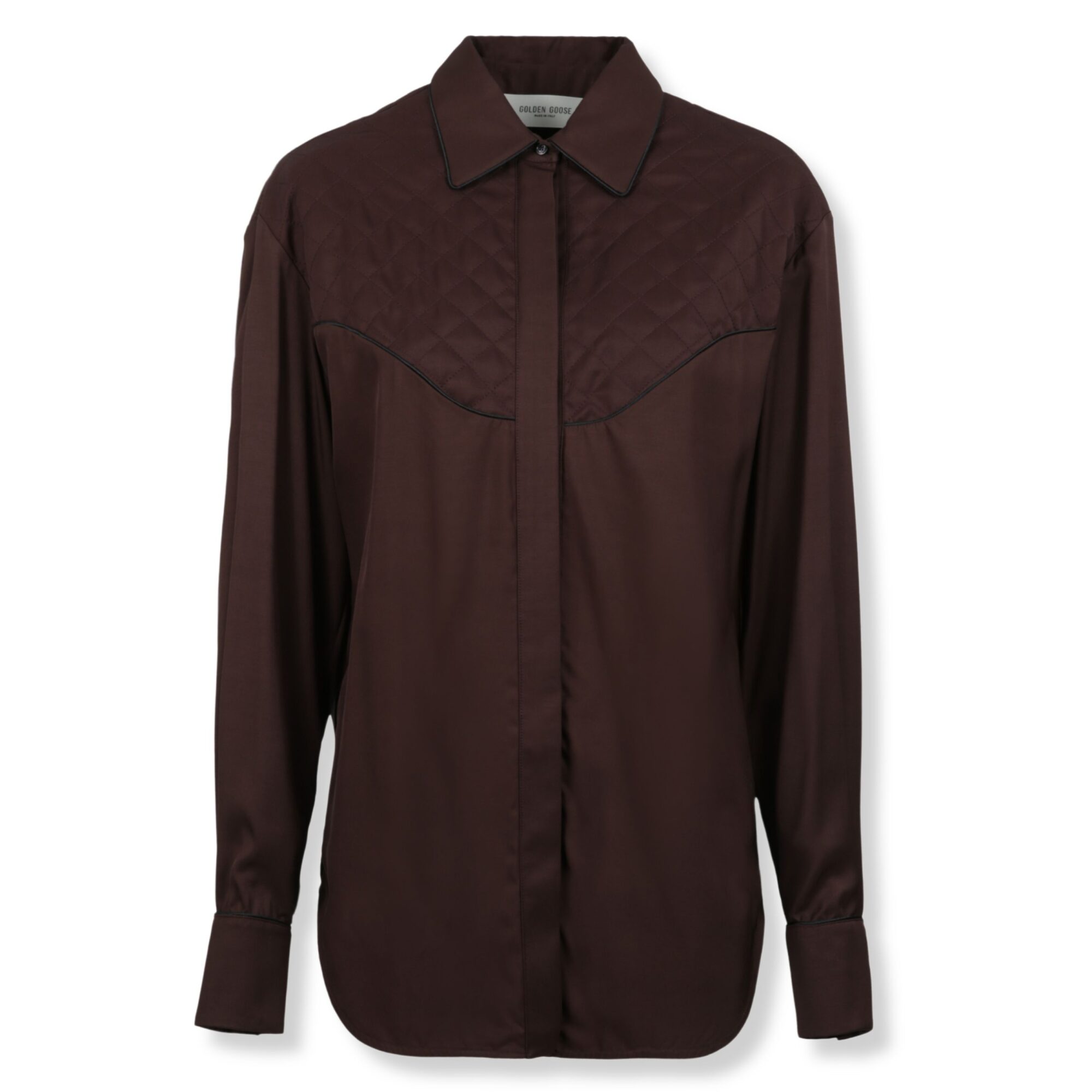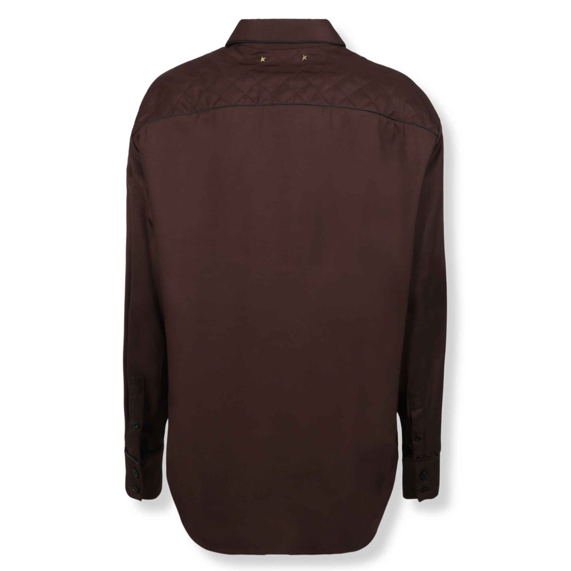 Camicia da donna Golden Goose. Vestibilità regolare, con chiusura nascosta frontale. Dettagli trapuntati sul petto e doppia stellina icona del brand sul retro.