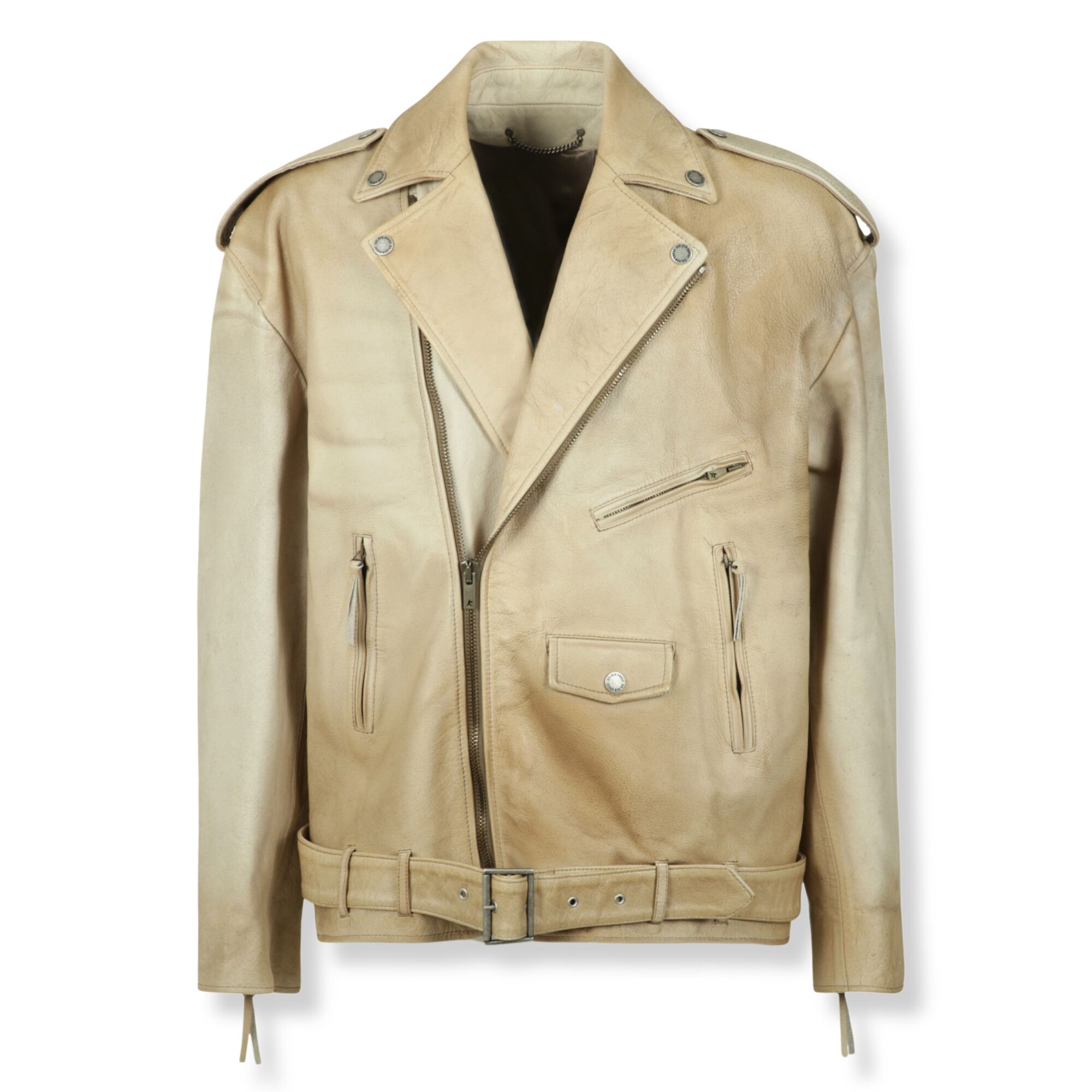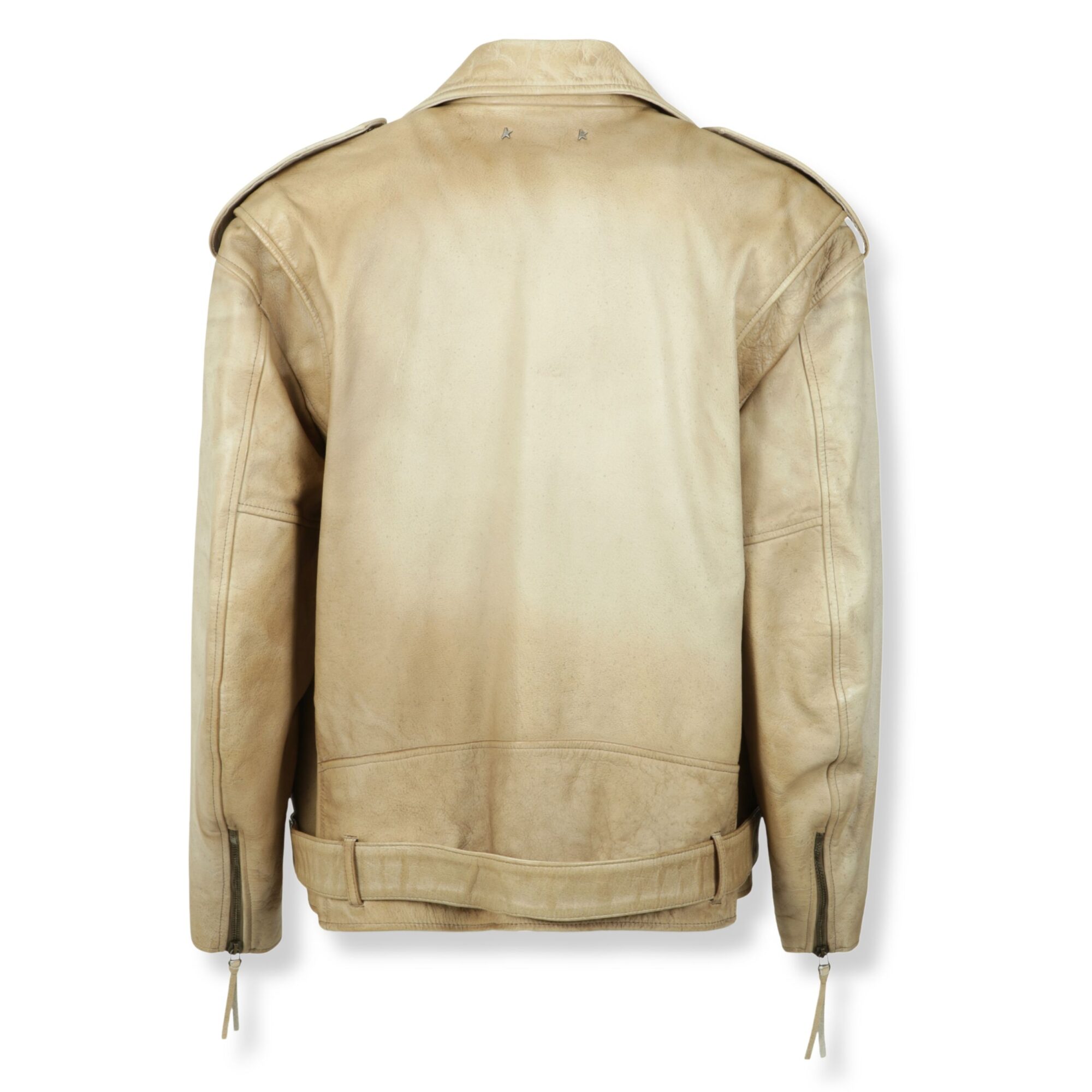 Giacca in pelle Phoebe Golden Goose. Design in stile biker con collo rever e chiusura a zip asimmetrica frontale. Tre tasche con zip sul davanti e fondo con cintura removibile.