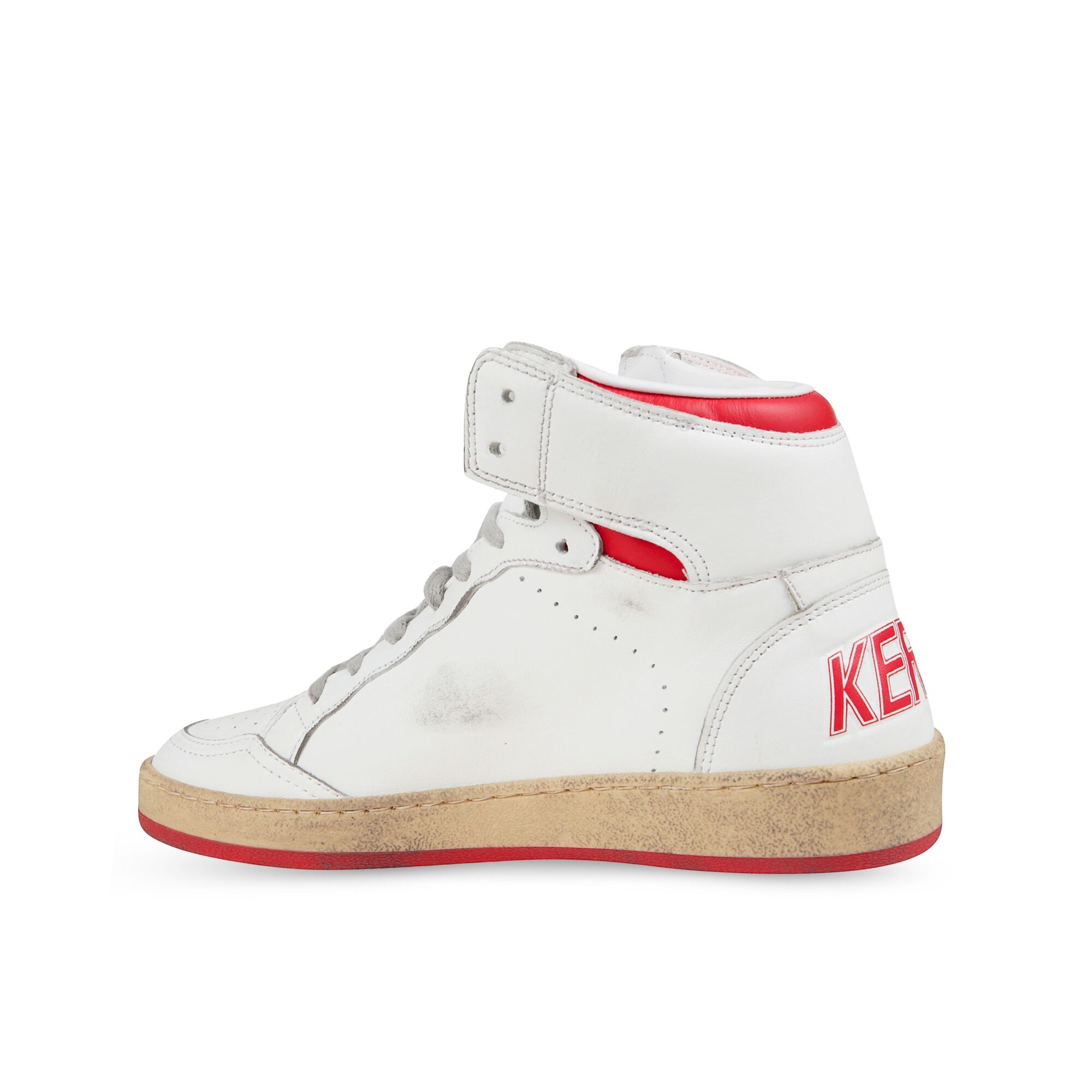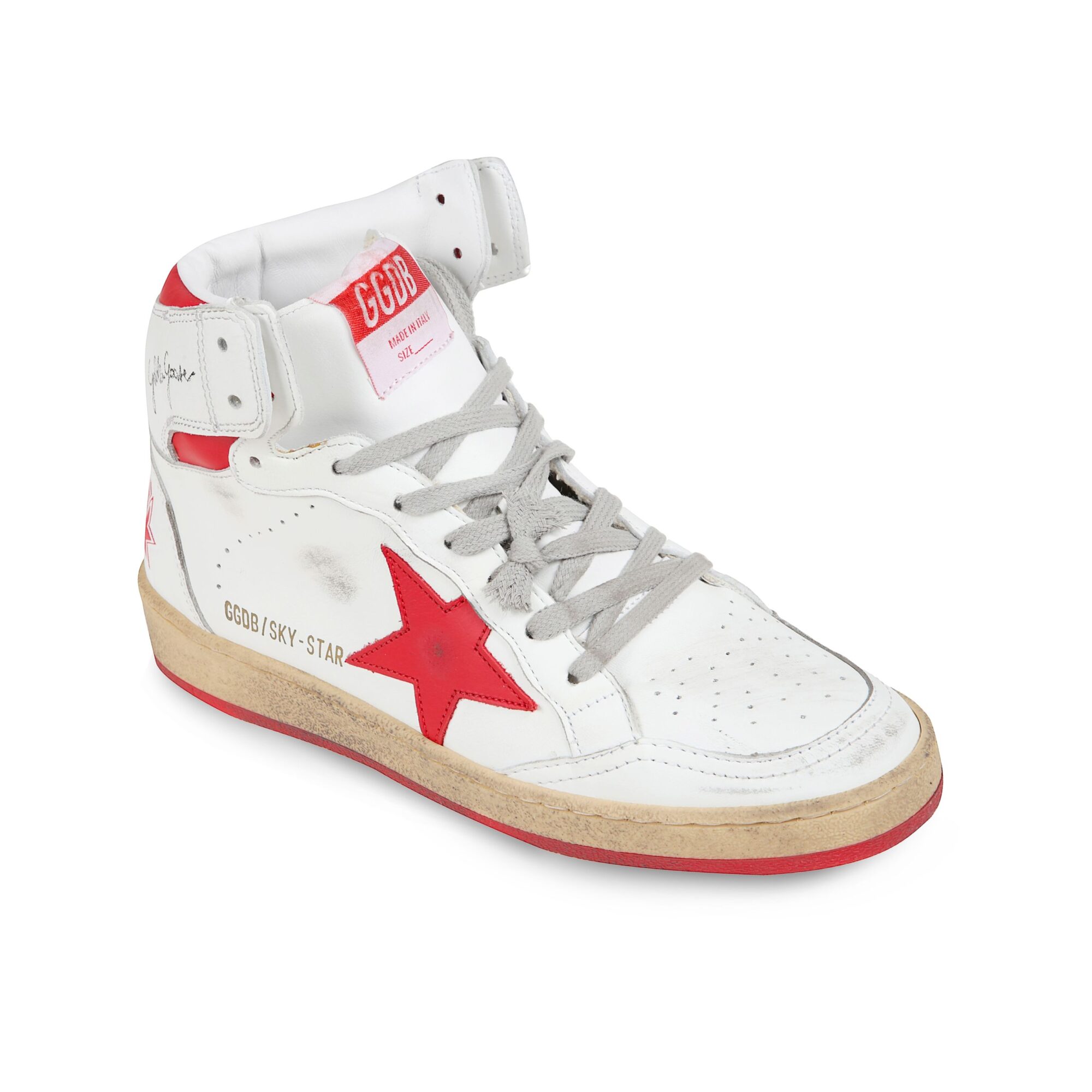 Sneakers Sky-Star Golden Goose. Modello high-top in nappa con dettagli iconici e logo del brand. Punta tonda e suola in gomma.