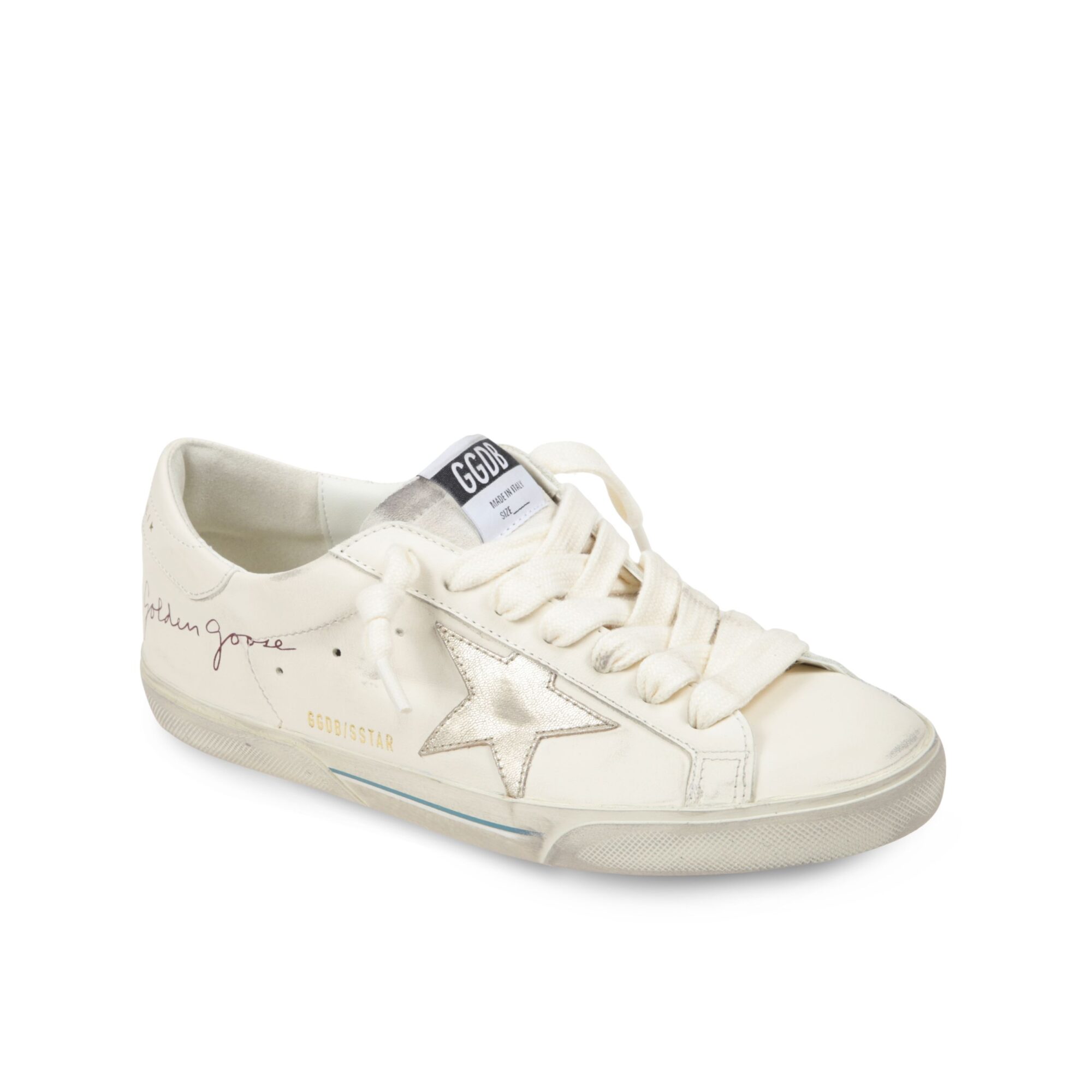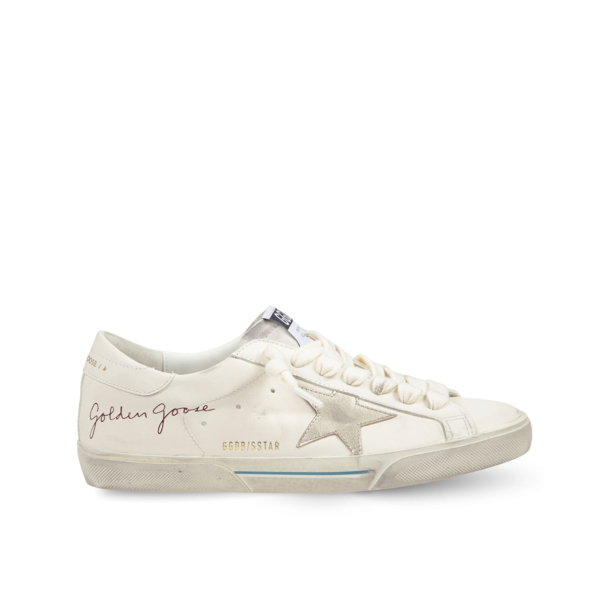 Sneakers Super-Star Golden Goose. Modello low-top in nappa, trattamento vintage, dettagli iconici e logo del brand. Punta tonda e suola in gomma.