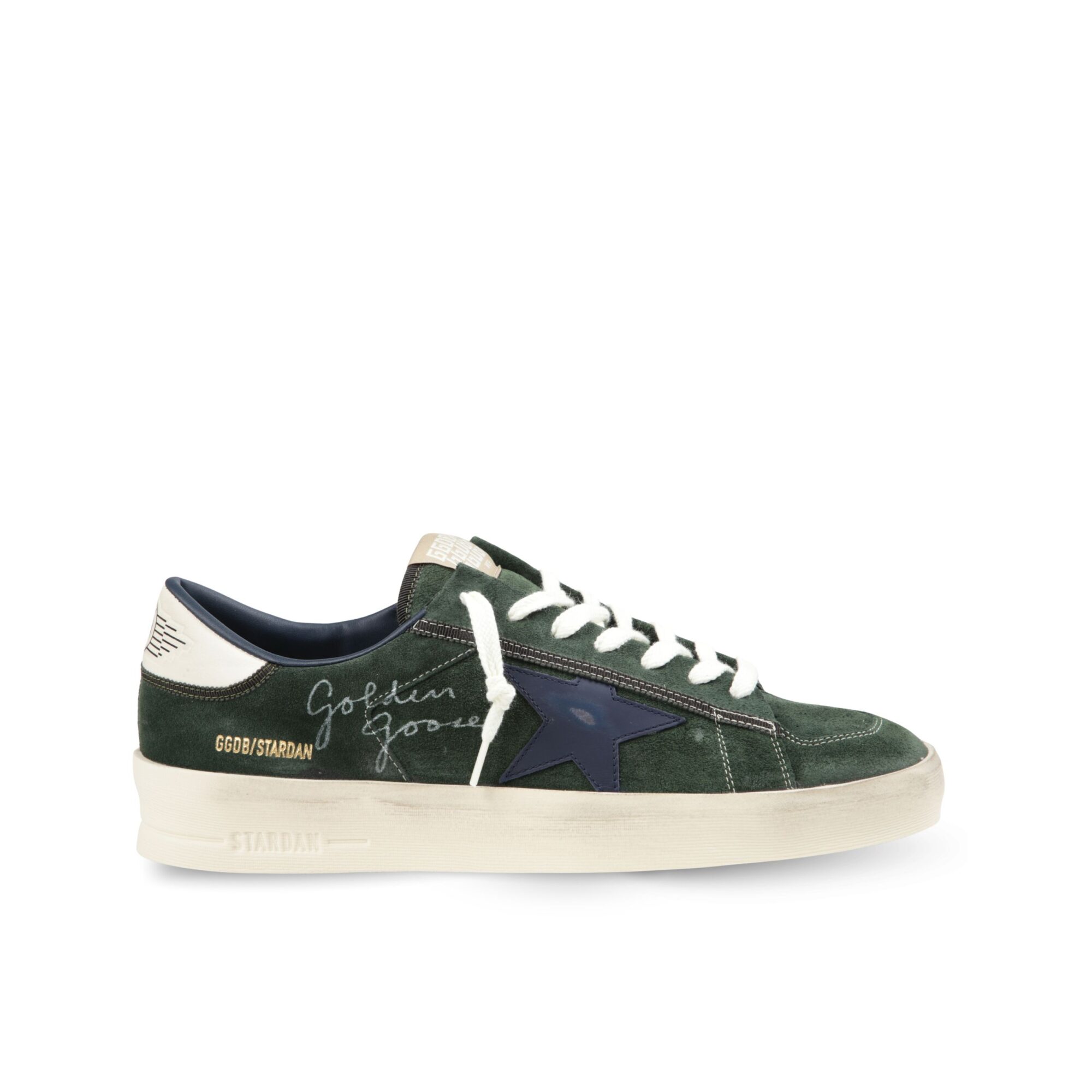 Sneakers Stardan Golden Goose. Modello low-top in suede con cuciture a vista e trattamento vintage. Dettagli iconici e logo del brand, suola in gomma.