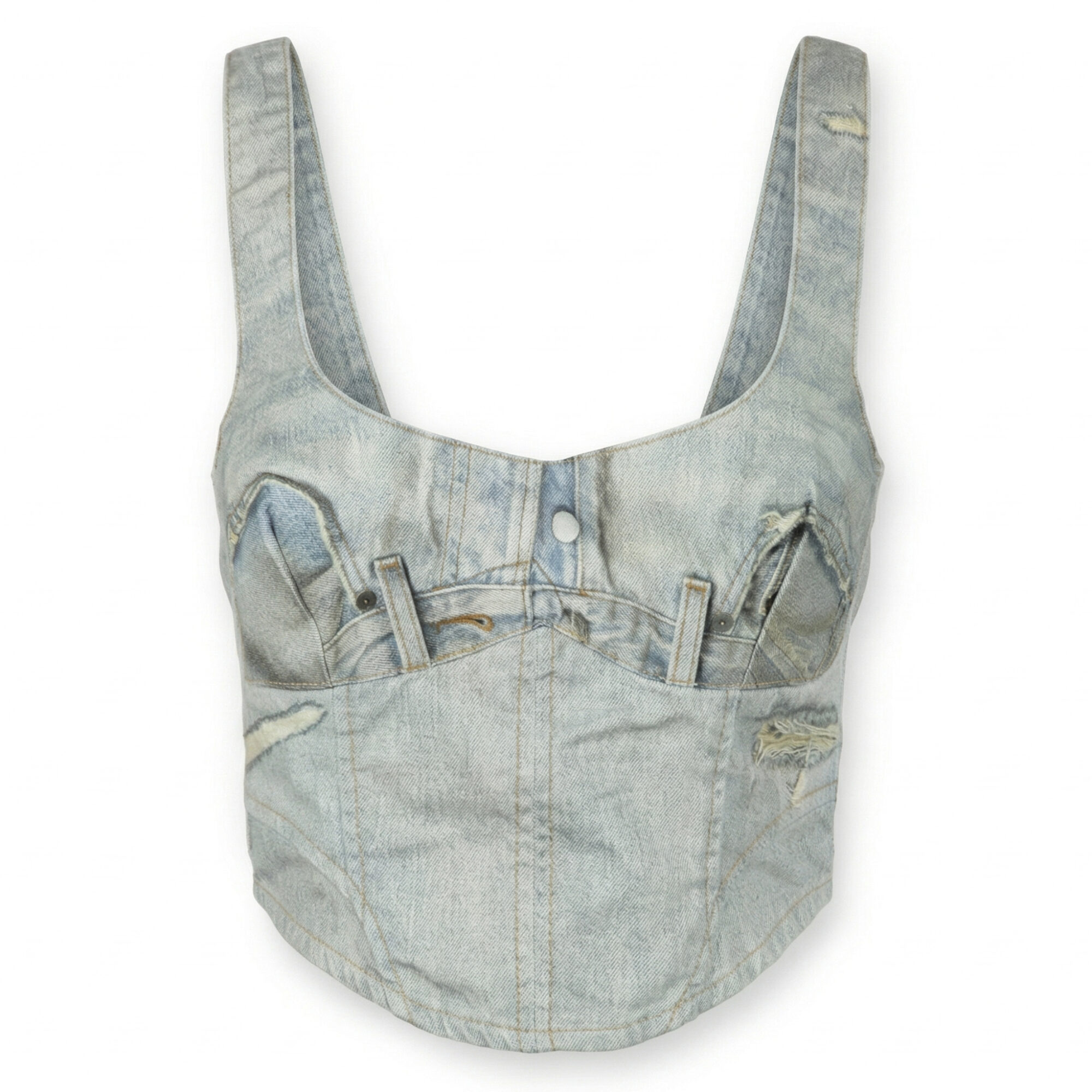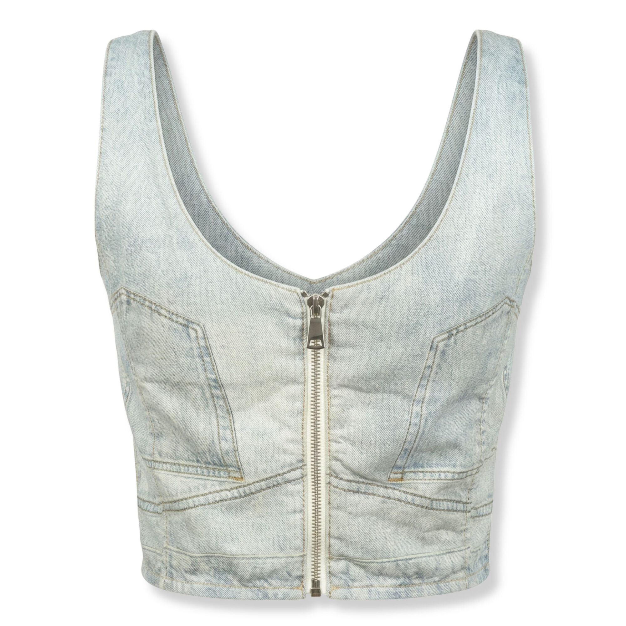 Elsie Top Haikure. Scollo squadrato sul davanti e rotondo posteriore, taglio crop, stampa trompe-l’œil.