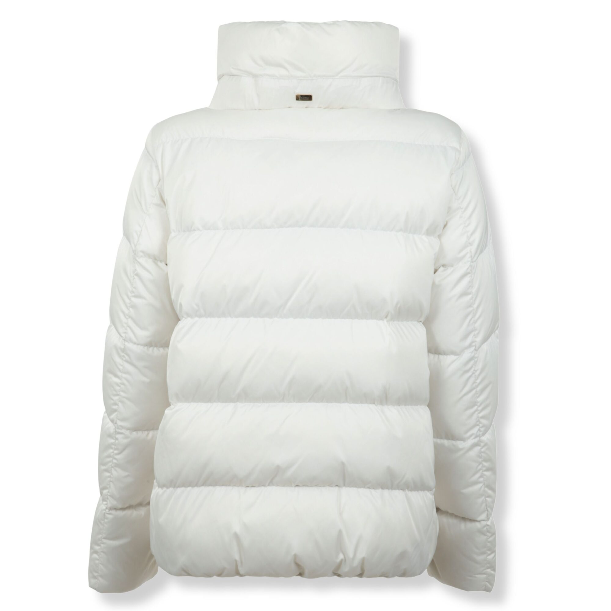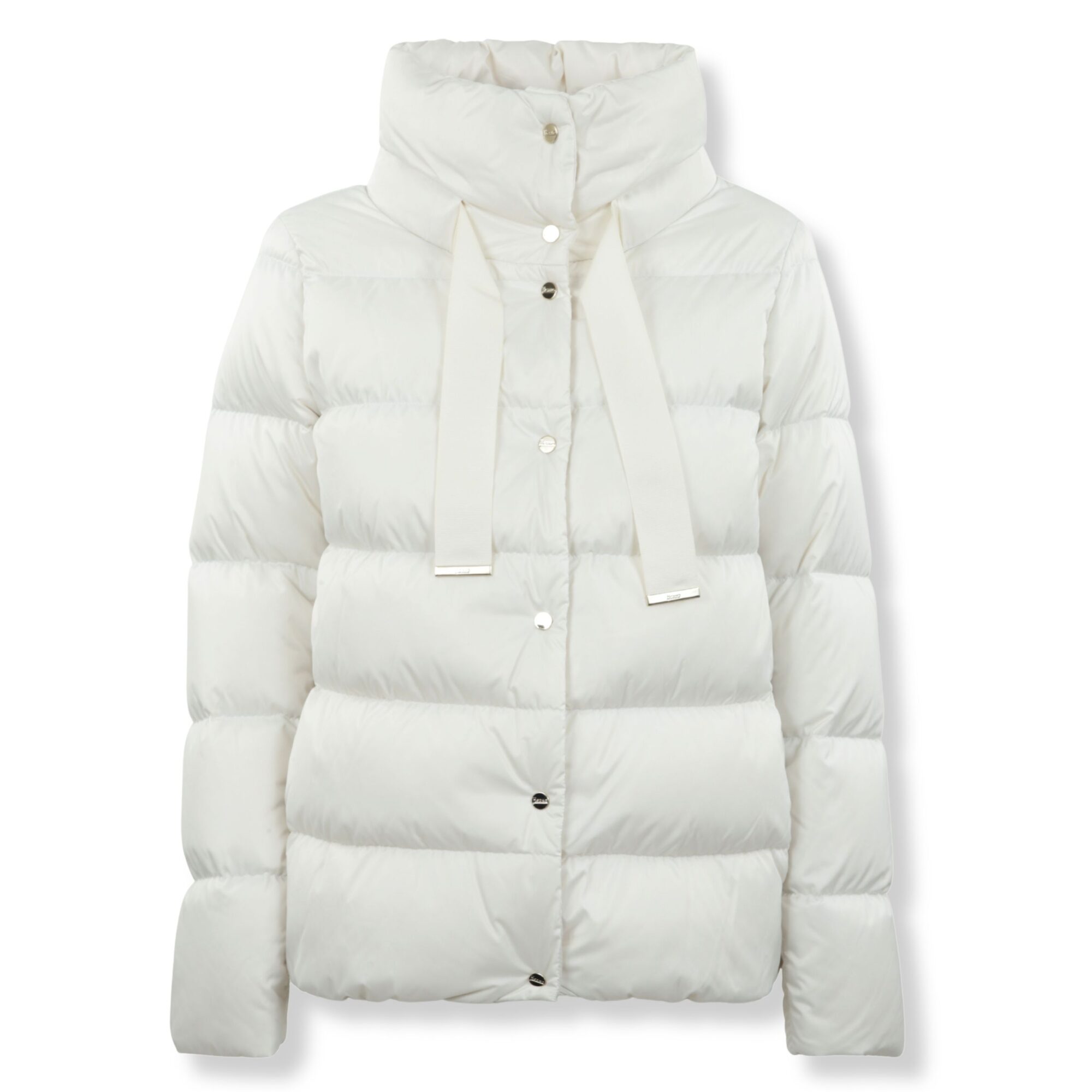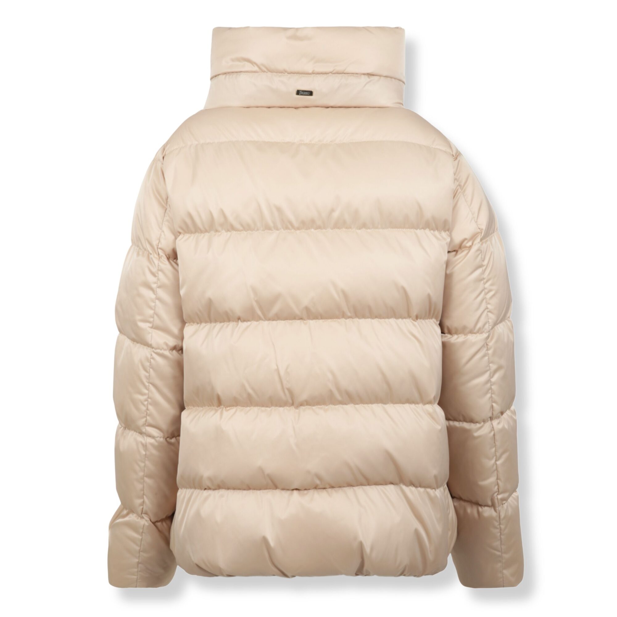 Cappa in raso Herno. Design effetto lucido e morbido. Coulisse larga in gros grain sul collo. Chiusura con bottoni in metallo e due tasche a filetto.