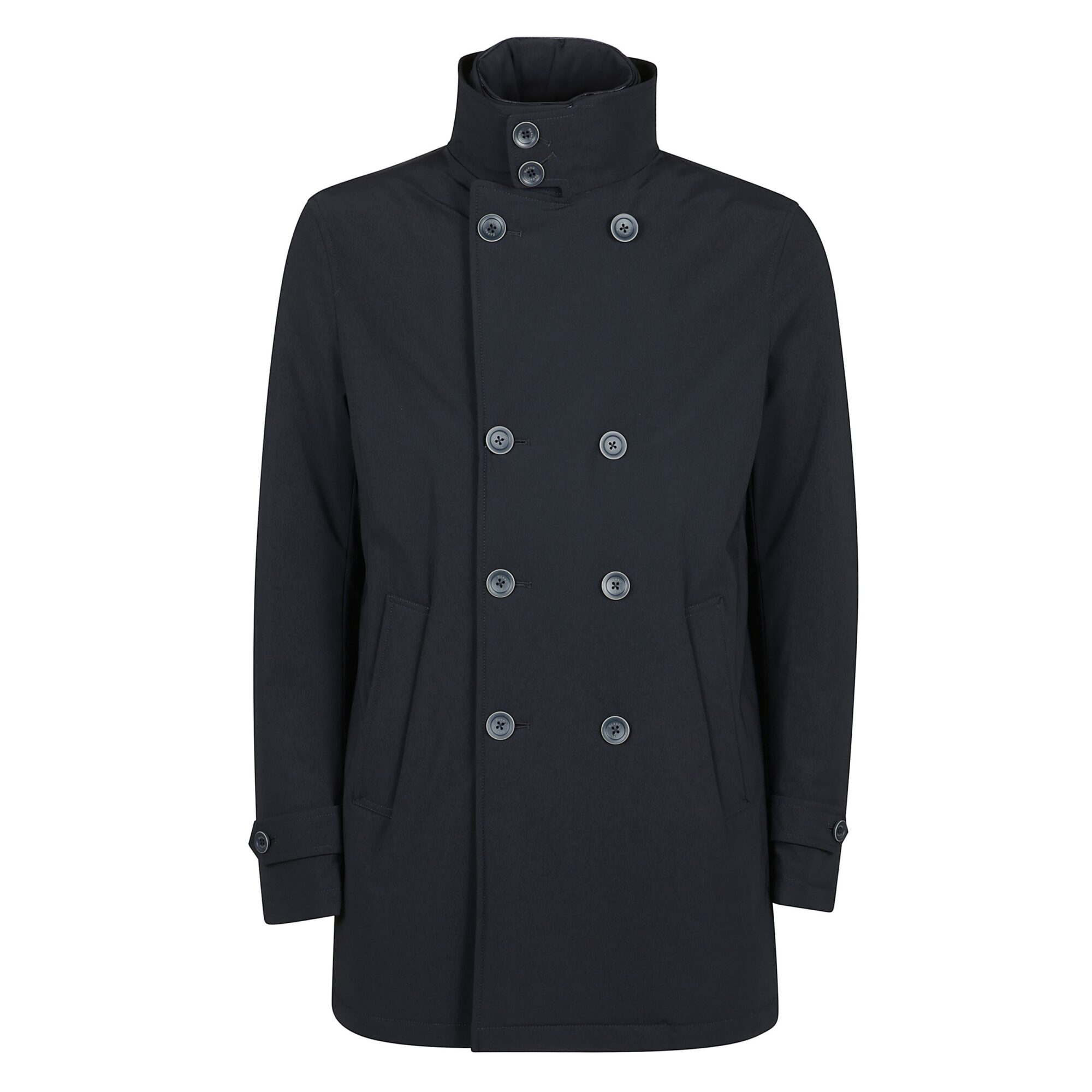 Peacot Washington Herno. Design in nylon idrorepellente, chiusura doppiopetto con bottoni e collo alto. Due tasche a filetto sul davanti.
