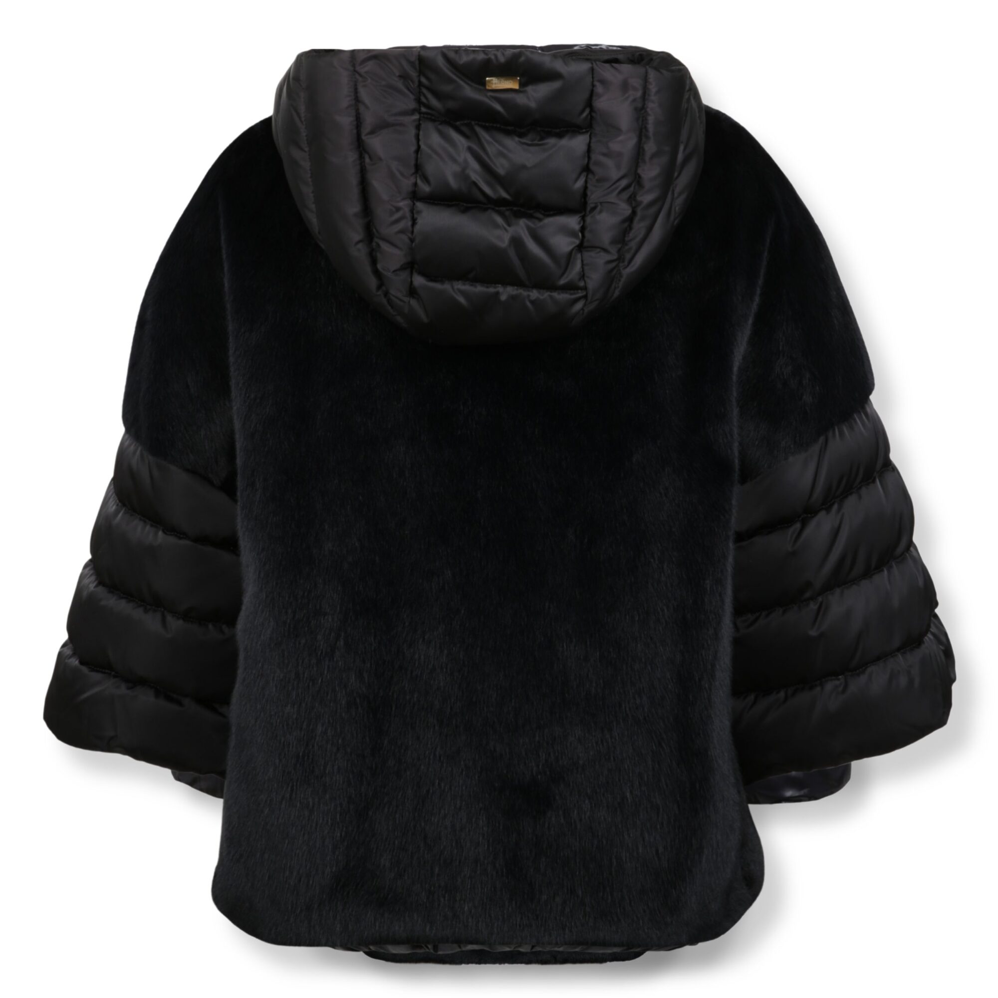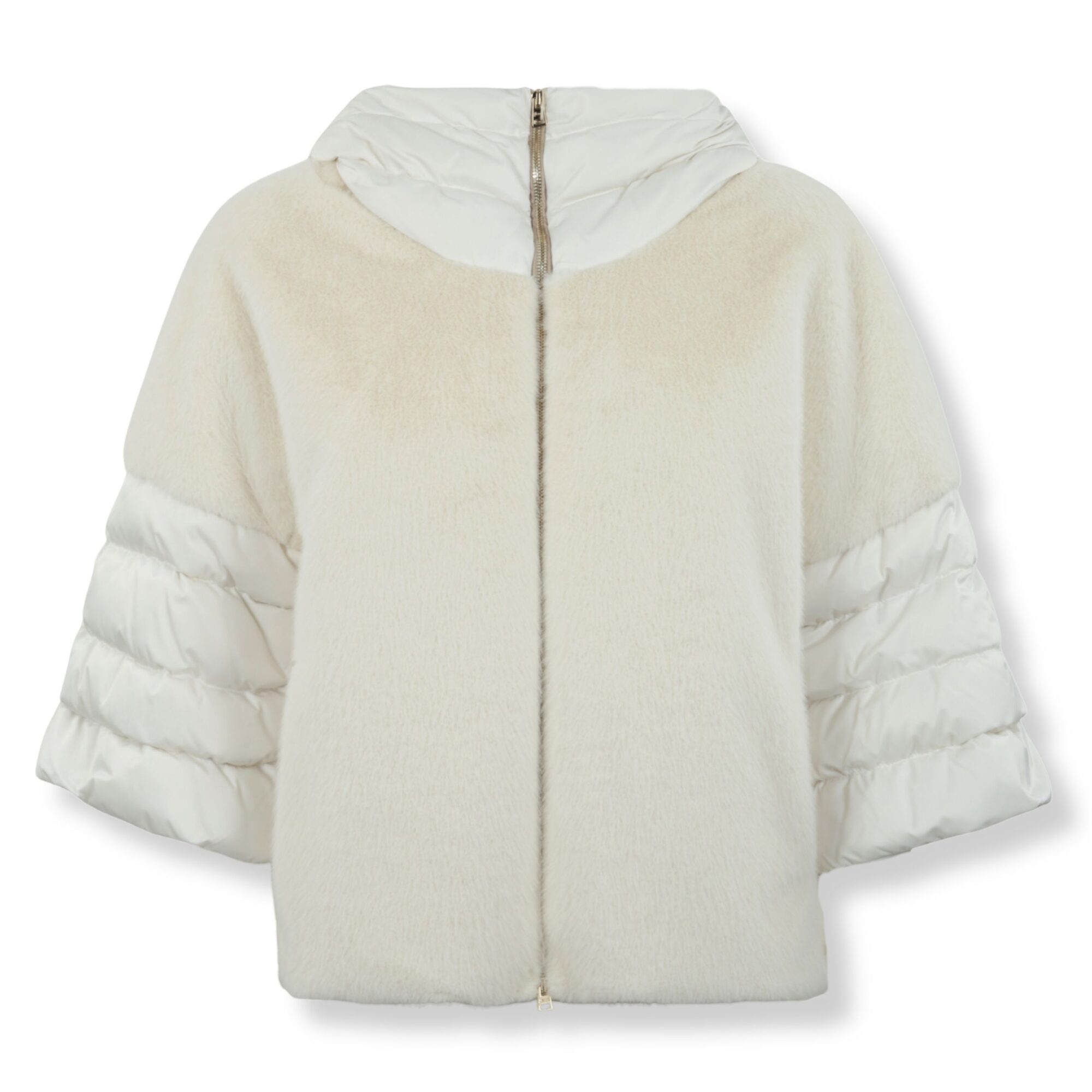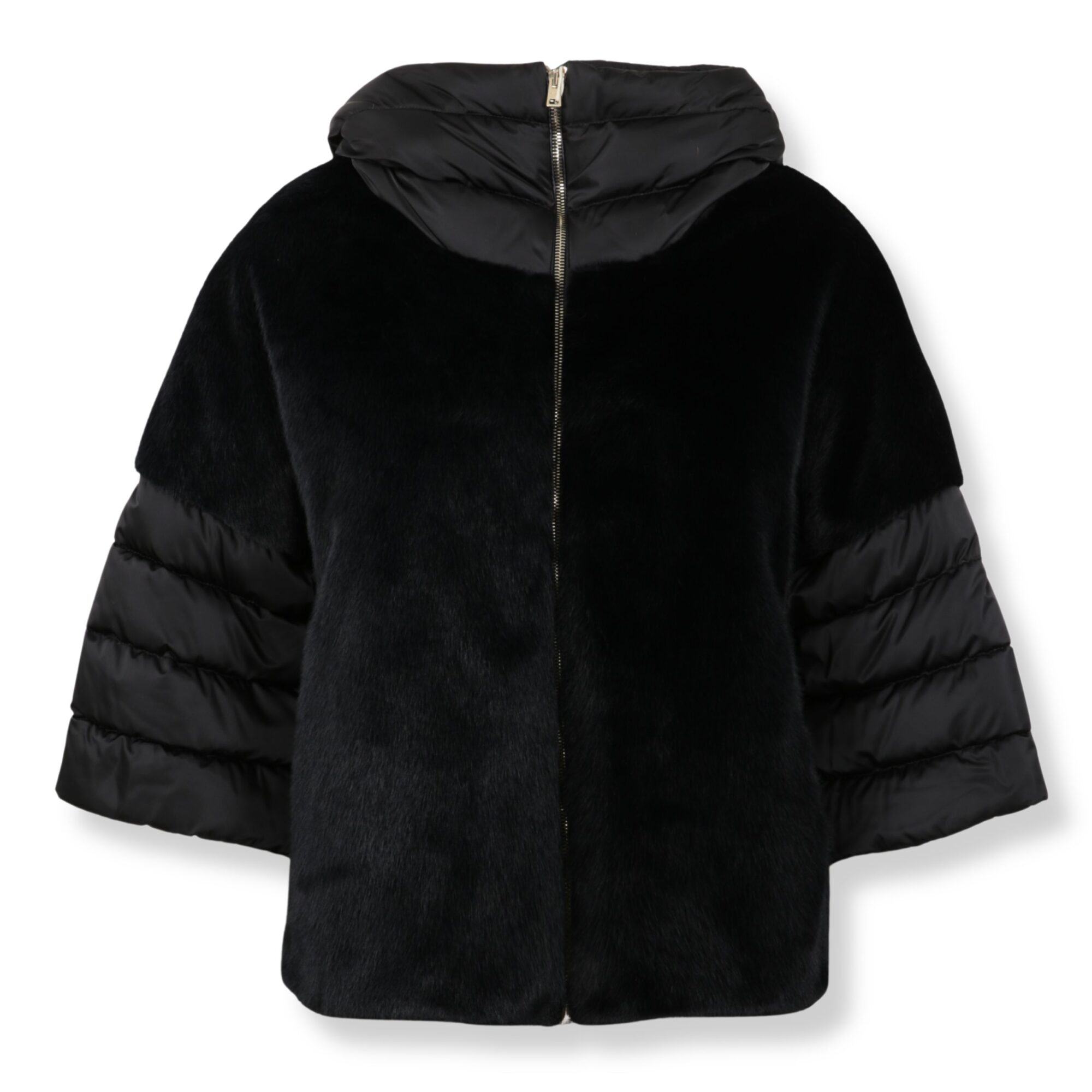 Cappa in Satin e Lady Alternative Fur Herno. Vestibilità regolare, con collo a cratere e maniche a tre quarti con trapuntatura a righe. Cappuccio e chiusura frontale con zip.