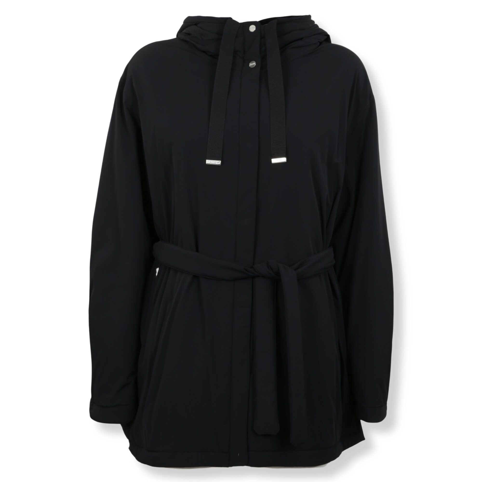 Cappotto in Travel Nylon Herno. Design con cappuccio fisso e chiusura frontale con cintura coordinata. Polsini abbottonati, collo alto con coulisse in gros grain.