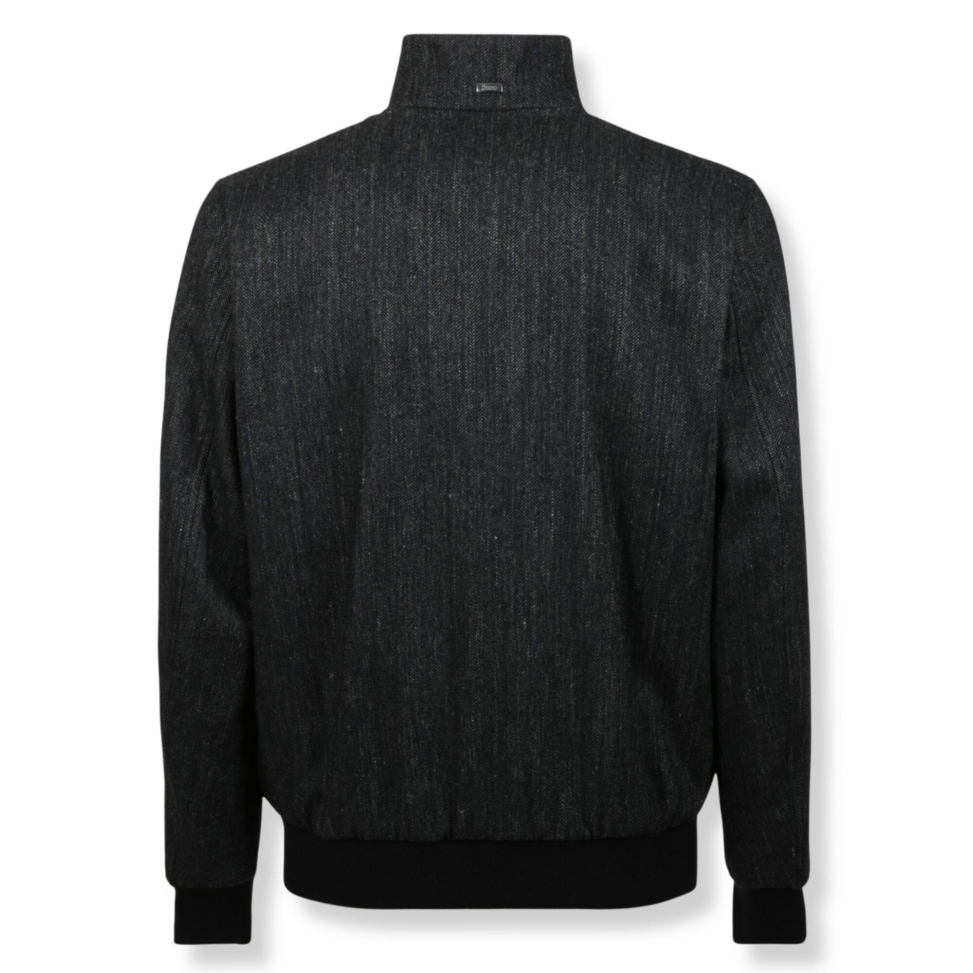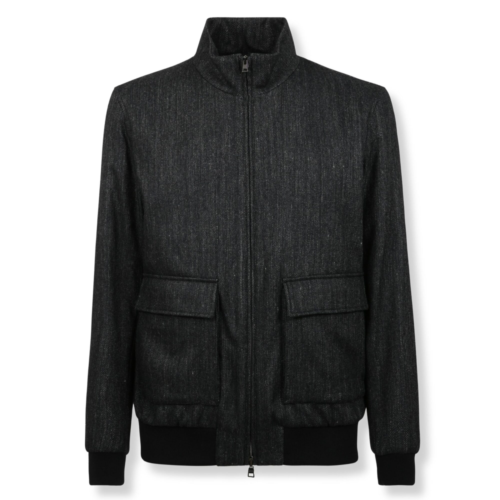Bomber Herno. Design in Herringbone Wool Flannel, vestibilità regolare, con collo alto e chiusura a zip frontale. Orlo inferiore e polsini elasticizzati e due tasche con patta applicate sul davanti.