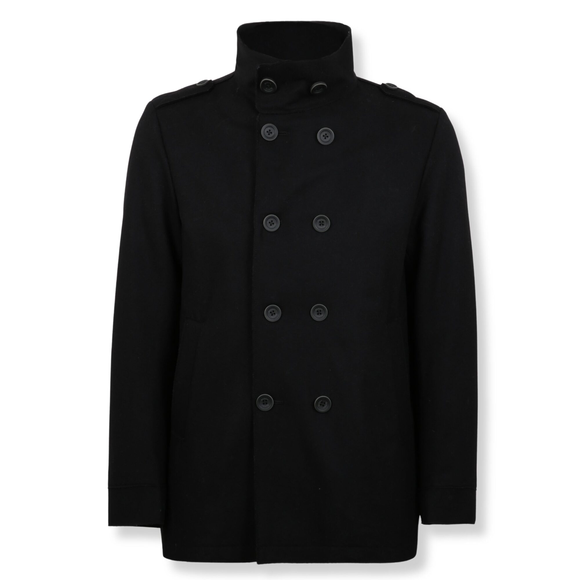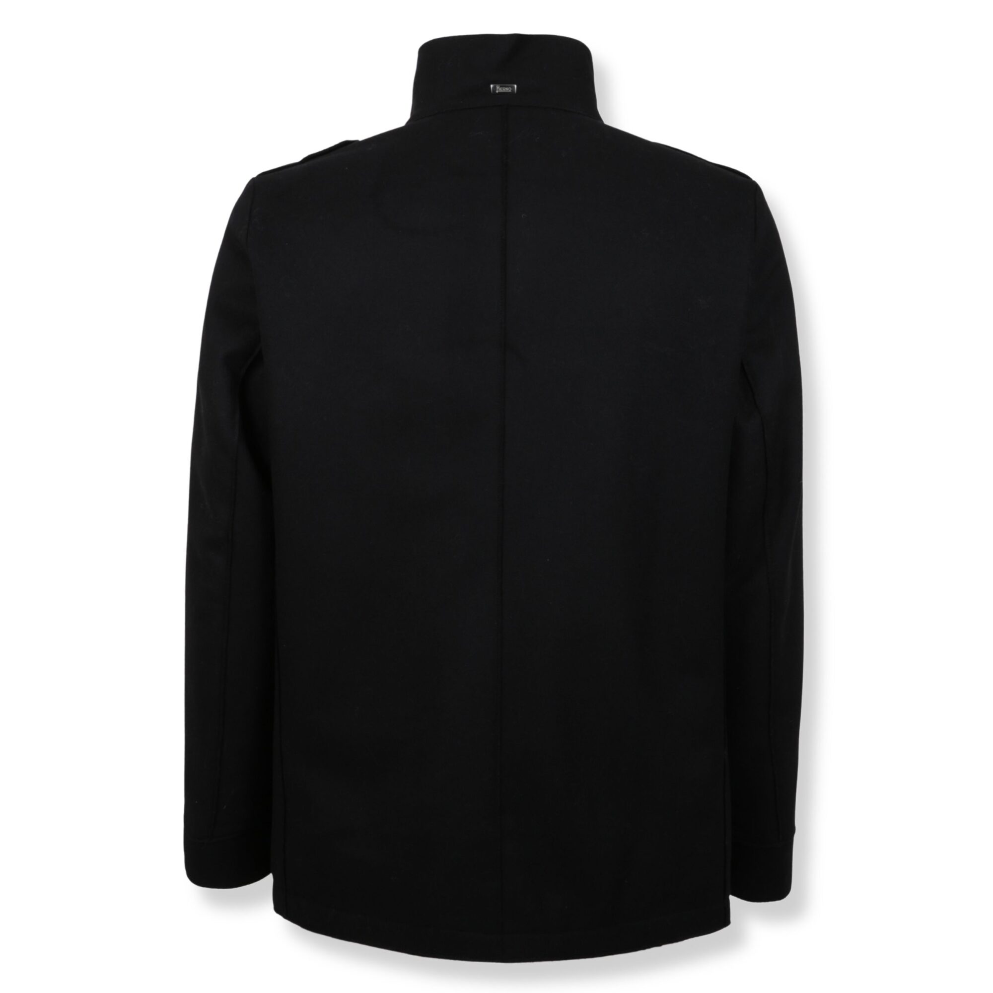 Cappotto Doppiopetto Herno. Collo alto, chiusura frontale con bottoni. Spalline decorate con cinturini e bottoni e tasche a filetto.