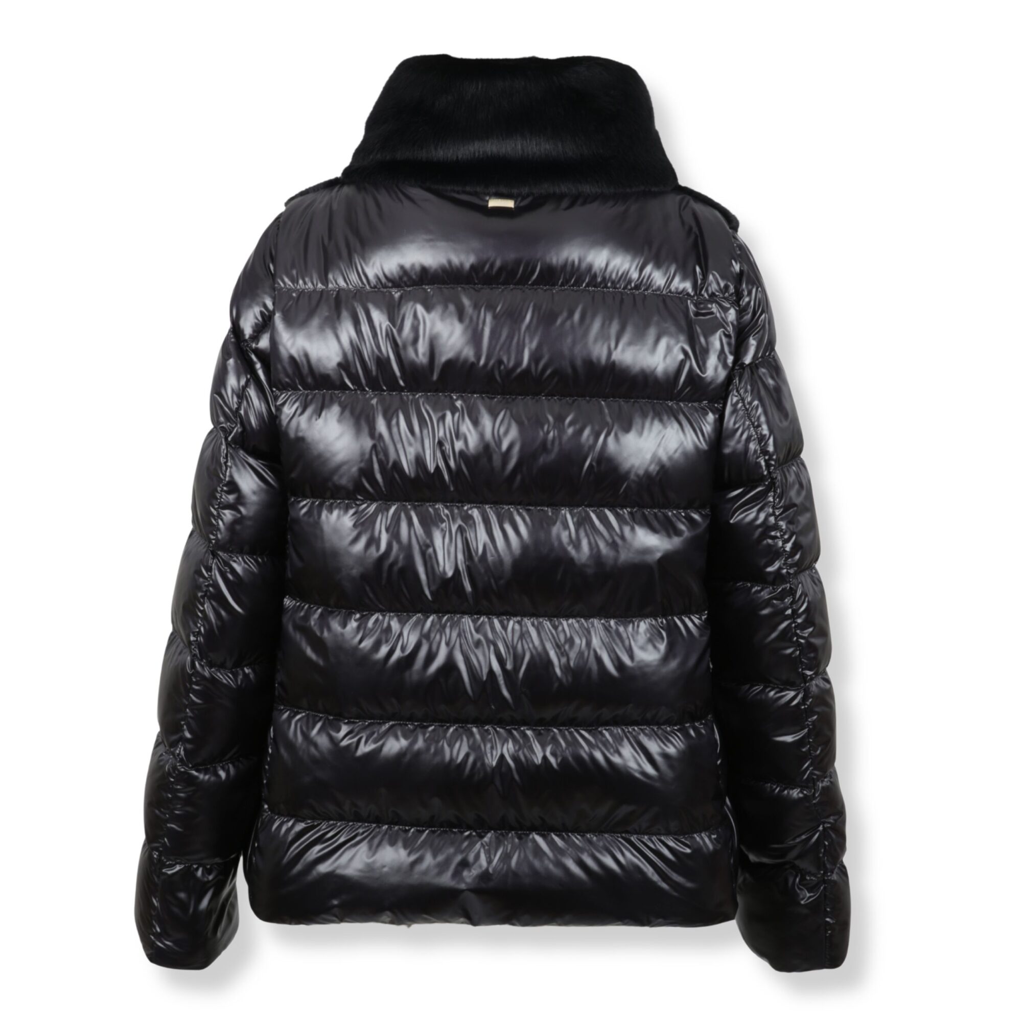 Cappa Herno. In Nylon Ultralight con collo alto e fronte in pelliccia sintetica effetto castorino. Chiusura con zip frontale e tasche laterali a filetto.