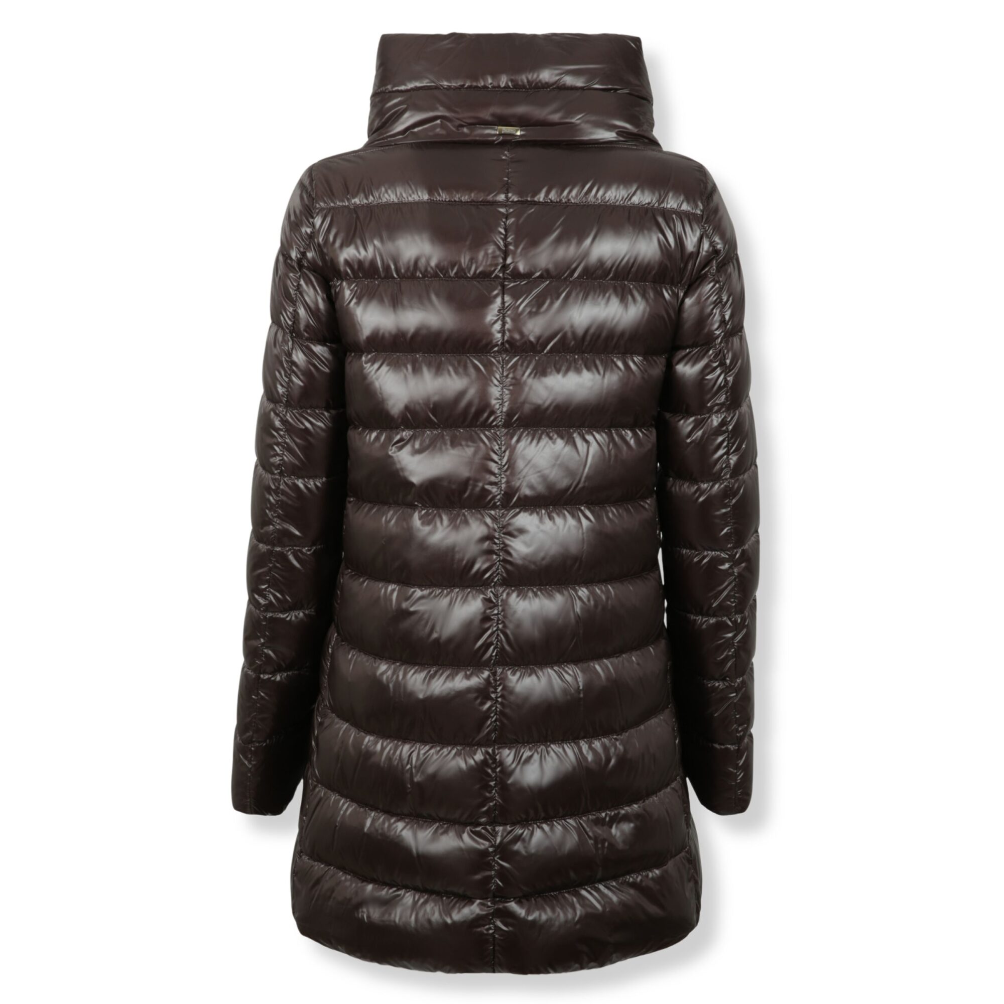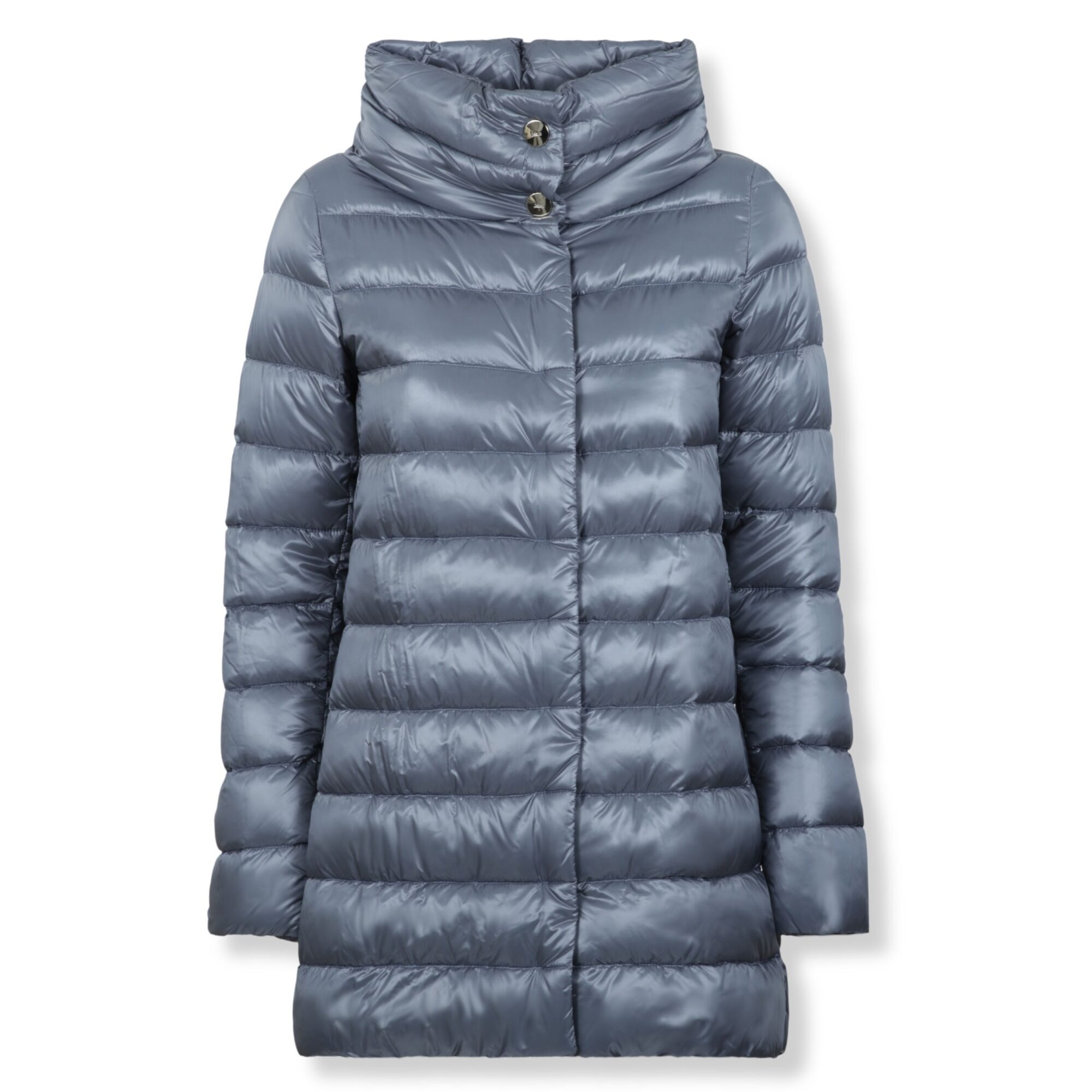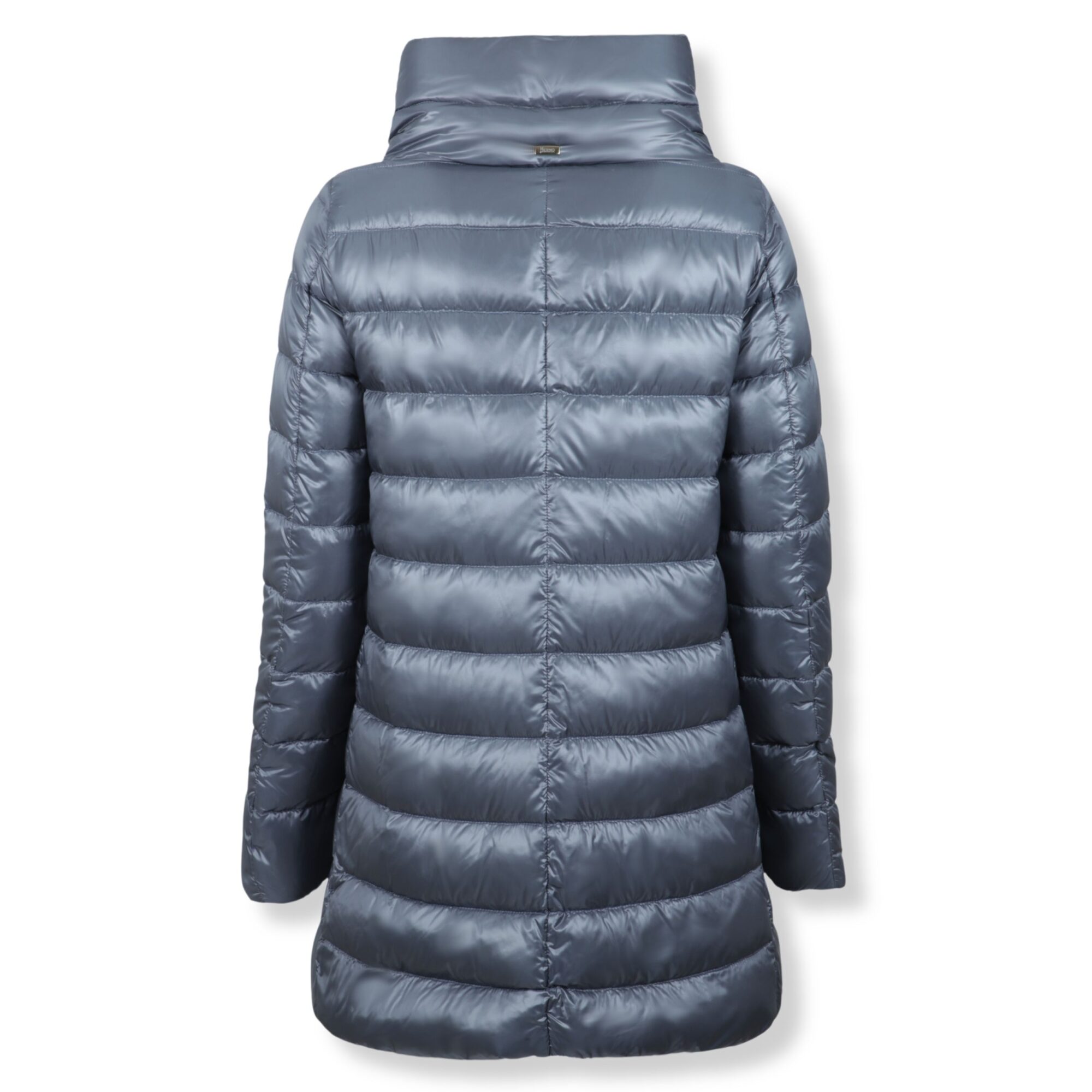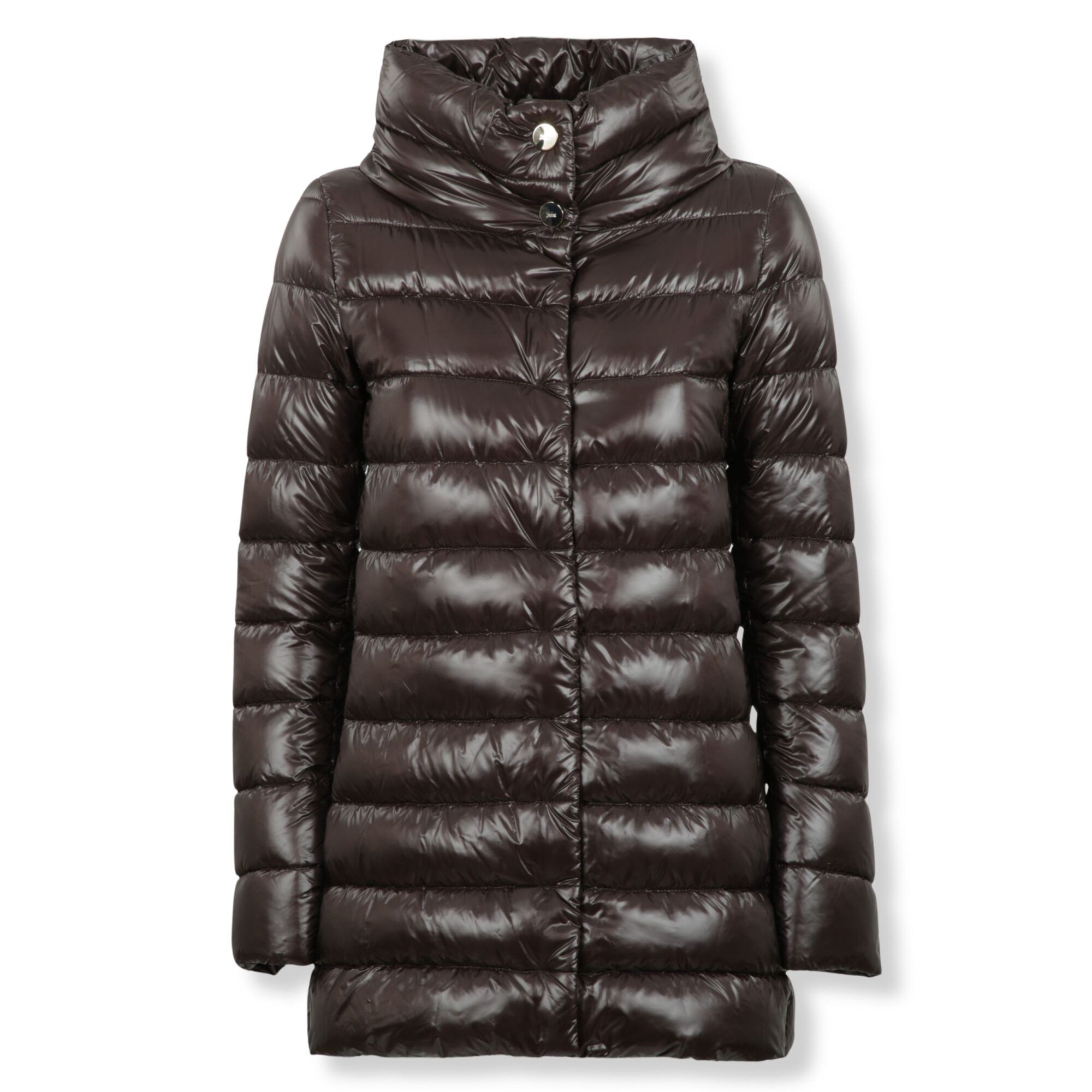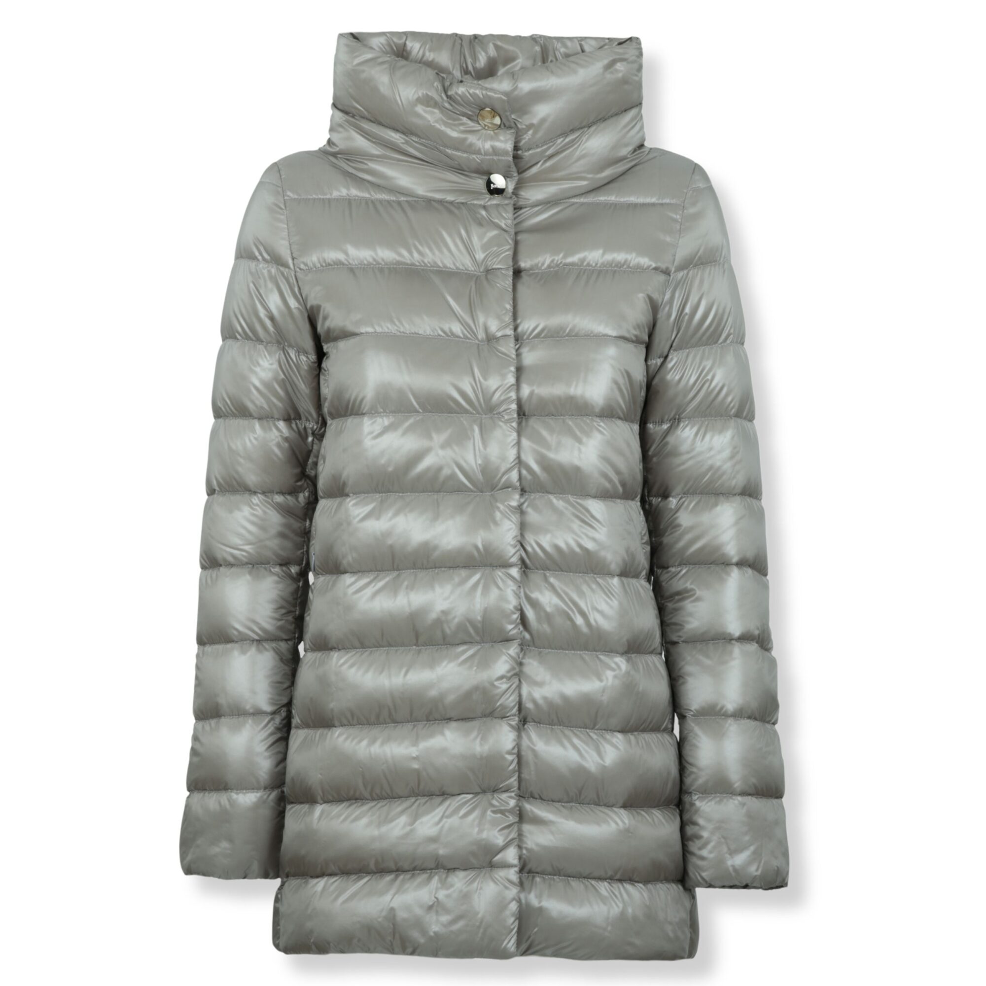 Piumino Amelia Herno. Modello in nylon, con collo alto. Chiusura frontale nascosta e due bottoni metallici al collo.