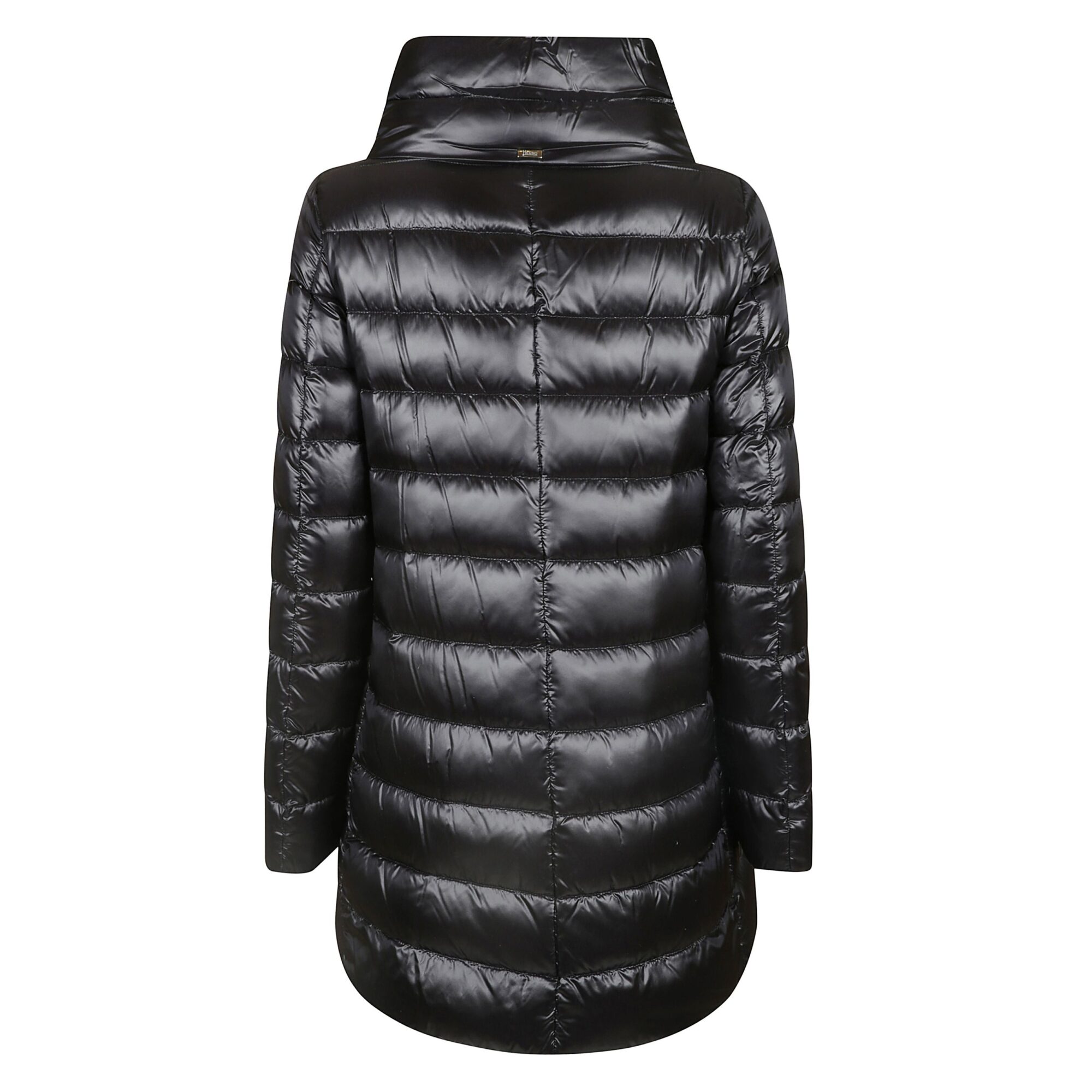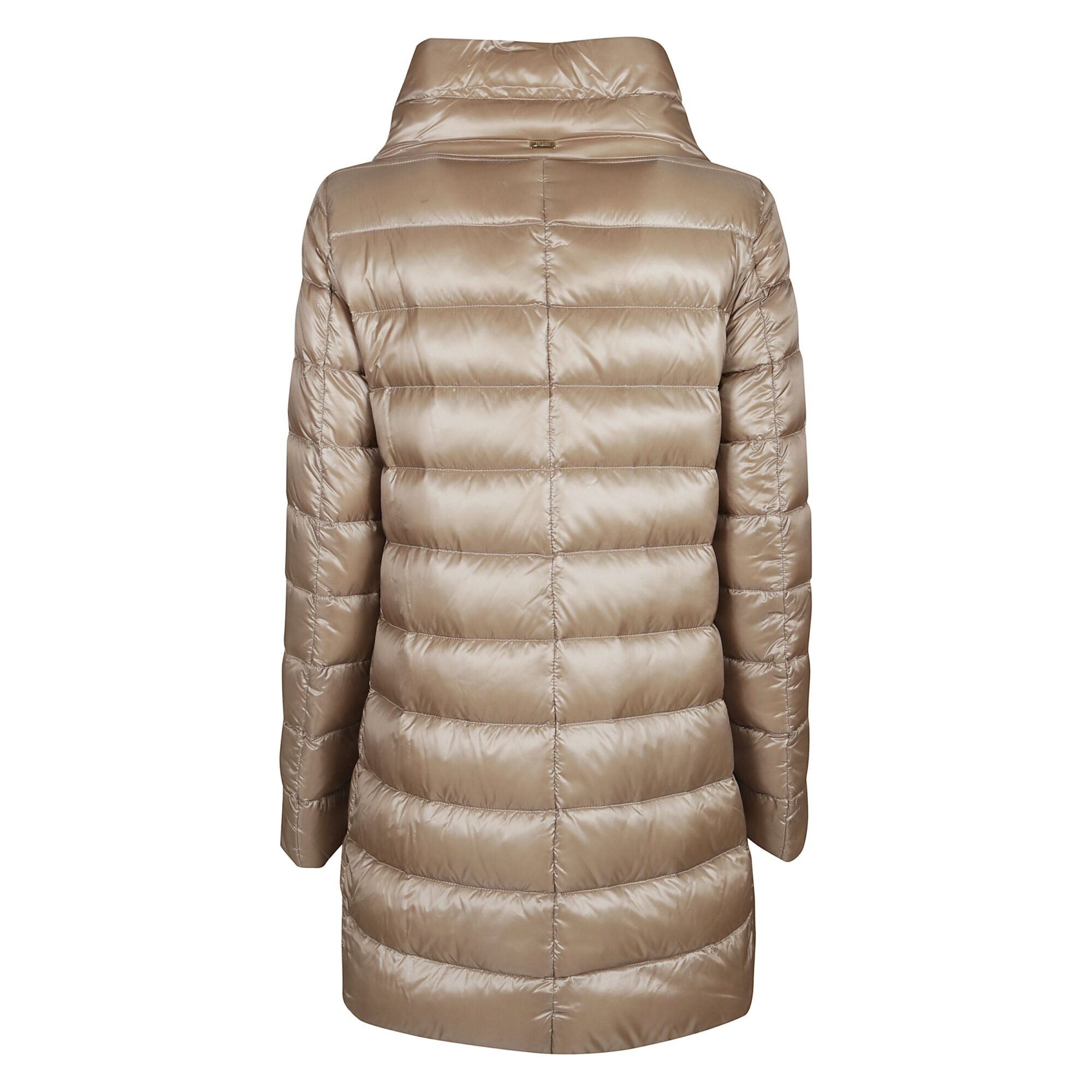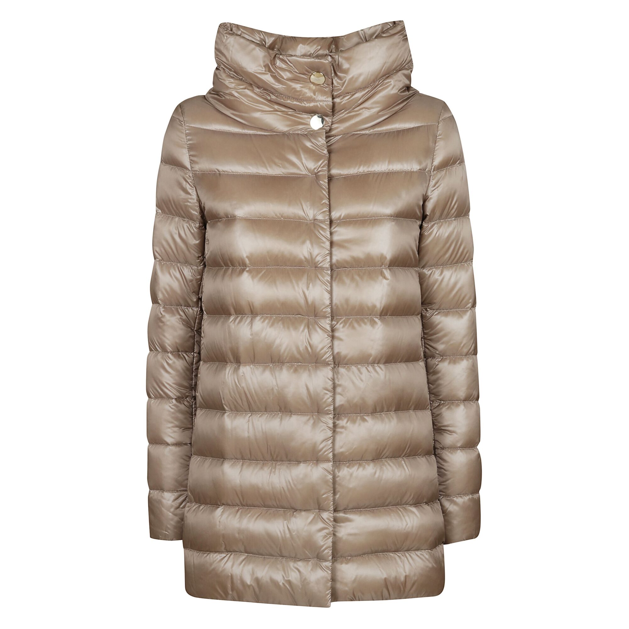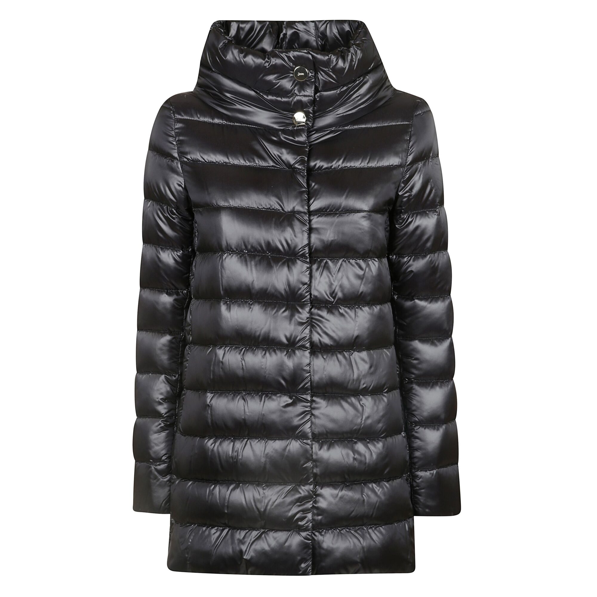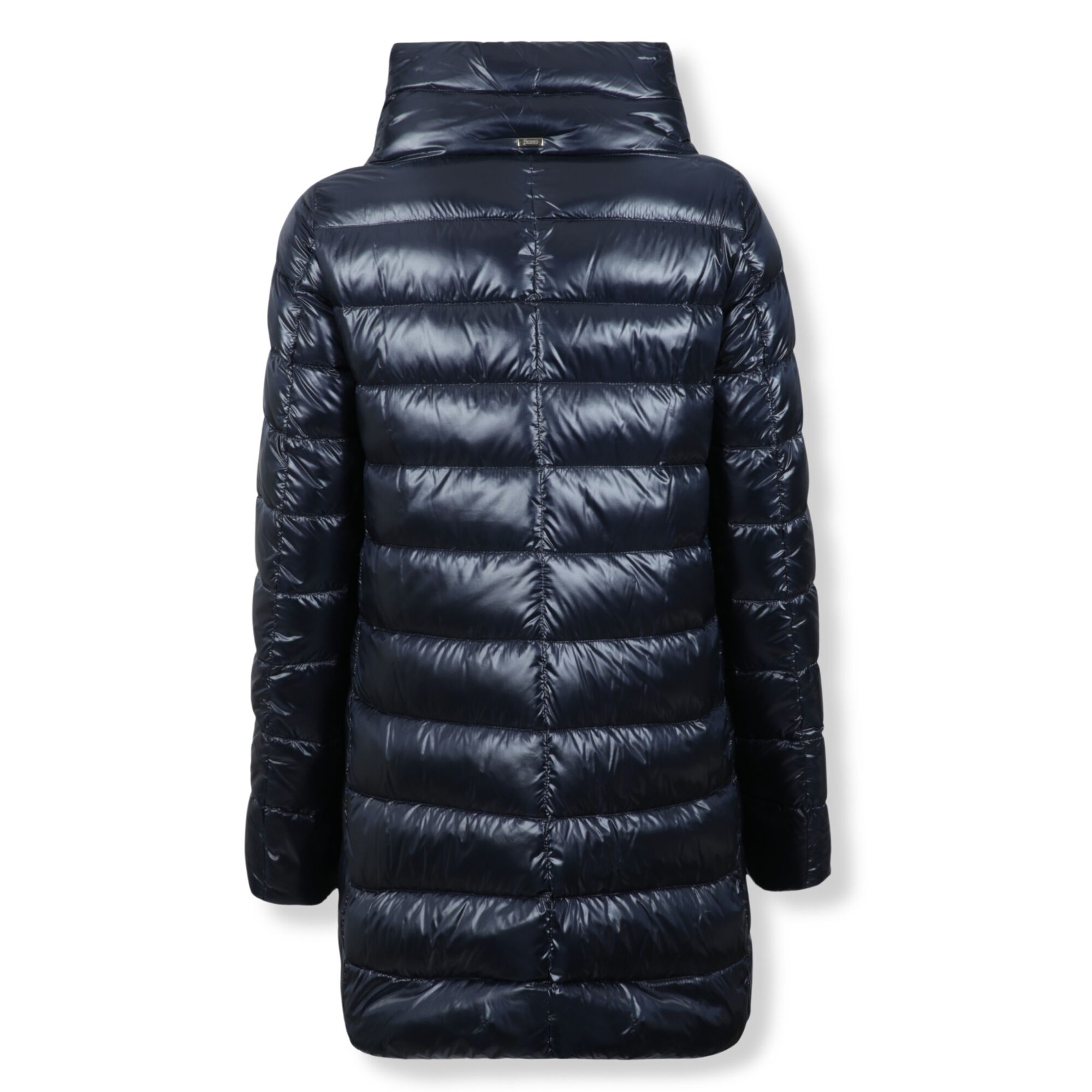 Piumino Amelia Herno. Modello in nylon, con collo alto. Chiusura frontale nascosta e due bottoni metallici al collo.