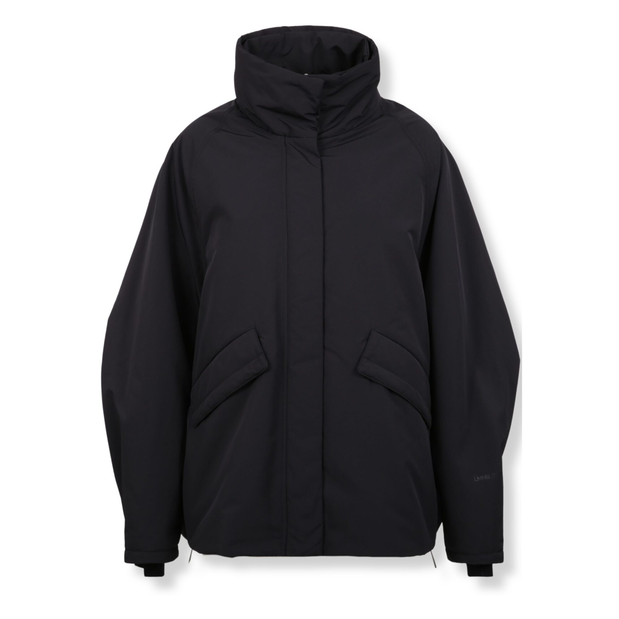 Giacca Laminar Herno. Vestibilità over, con collo alto, chiusura frontale nascosta. Polsini elasticizzati e tasche frontali con patta.