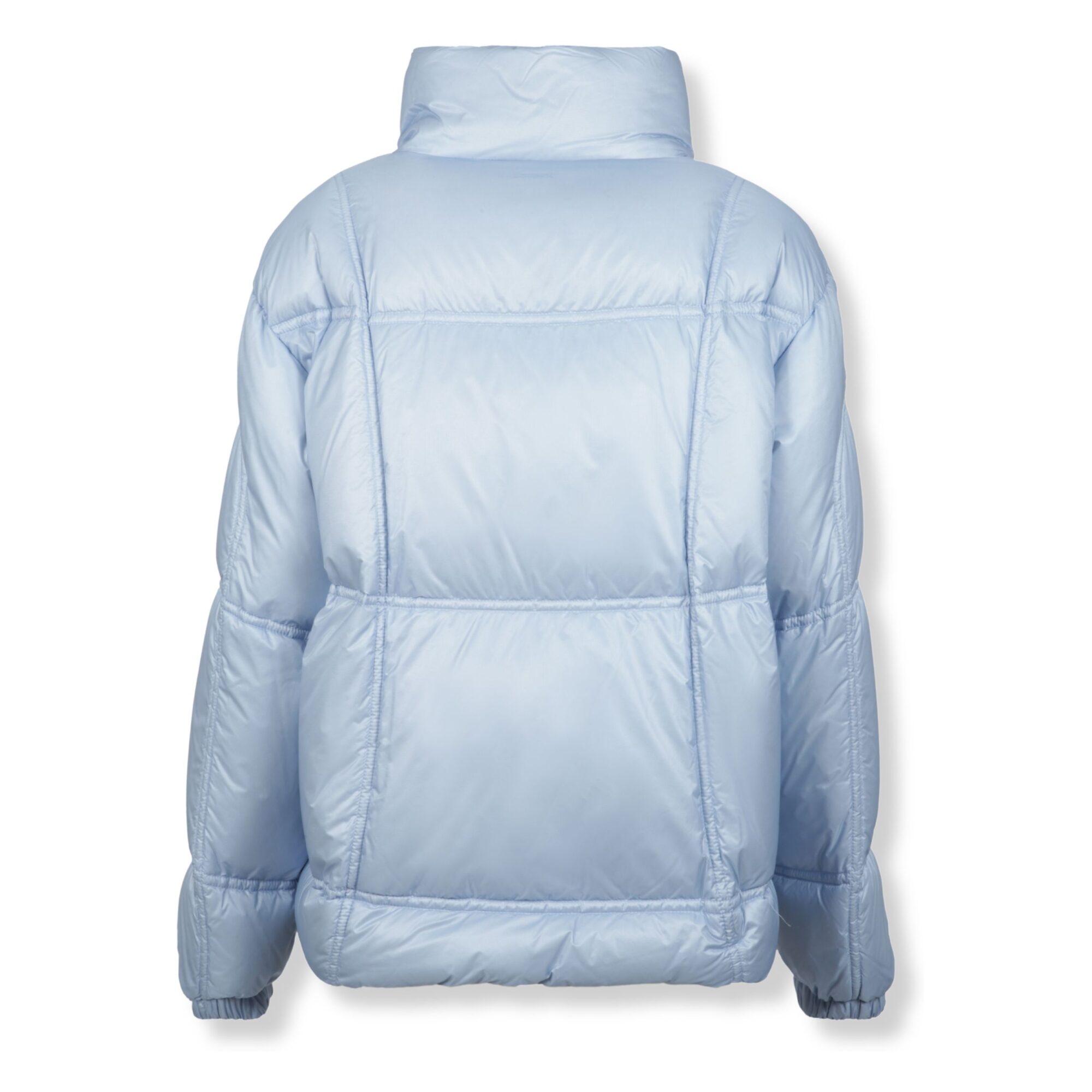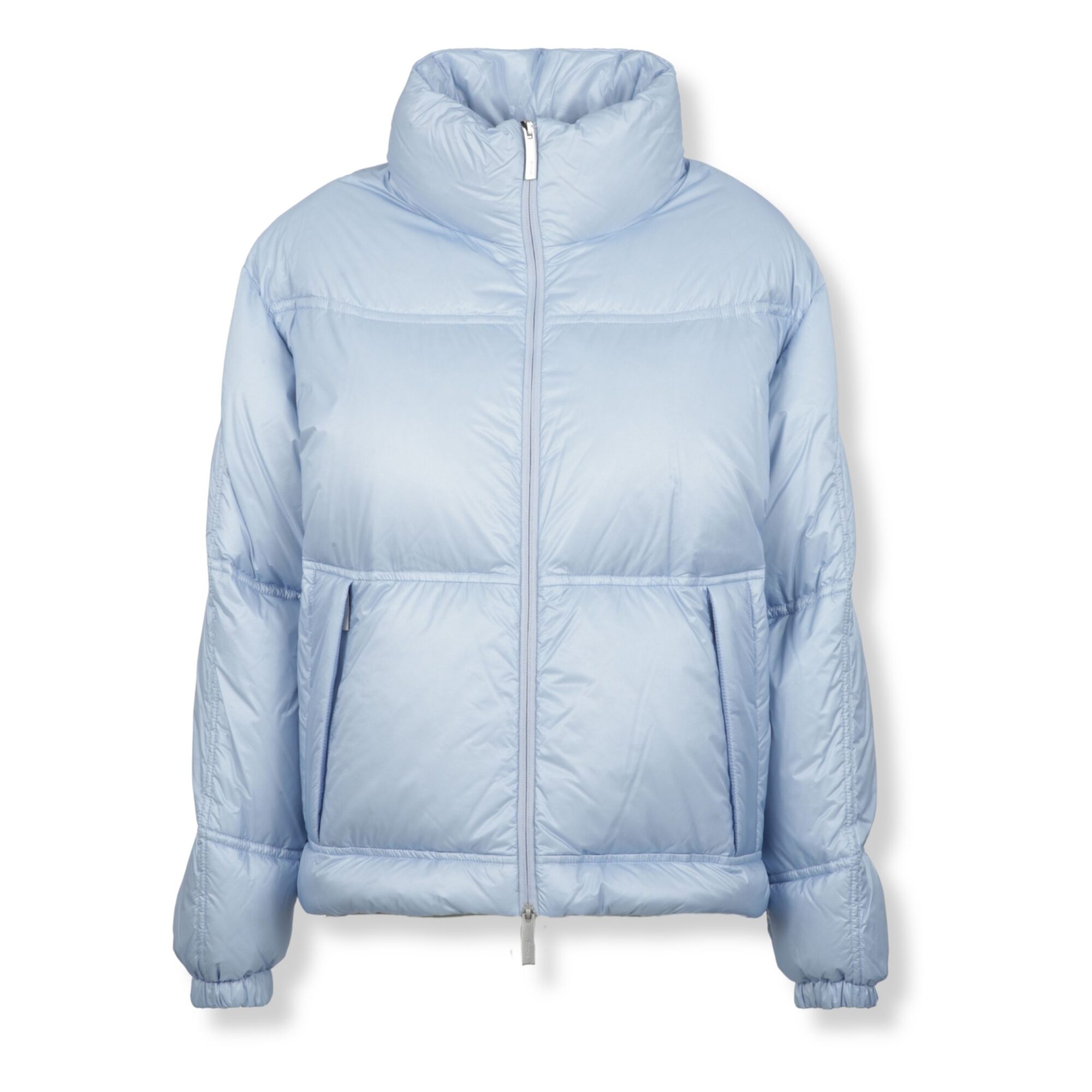 Piumino lungo Herno Laminar. Design con trapuntature orizzontali, cappuccio fisso. Polsini elasticizzati e chiusura frontale con zip.