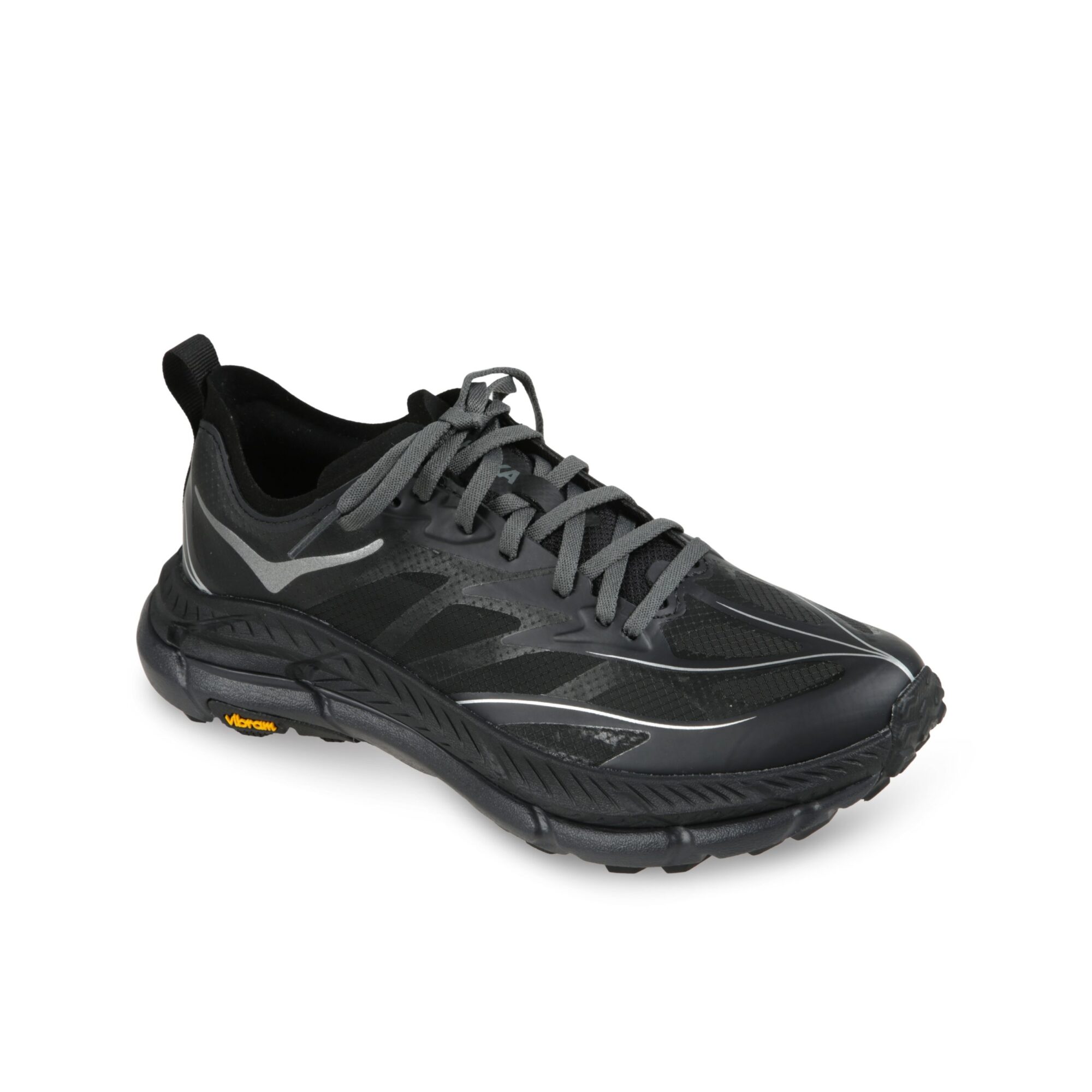 Mafate Speed 4 Lite Hoka. Design con tomaia in nylon ripstop ed inserti in mesh traspirante, chiusura con lacci frontale e suola Vibram Megagrip.