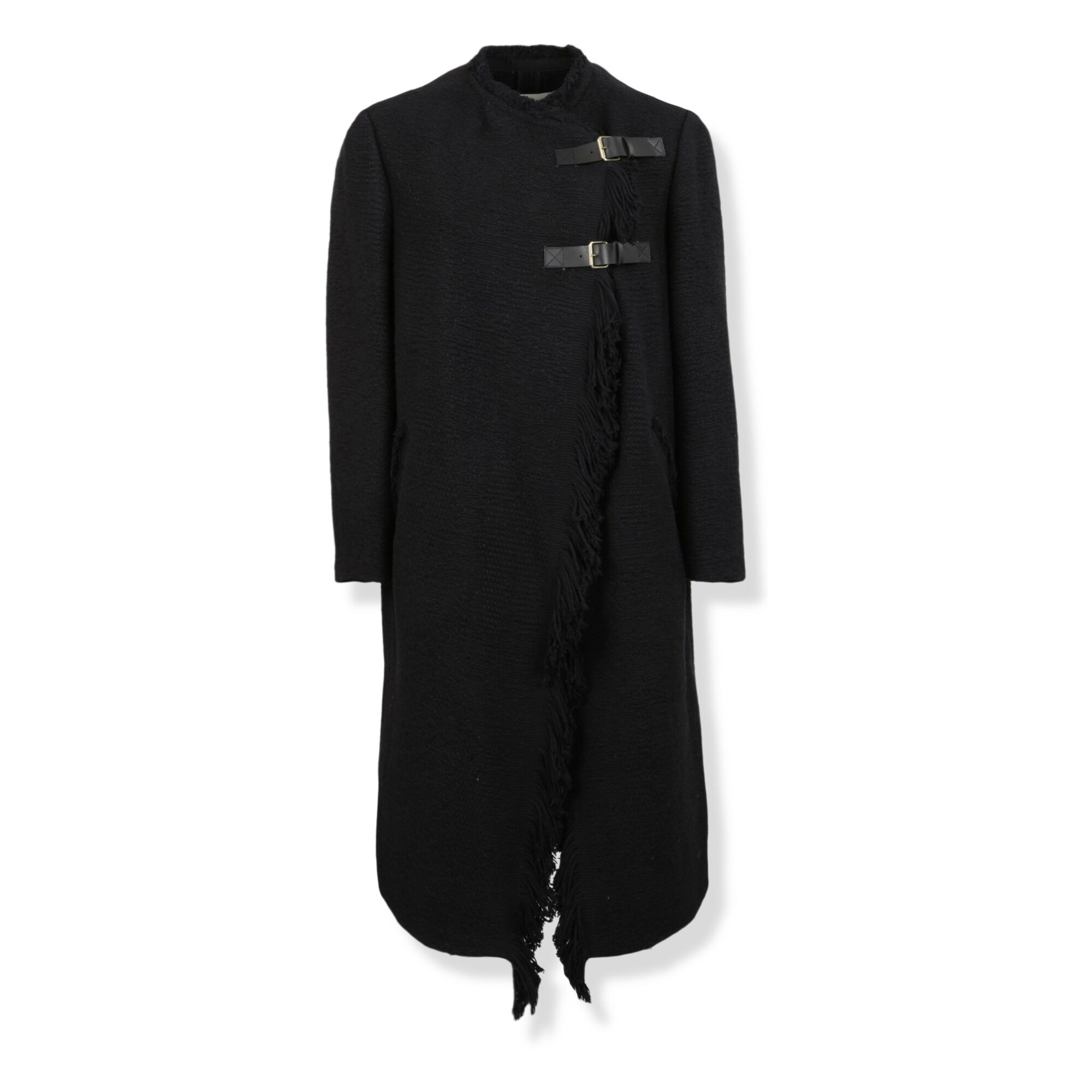 Cappotto Gameia Isabel Marant. In cotone e lino, senza colletto. Chiusura frontale asimmetrica con cinturini in pelle e fibbie e orli rifiniti con frange.