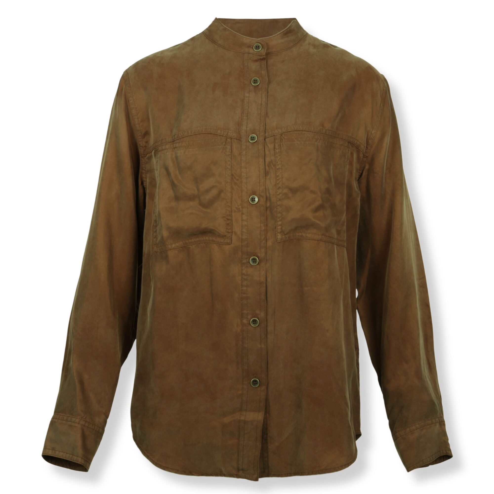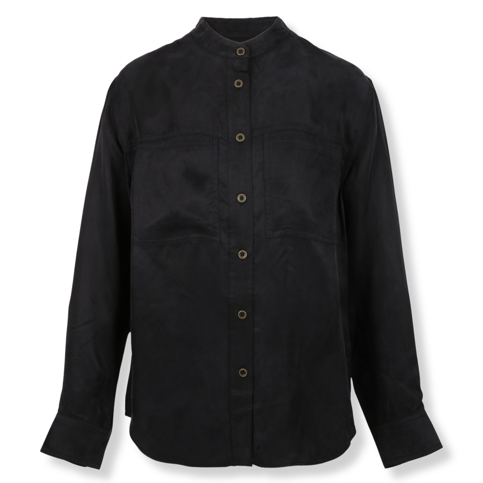 Camicia Zetta Isabel Marant. Vestibilità fluida in raso délavé, scollo tondo e abbottonatura frontale, due grandi tasche applicate sul petto.