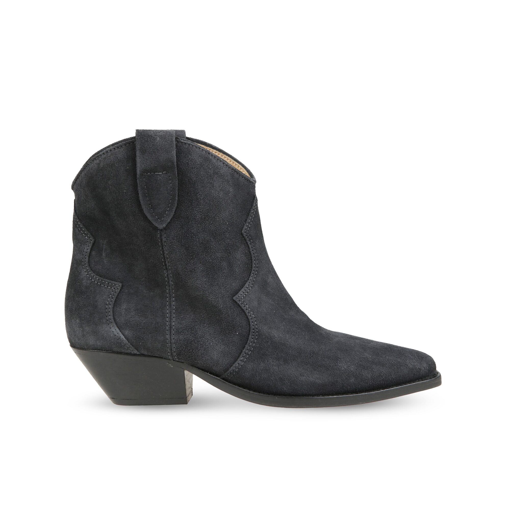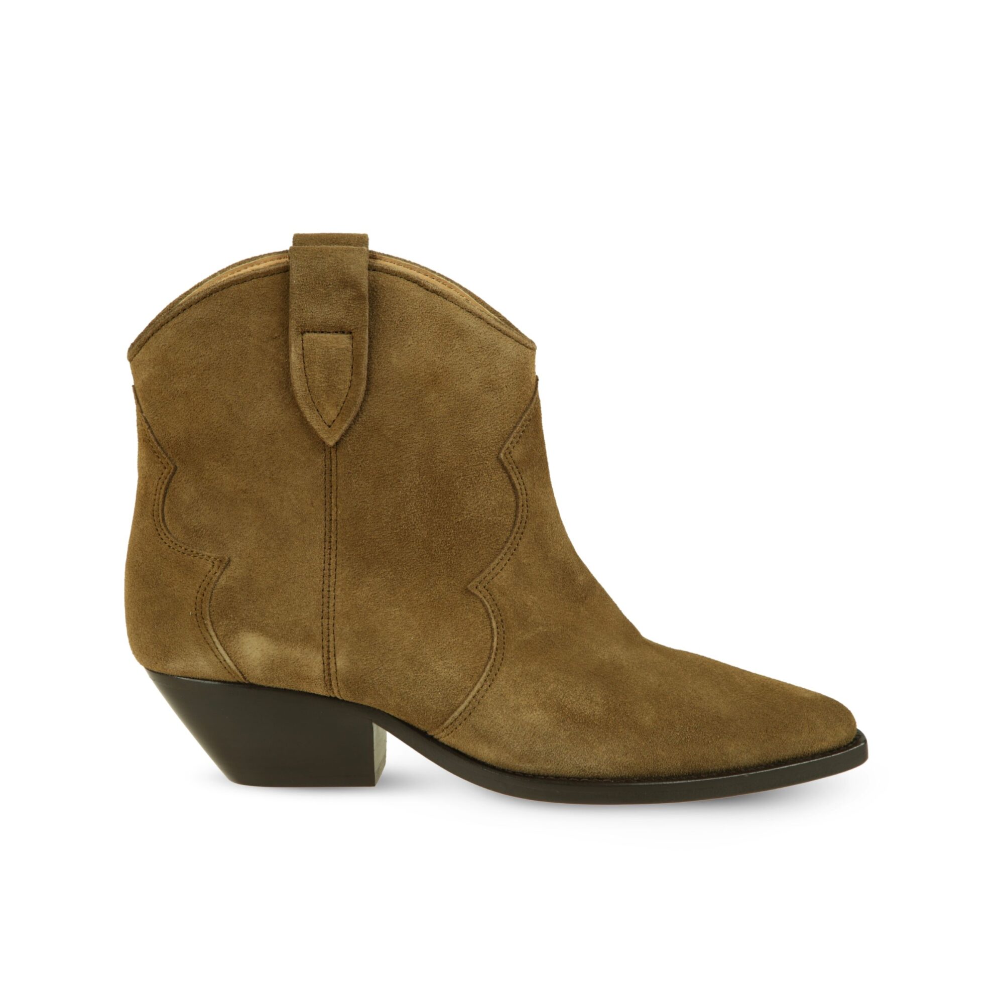 Stivali Dewina Isabel Marant. Punta affusolata, tiranti laterali e iconico tacco cubano, rifiniti con cuciture a vista.
