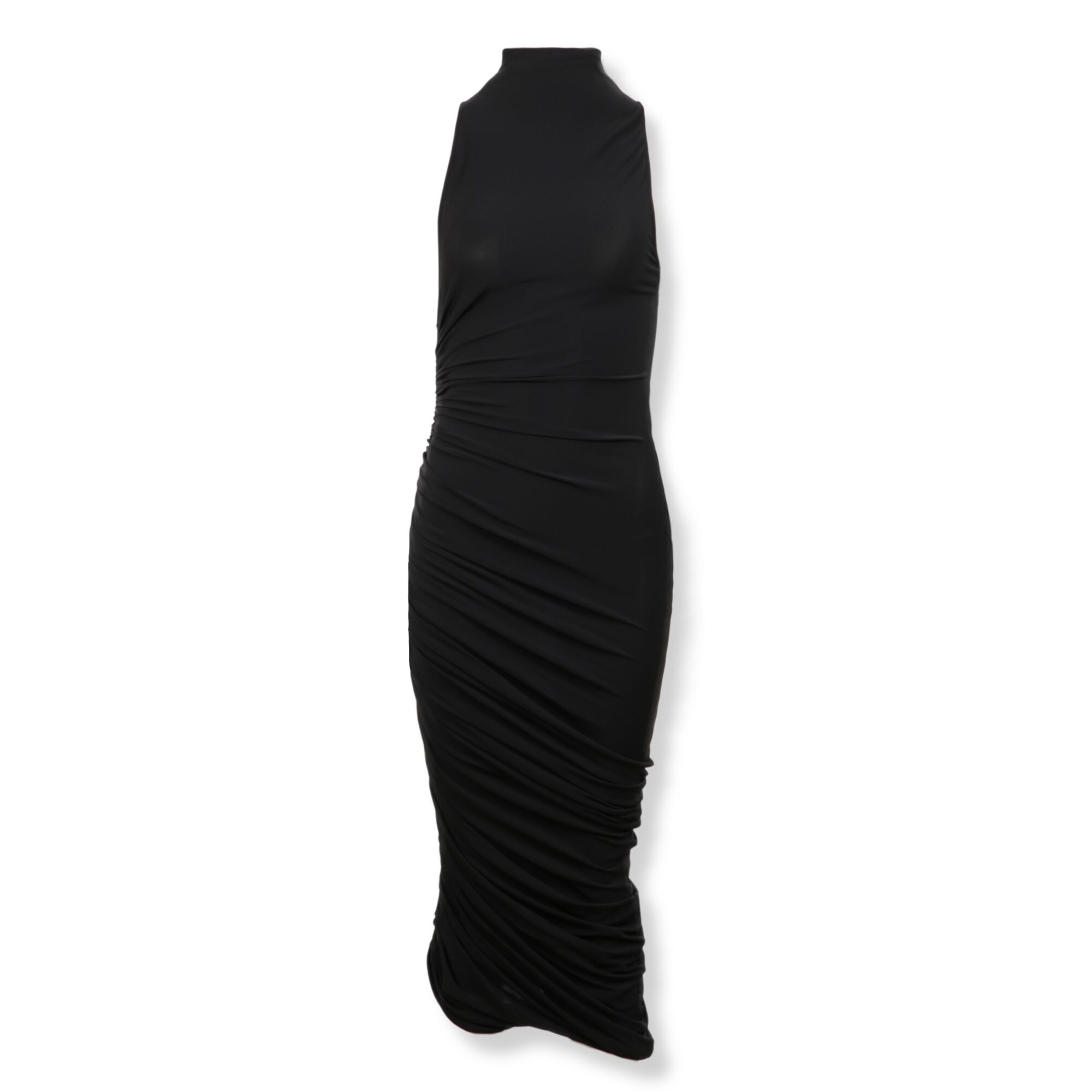 LA ROBE PIAZZA Abito Jacquemus. Collo alto, smanicato, orlo asimmetrico. Corpo con effetto drappeggiato e scollo a goccia sul retro. Vestibilità aderente.