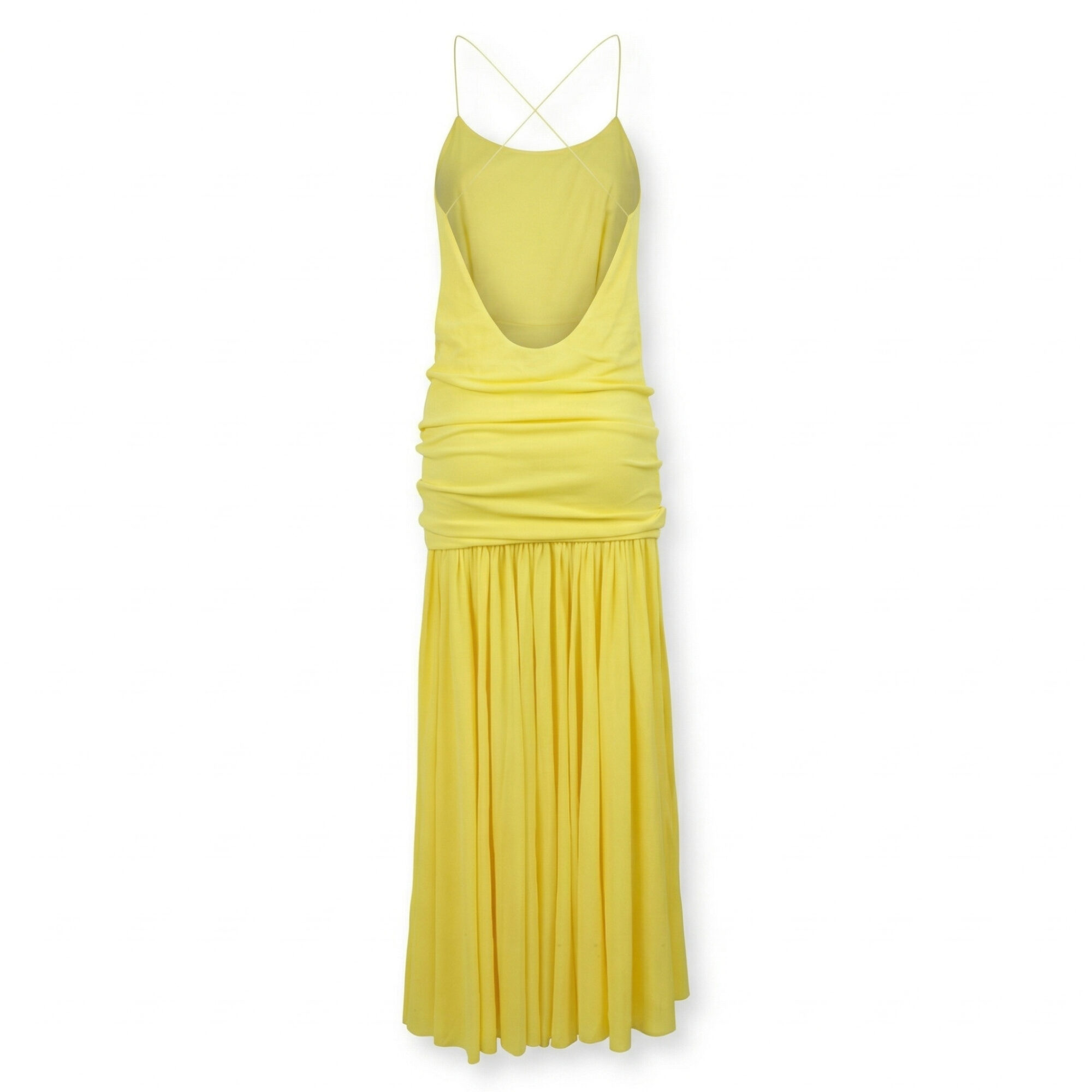 Abito Abiha Jacquemus. Silhouette fluida, linea dritta. Top con scollo dritto e spalline sottili, gonna con drappeggi verticali.