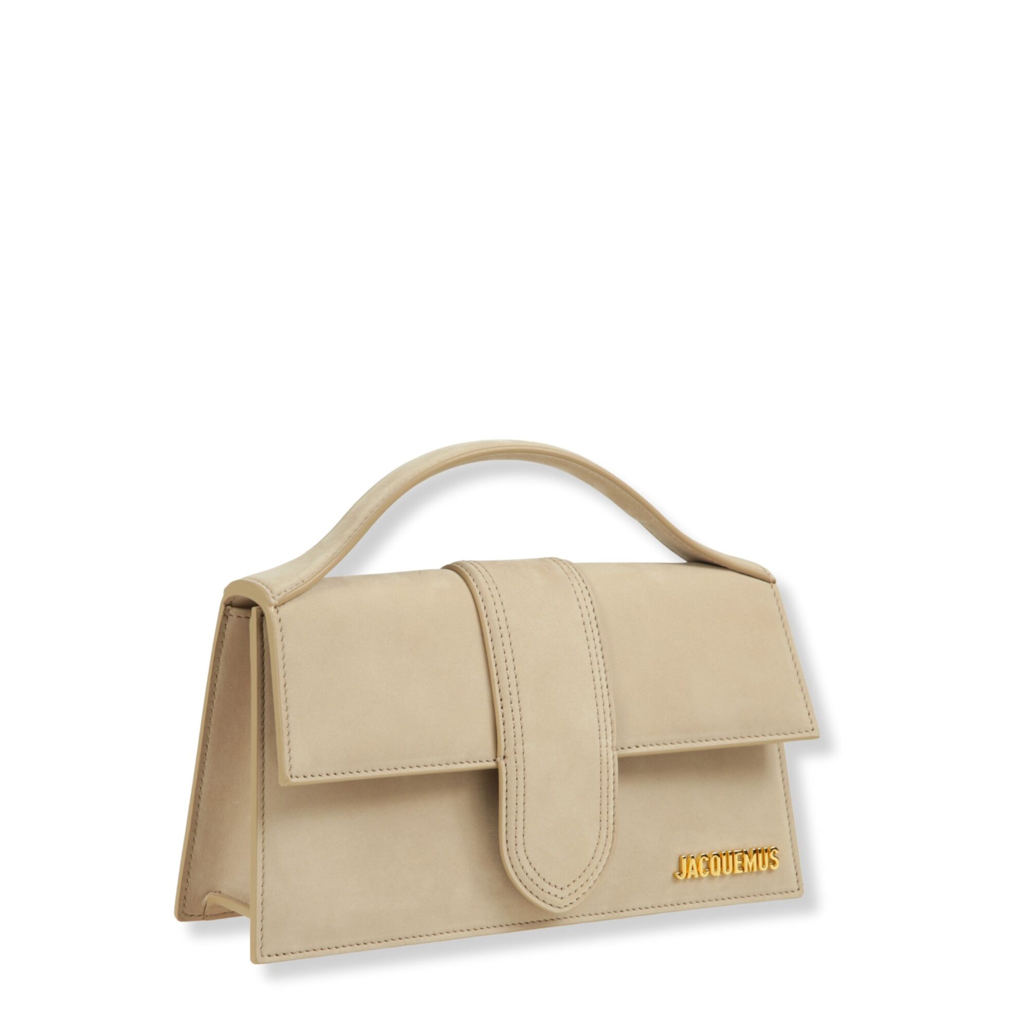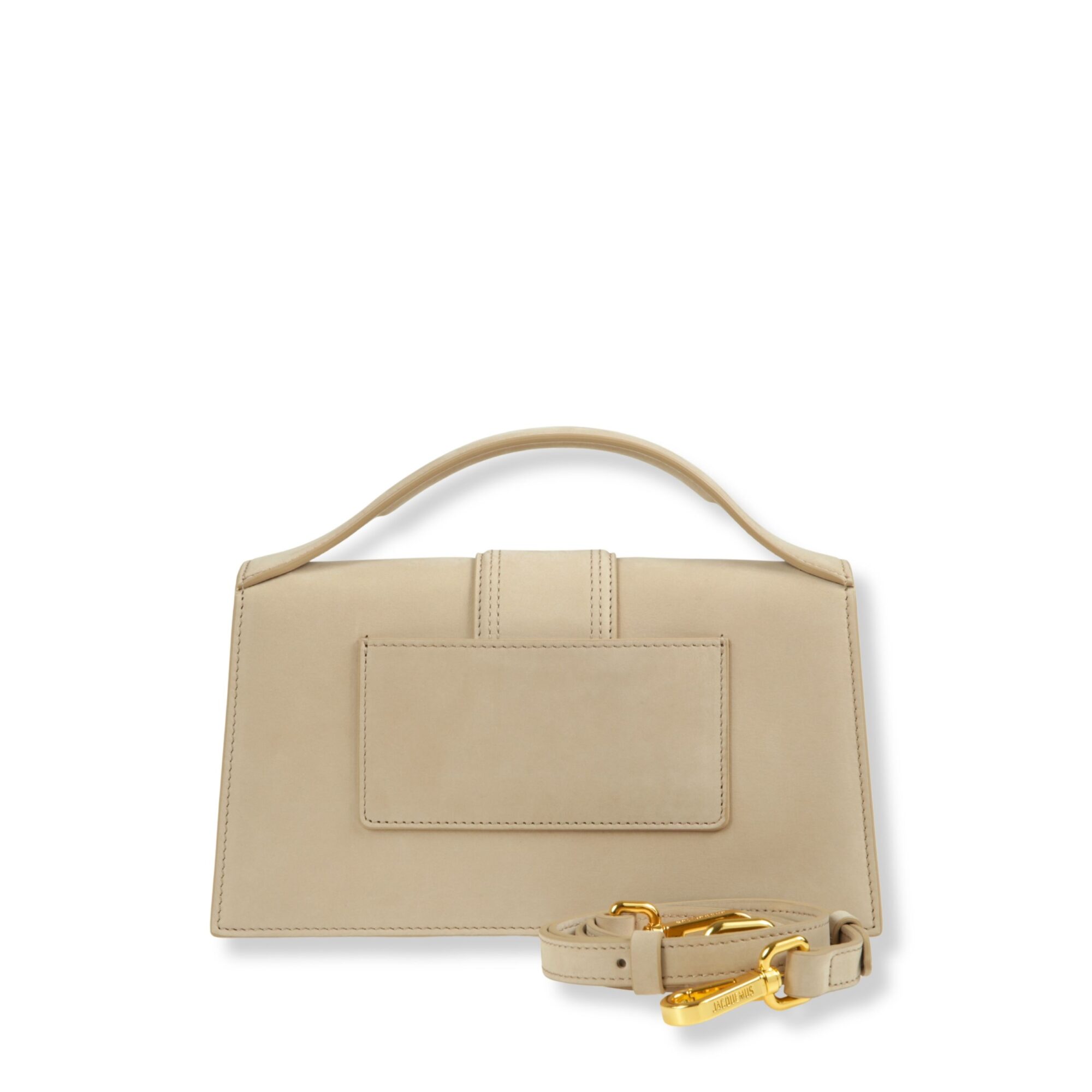 Le Bambino Long Jacquemus in nubuck impermeabile. Chiusura magnetica con patta e linguetta, tracolla sottile e tasca applicata sul retro.