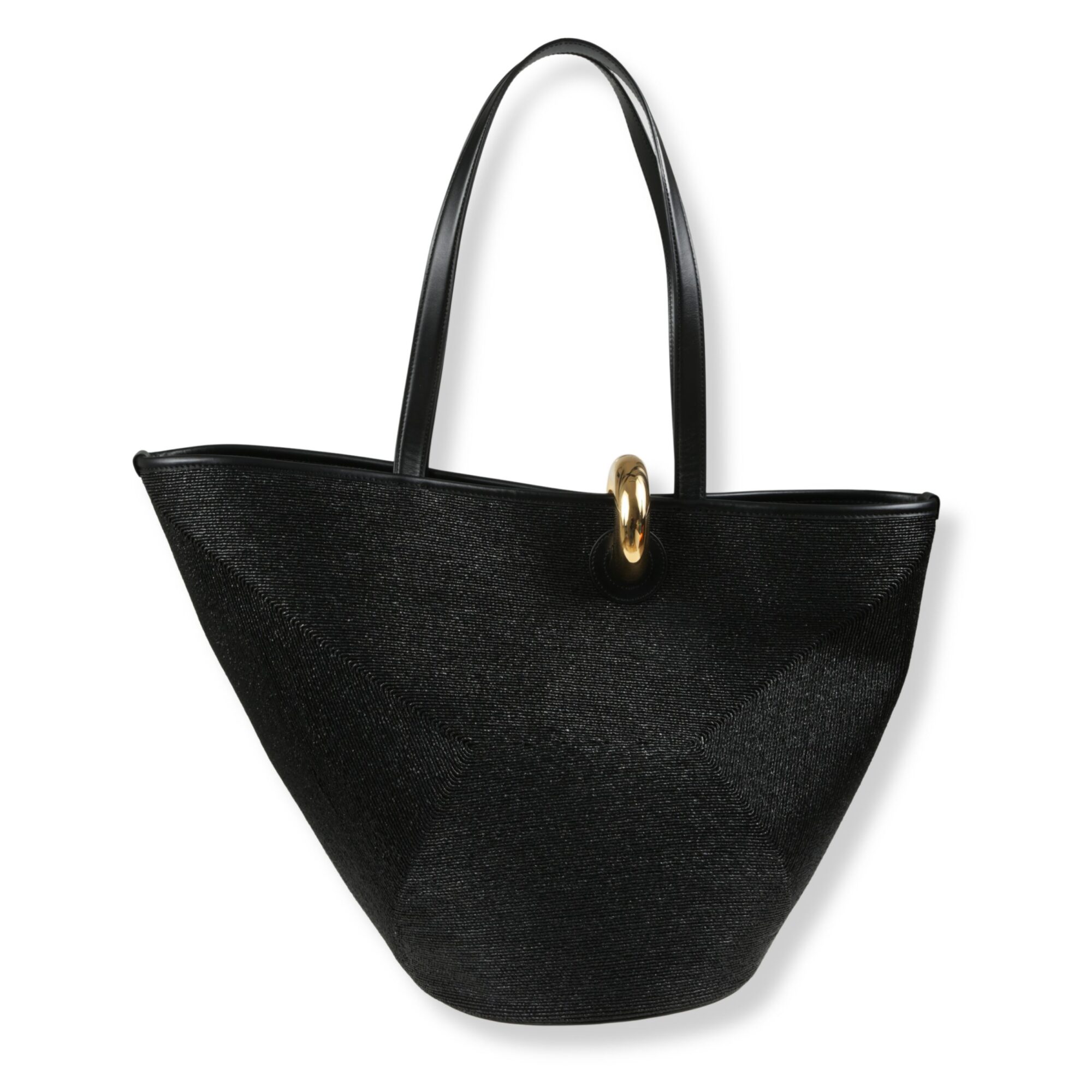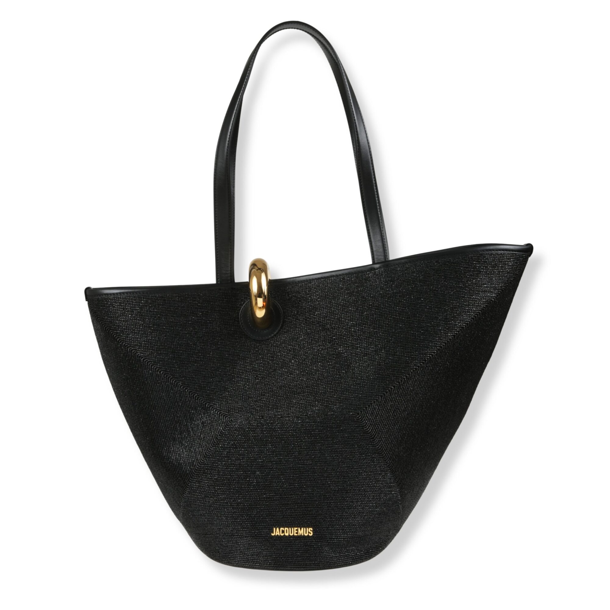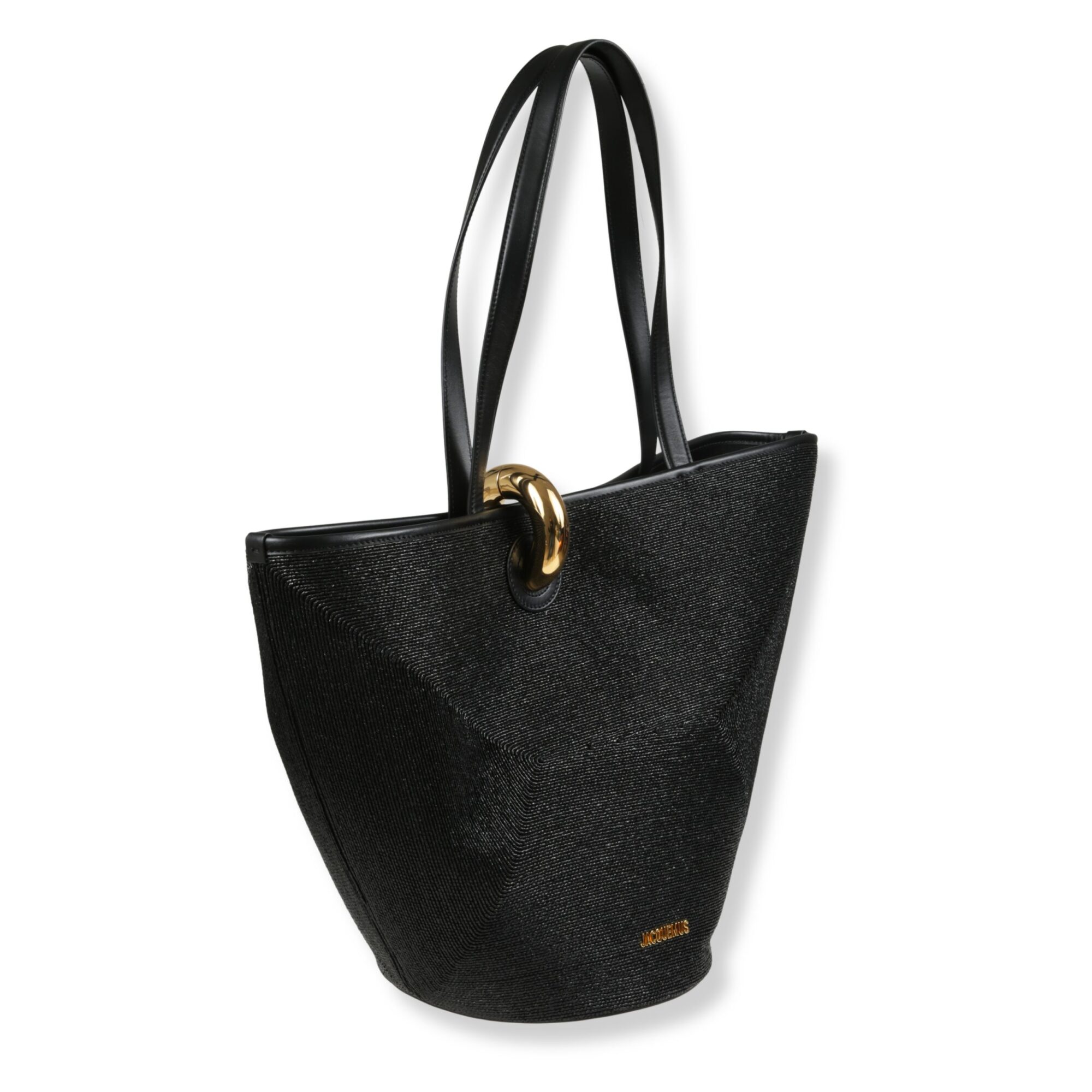 Le Bambola Jacquemus. Doppio manico superiore, chiusura con anello decorativo, tasca interna con zip.