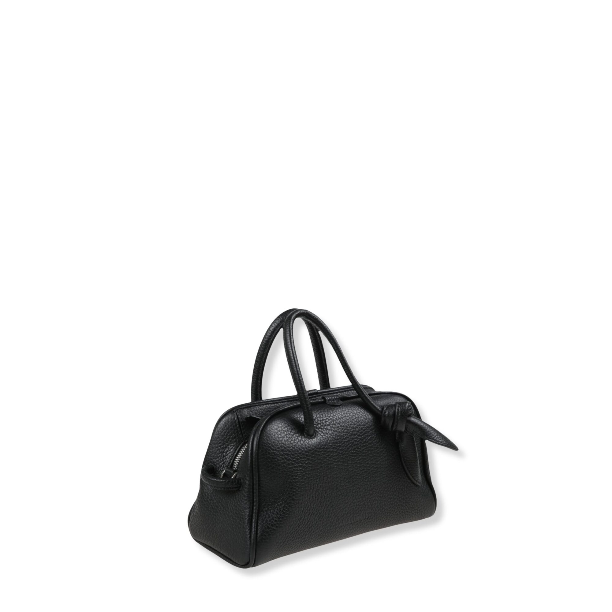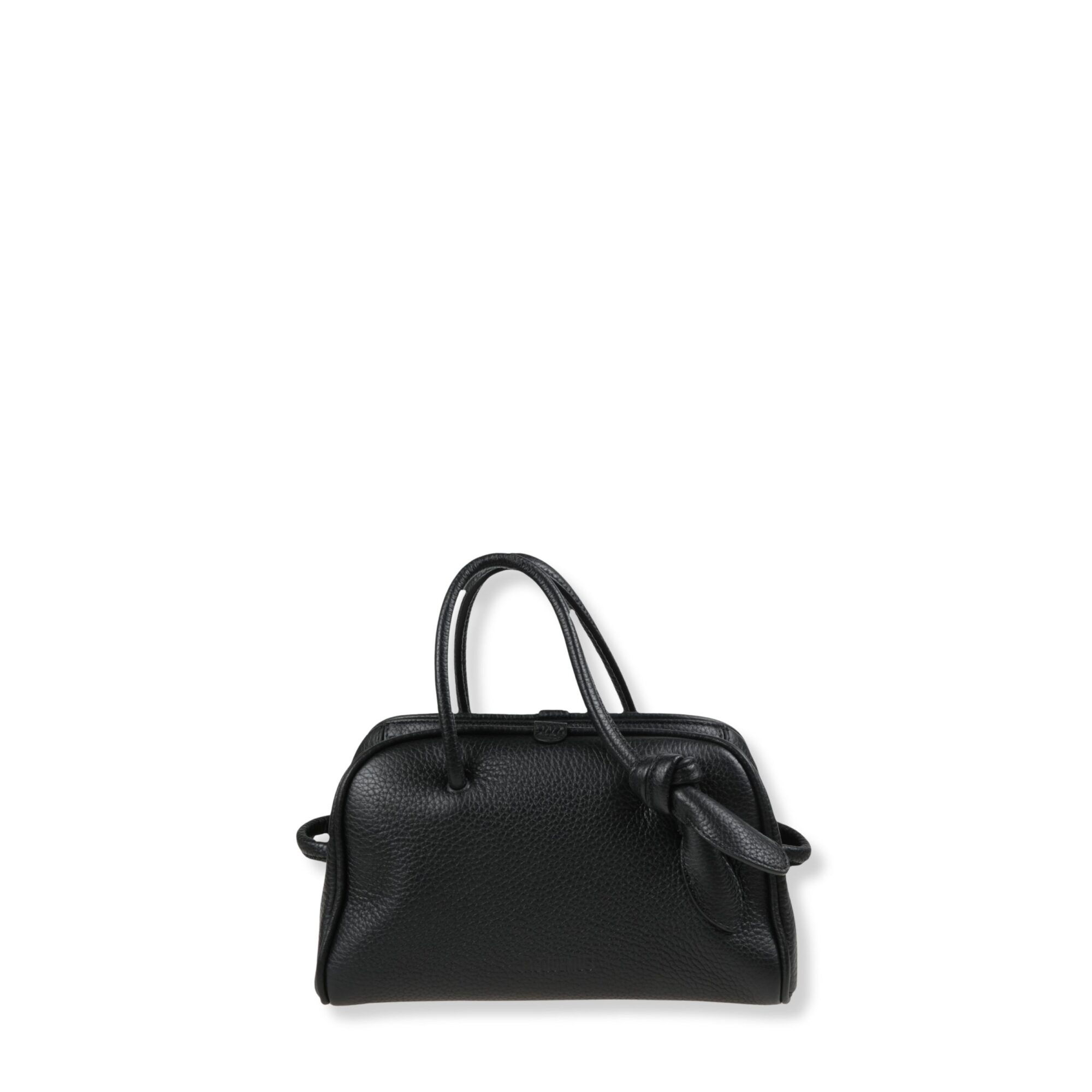 Il Piccolo Turismo Jacquemus. Modello bowling, in pelle granulosa. Tracolla staccabile e regolabile e manici doppi coordinati, con dettaglio annodato sull’estremità inferiore. Chiusura a zip superiore.