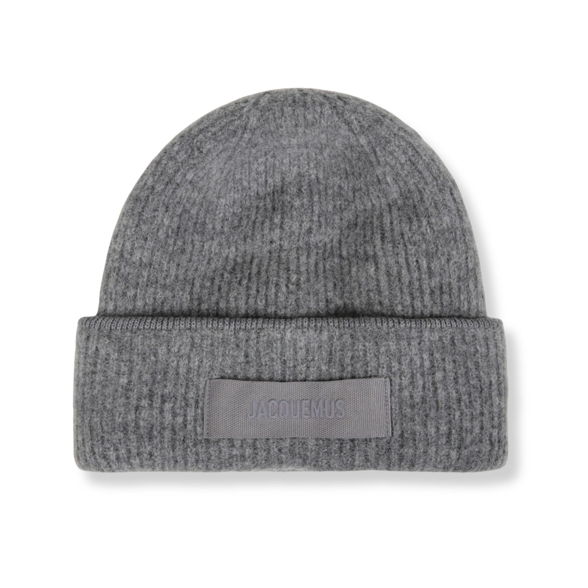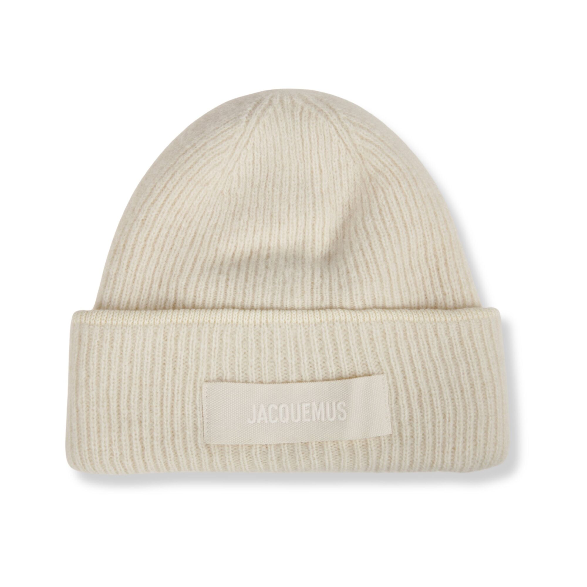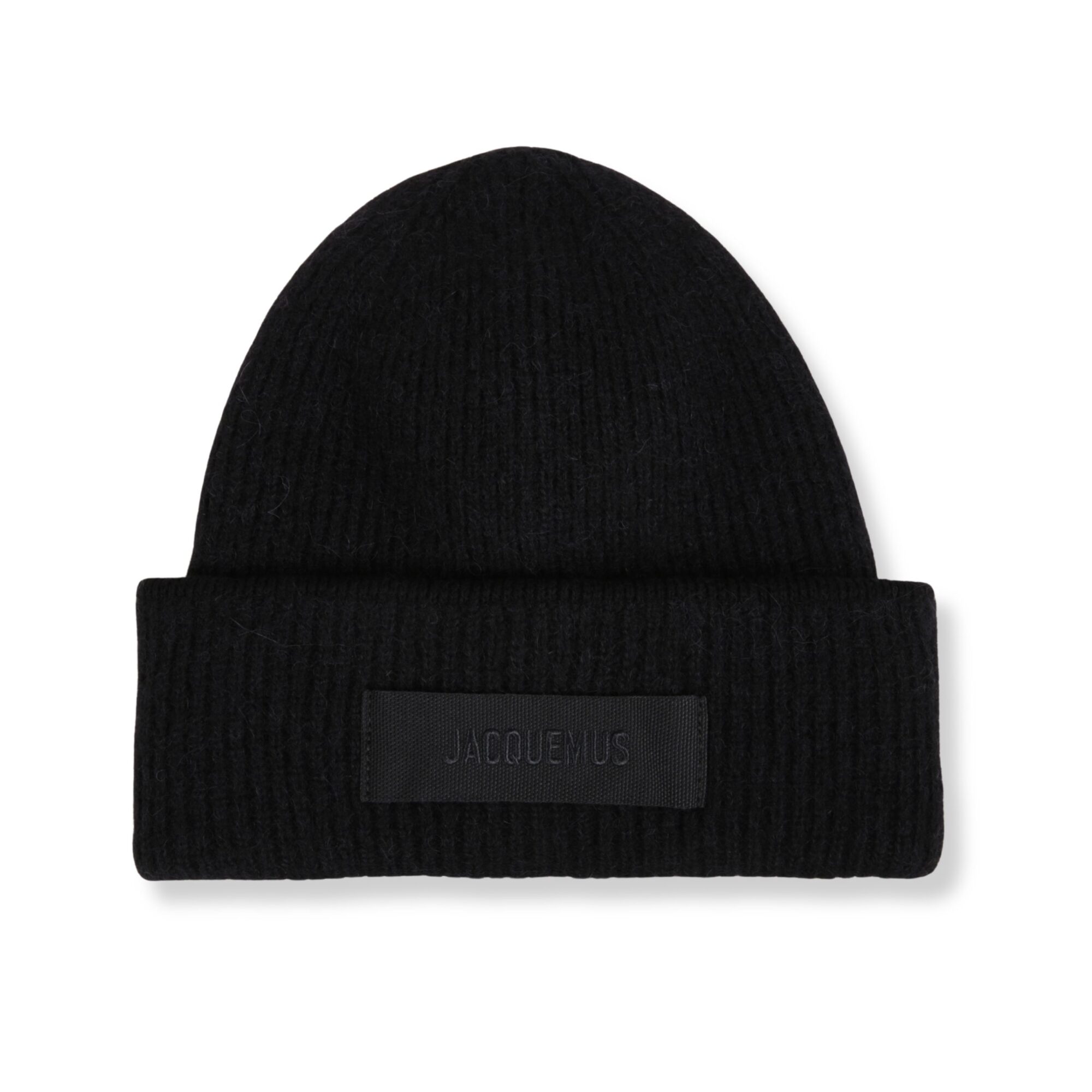 Le Bonnet Gros Grain Jacquemus. In maglia a coste, ampio risvolto con bordino a contrasto e targhetta in gros grain con logo del brand.
