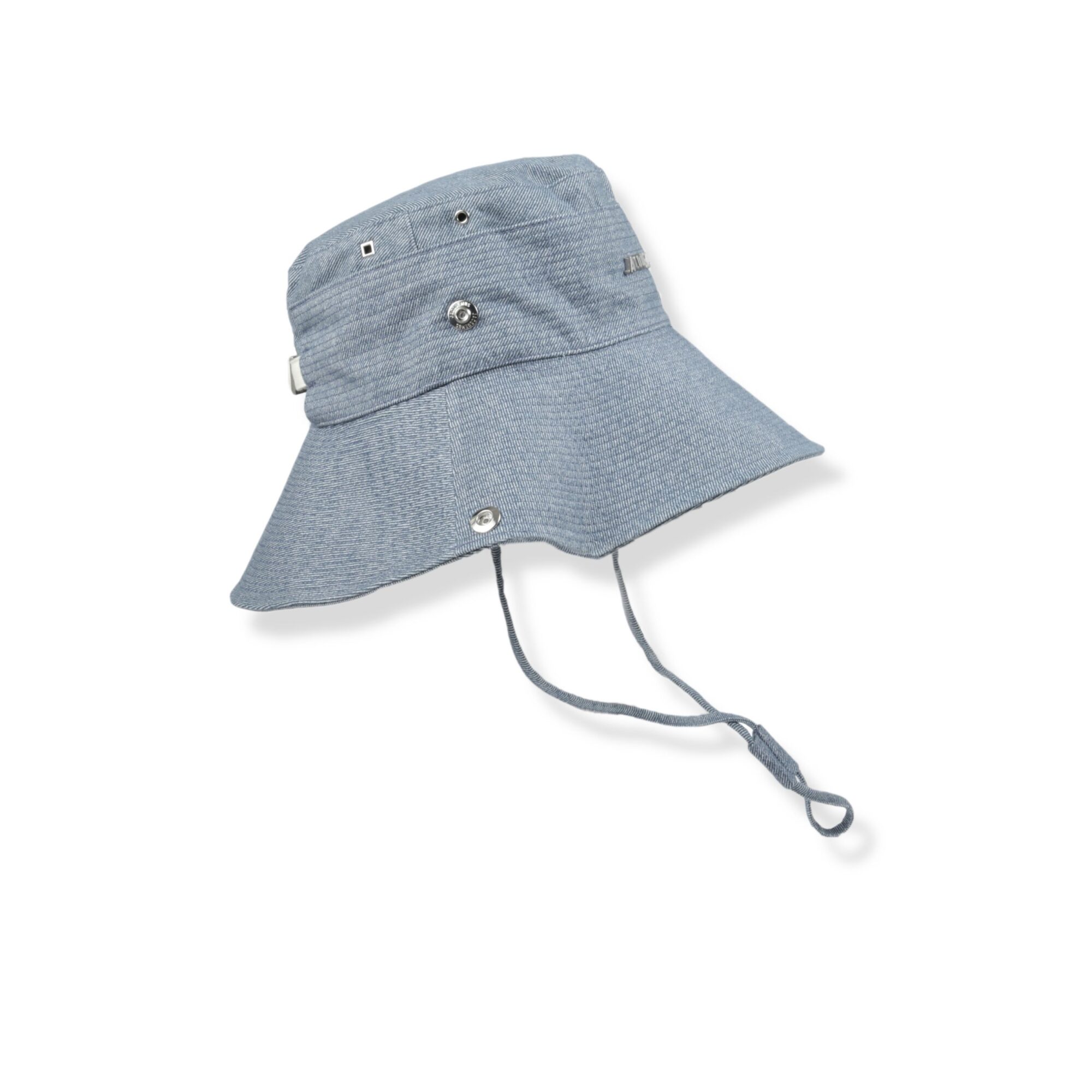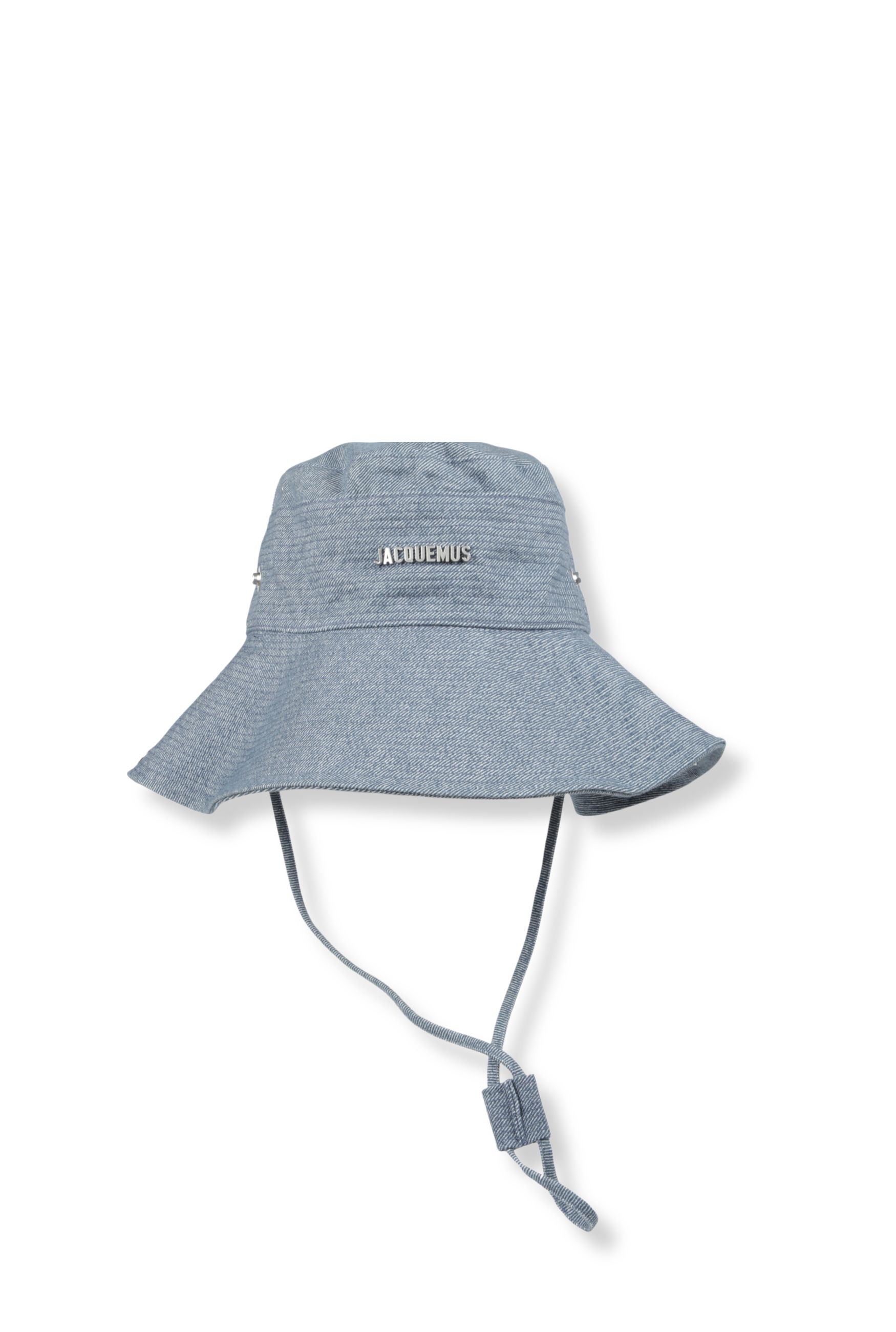 Cappello da pescatore Jacquemus. Design con cuciture orizzontali a vista, cordoncino lungo e regolabile, con dettagli e logo del brand color argento sul davanti.