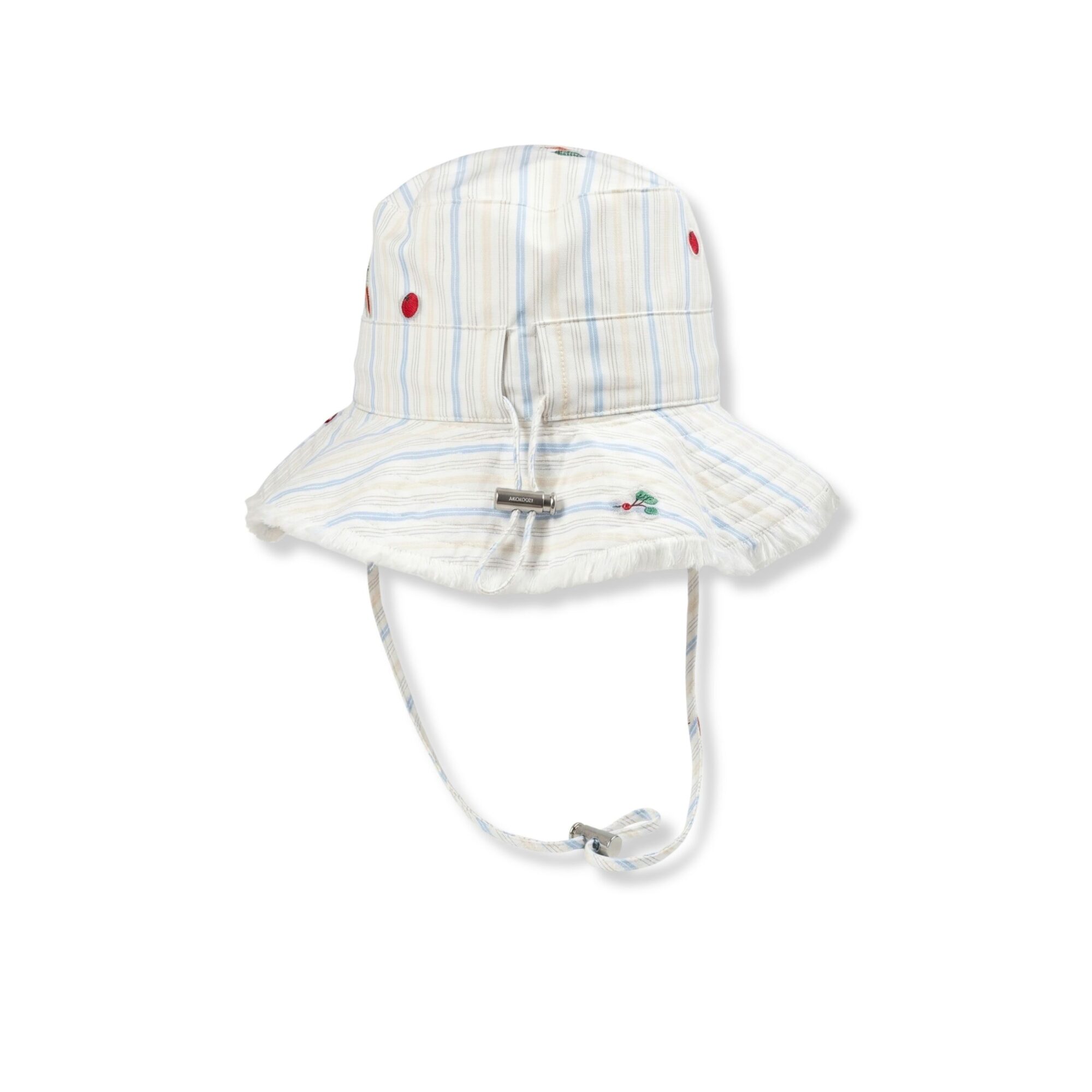 Le Bob Artichaut. In popeline di cotone, bordi sfrangiati, cordoncino regolabile.