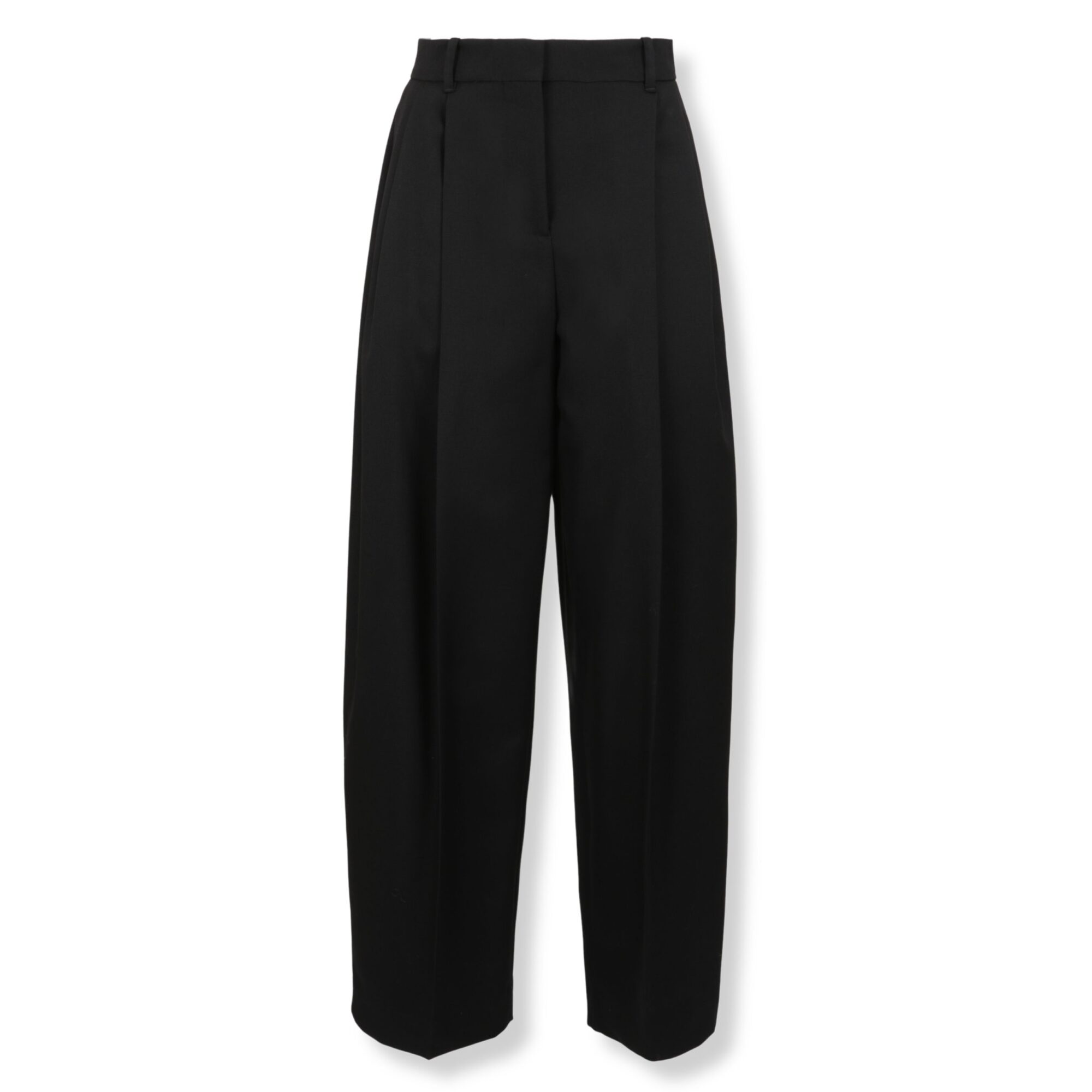 Pantaloni Man’s Jacquemus. Vita alta, linea sartoriale, con gamba larga dal taglio curvo. Doppie pieghe stirate frontali e sul retro, due tasche a filetto.