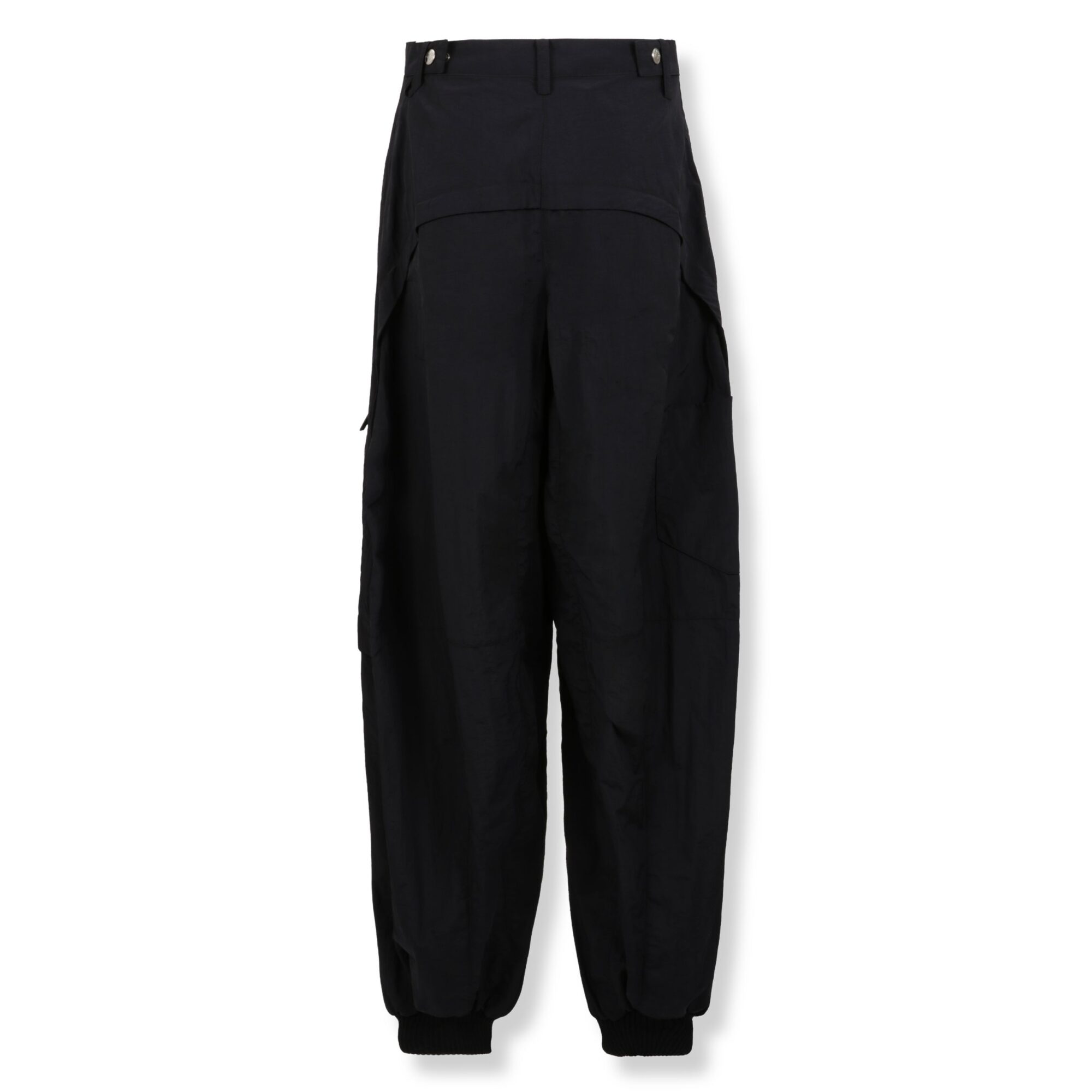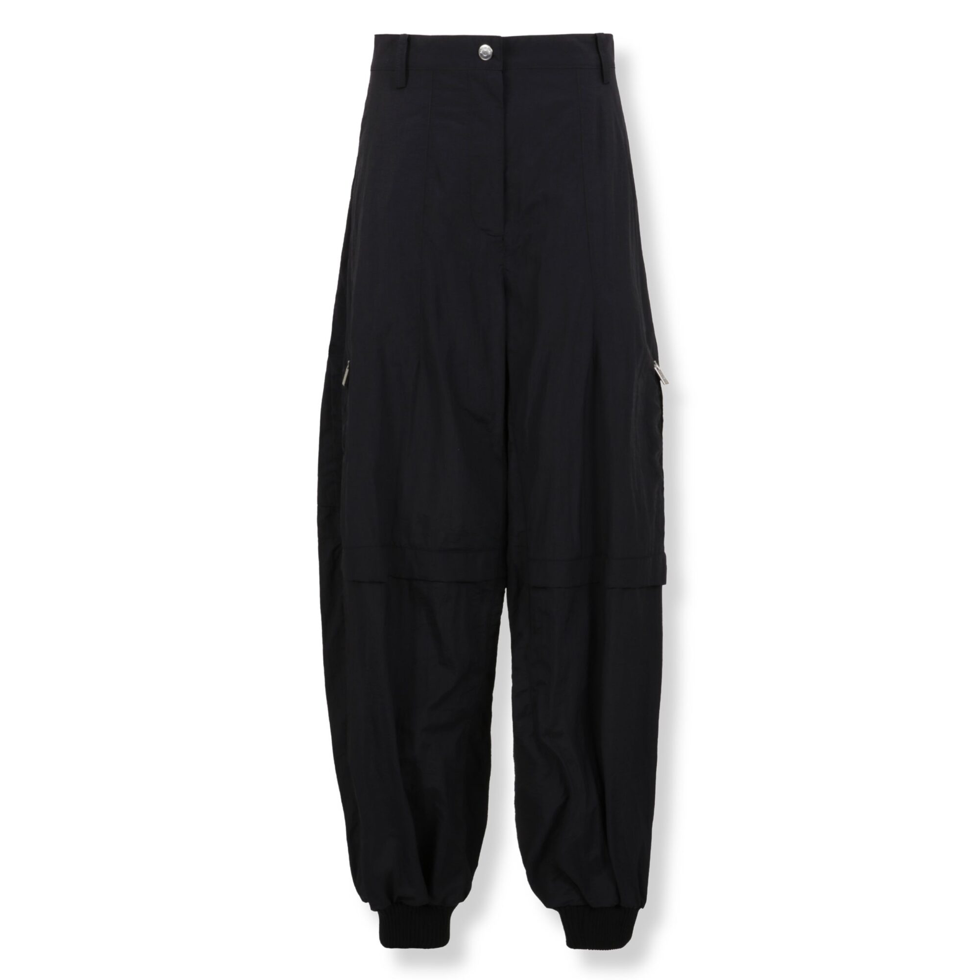 Pantaloni Ovalo Jacquemus. Vita alta, gamba curva e allungata. Lunghe tasche laterali con chiusura a zip e caviglie con polsini elasticizzati.