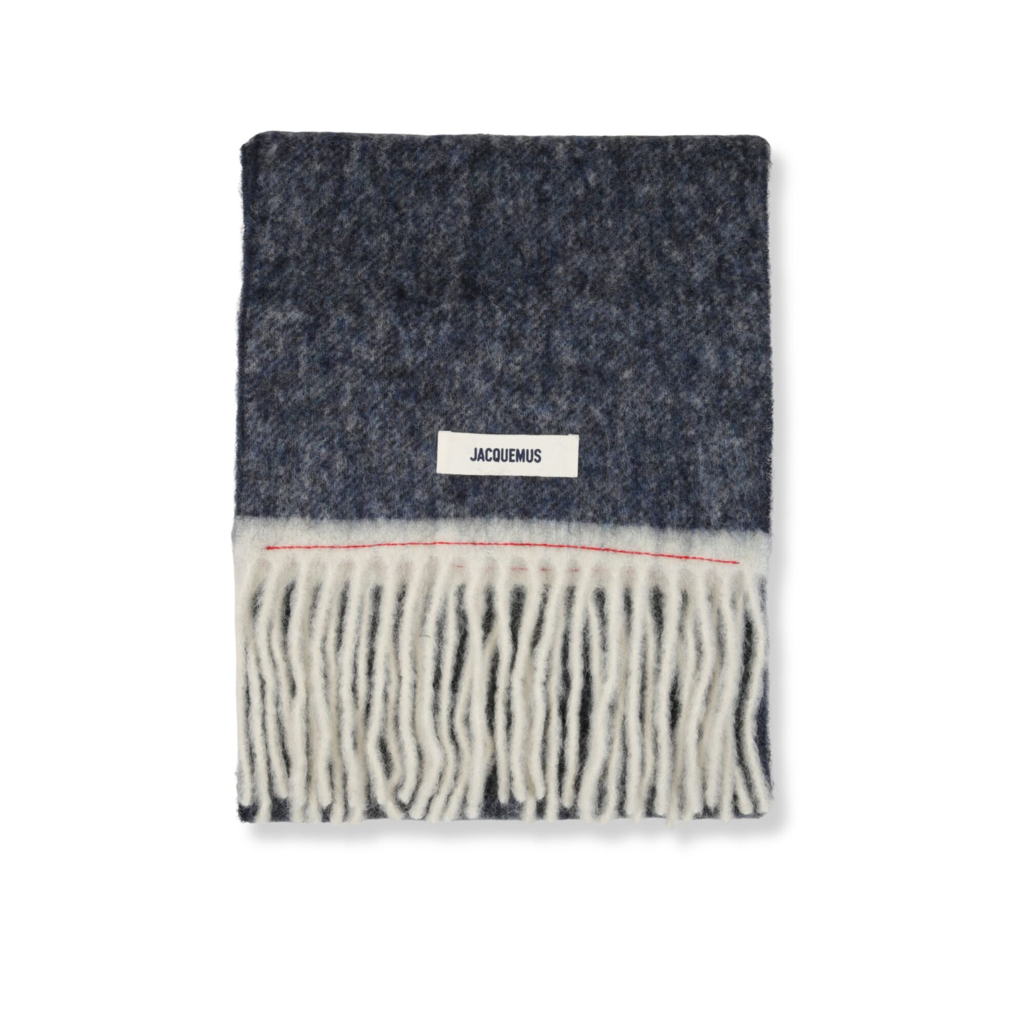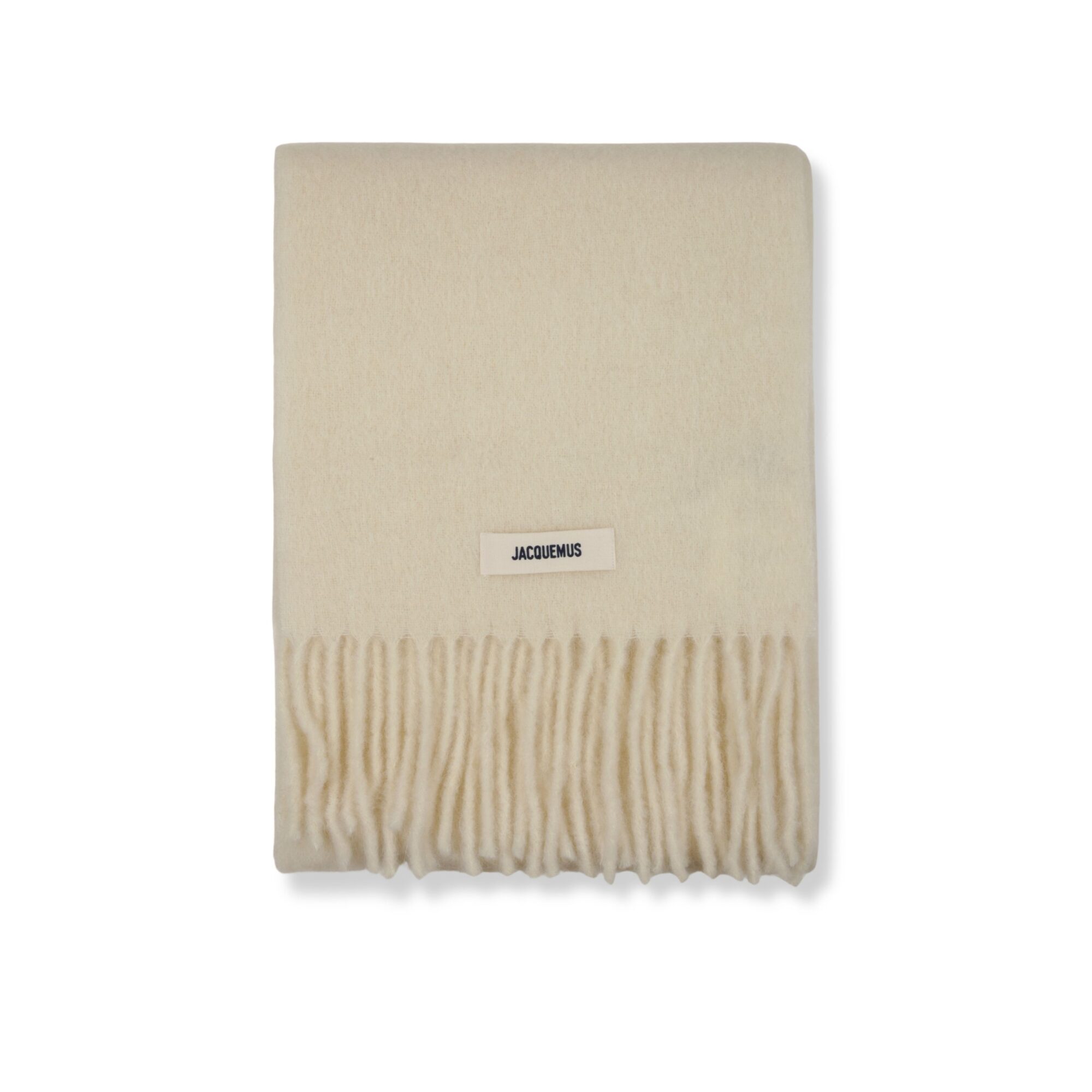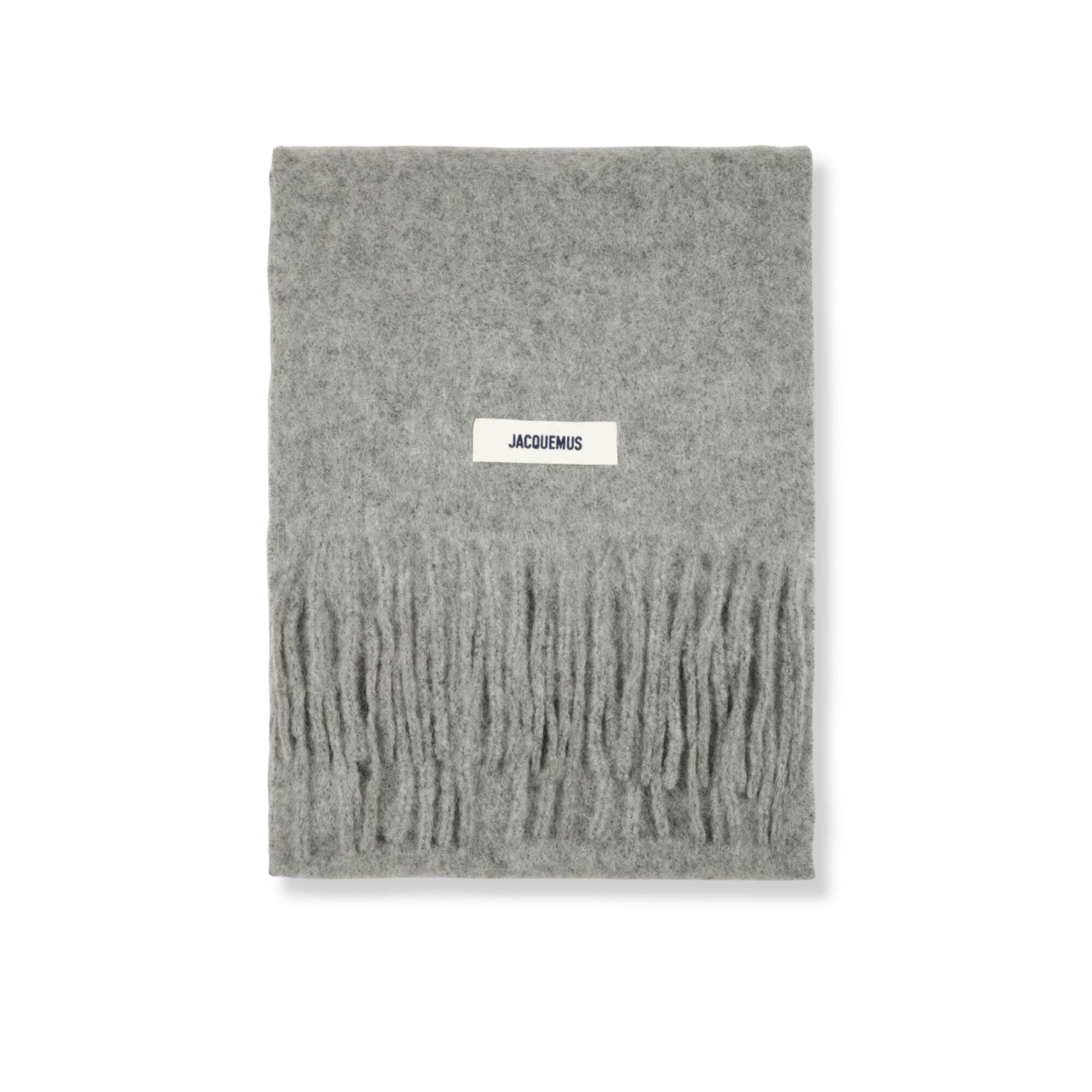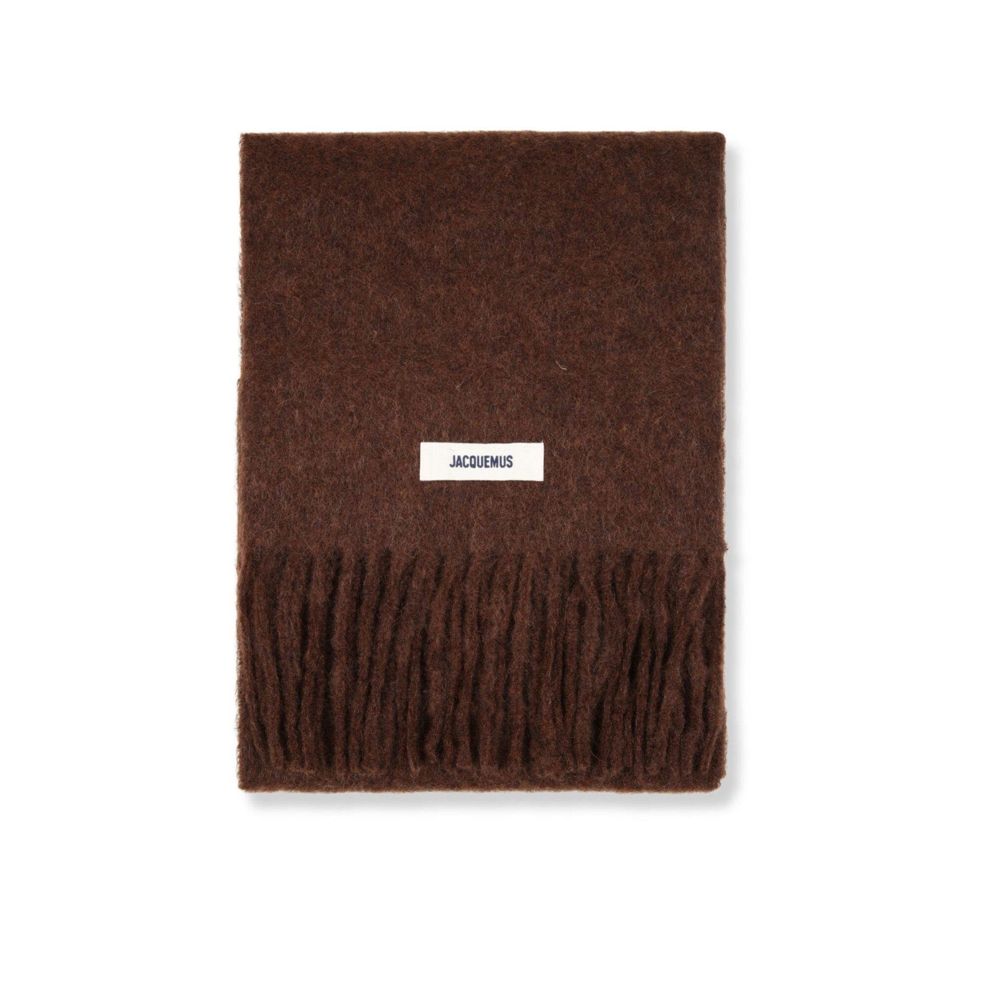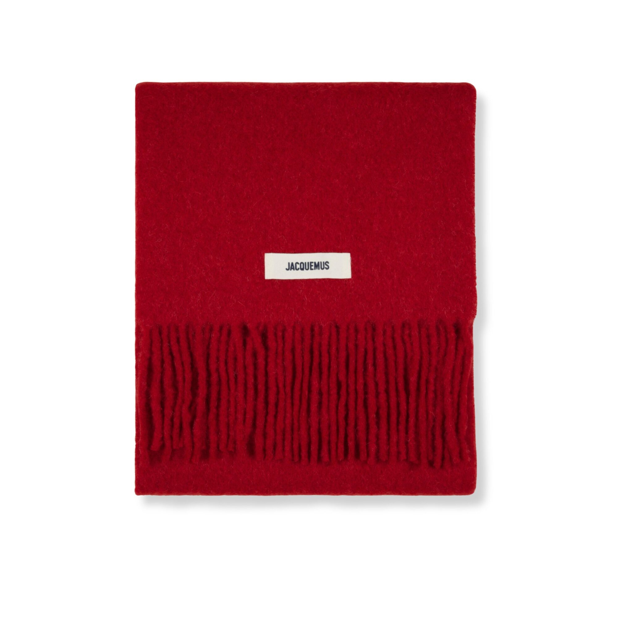 L’Écharpe Carro Jacquemus. Corpo in lana a tinta unita. Orlo a frange. Logo del brand in gros-grain ricamato.
