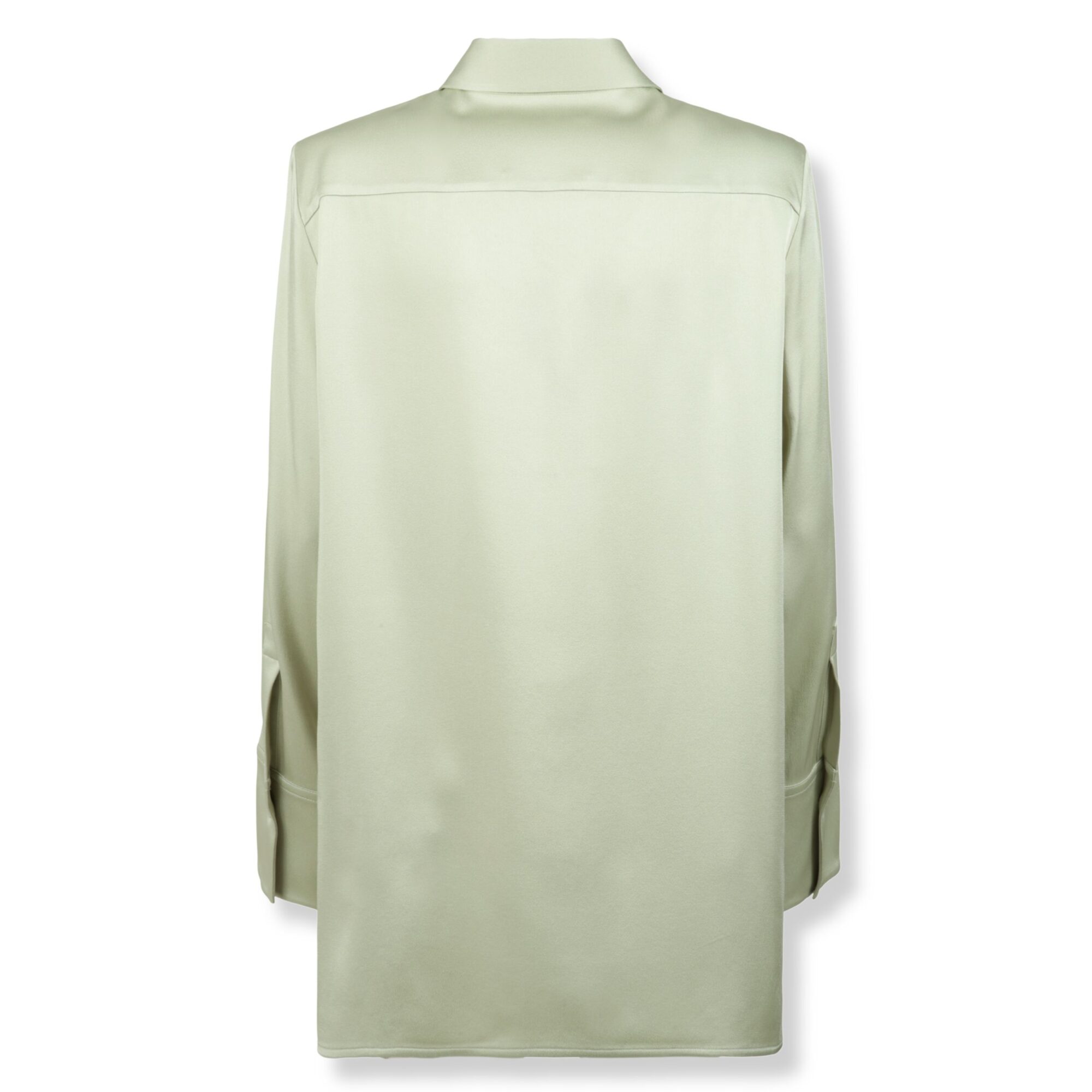 Camicia Jil Sander. Silhouette fluida con linee dritte, colletto a punta e abbottonatura nascosta, maniche lunghe con polsini alti e squadrati.