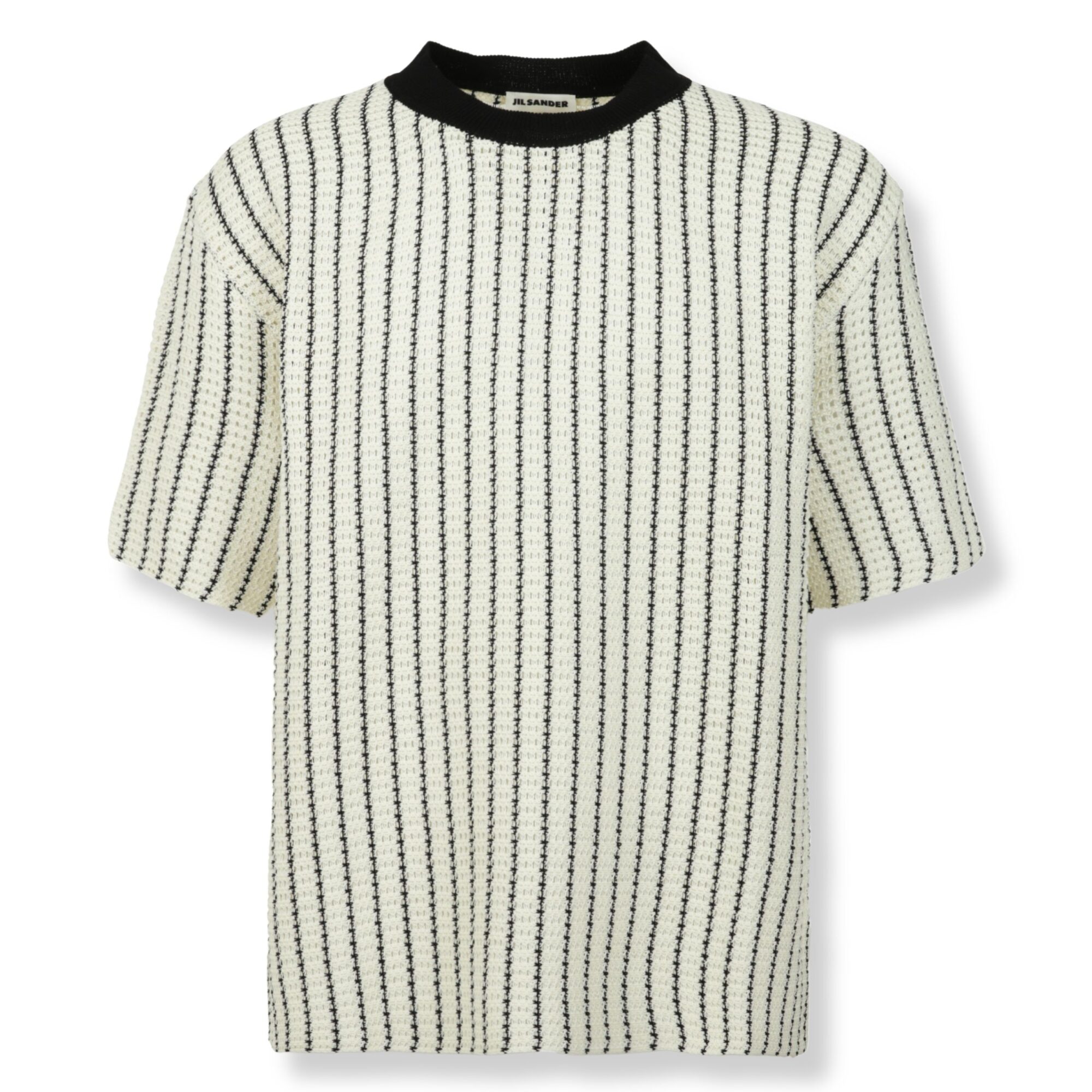 T-Shirt Jil Sander. Design in crochet ricamato con motivo a righe verticali, girocollo a costine.