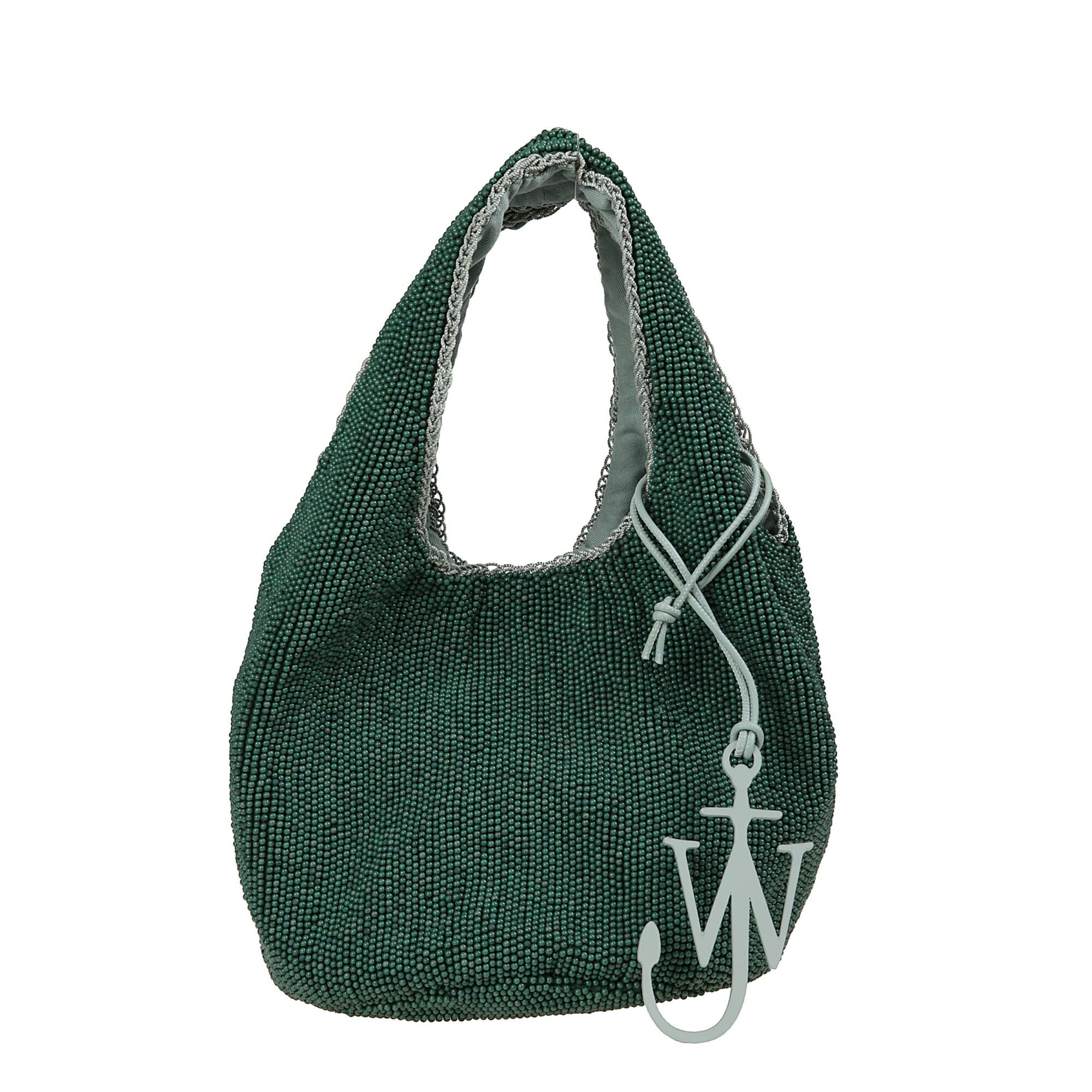 Borsa a spalla morbida, rivestita con un motivo a perline. Charm del logo JW Anderson pendente.