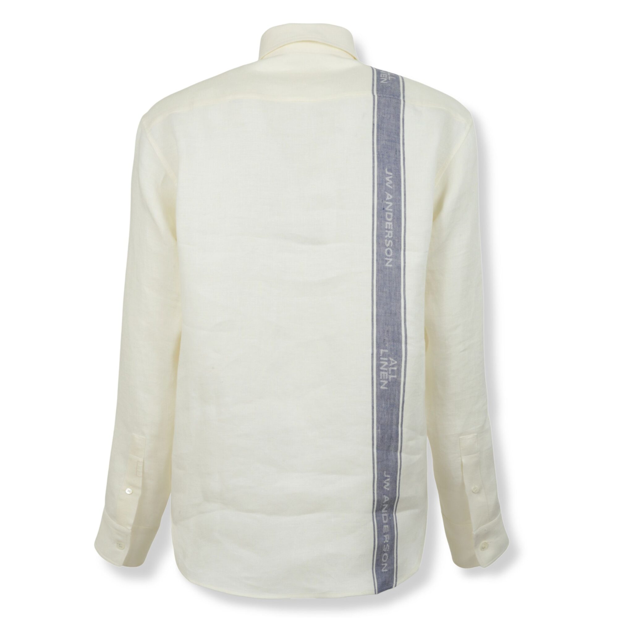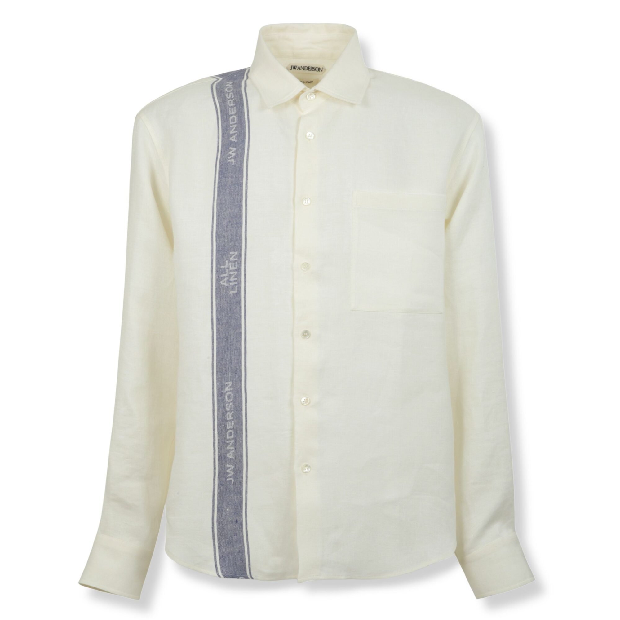 Camicia JW Anderson in lino irlandese. Colletto classico a punta e abbottonatura frontale, banda verticale decorativa con logo del brand.