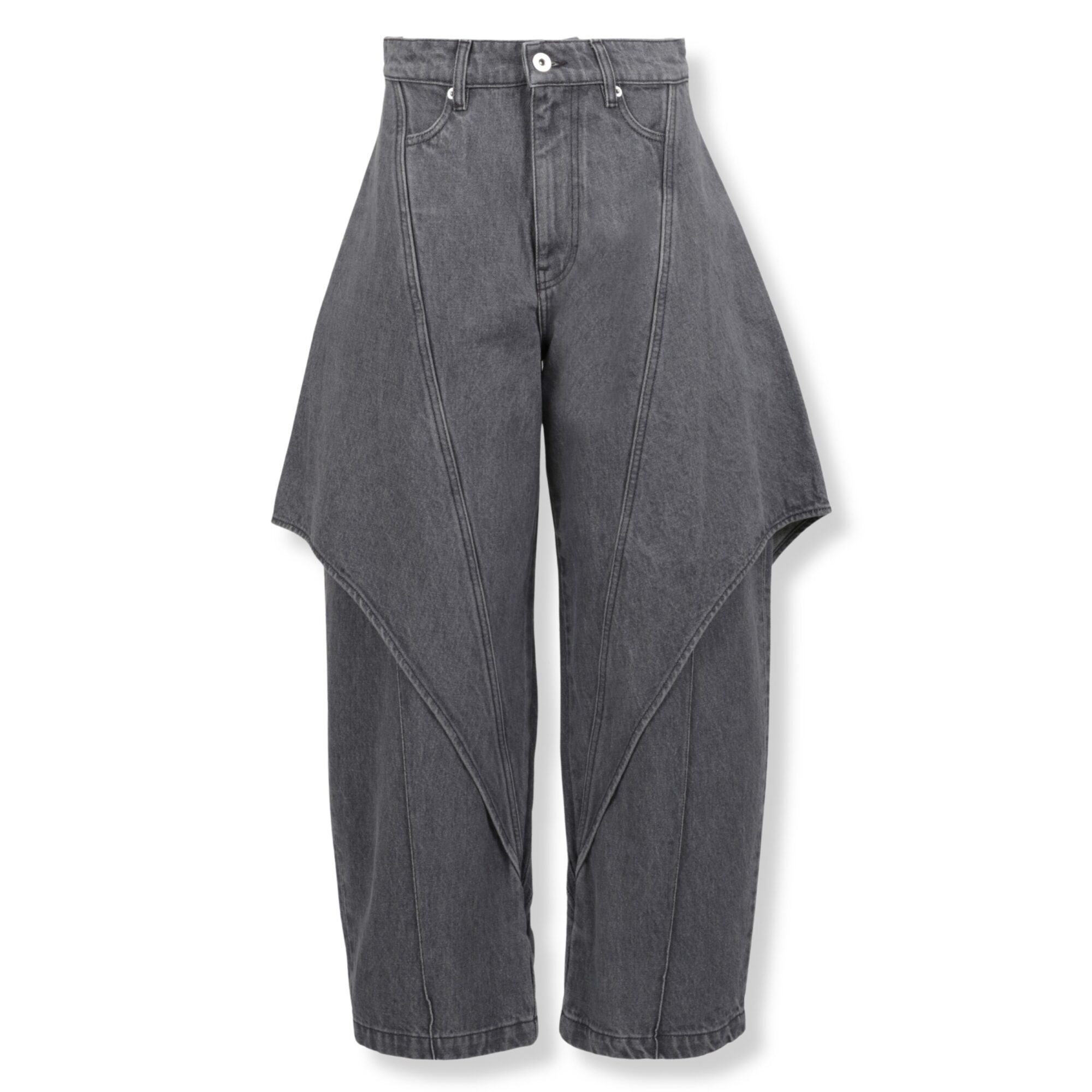 Cropped Sculptural Jeans JWAnderson. Design con pannelli strutturati applicati frontalmente. Vita media, gamba larga, patch con logo del brand applicata sul retro.