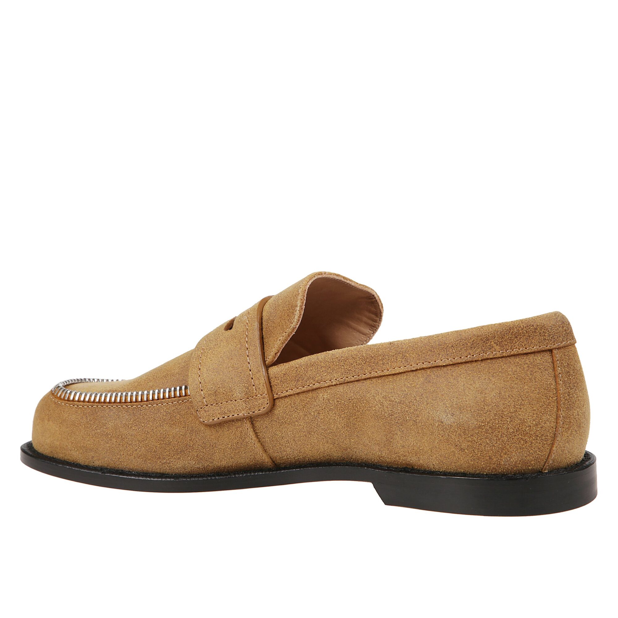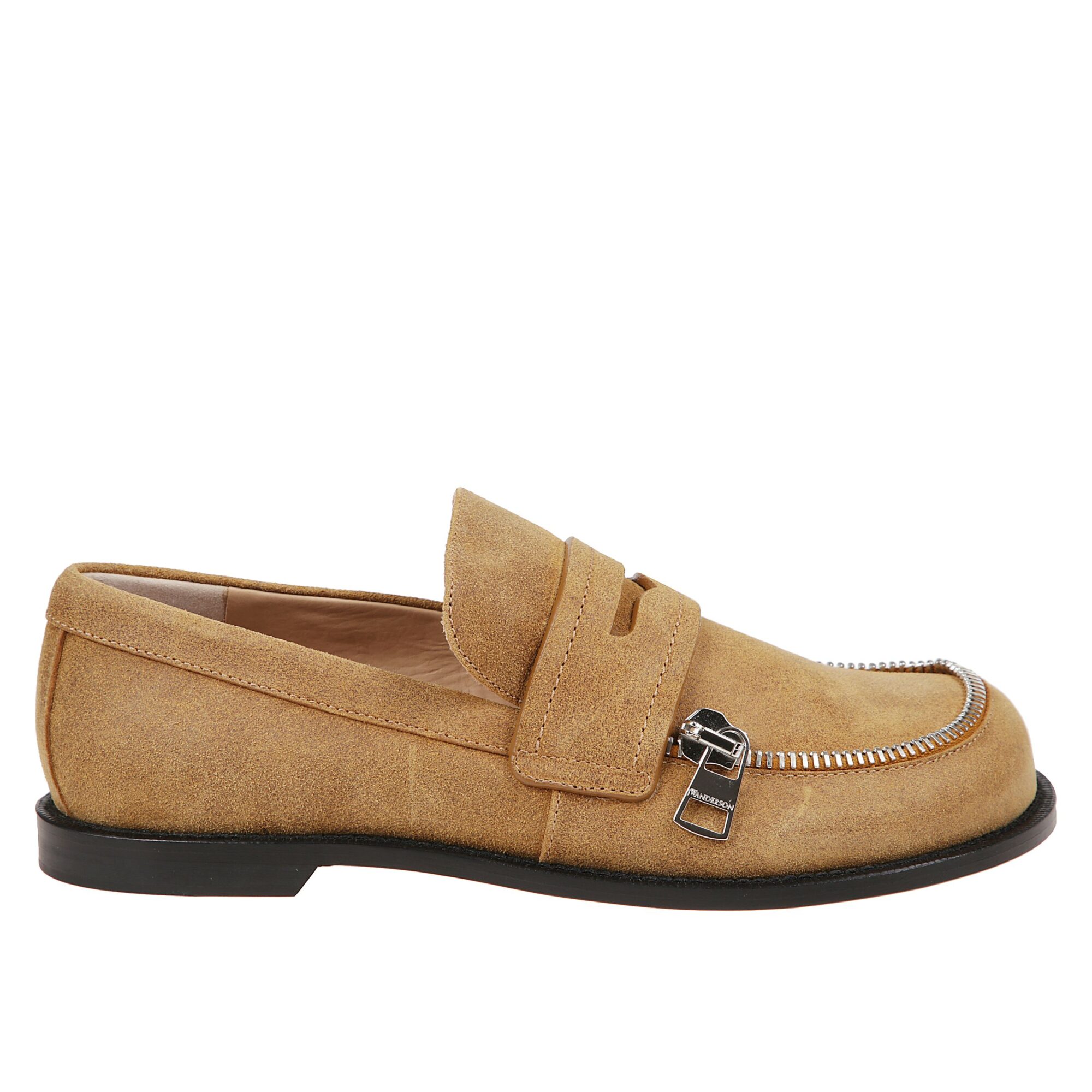 Mocassini JW Anderson in pelle scamosciata. Punta tonda. Zip frontale a vista decorativa.
