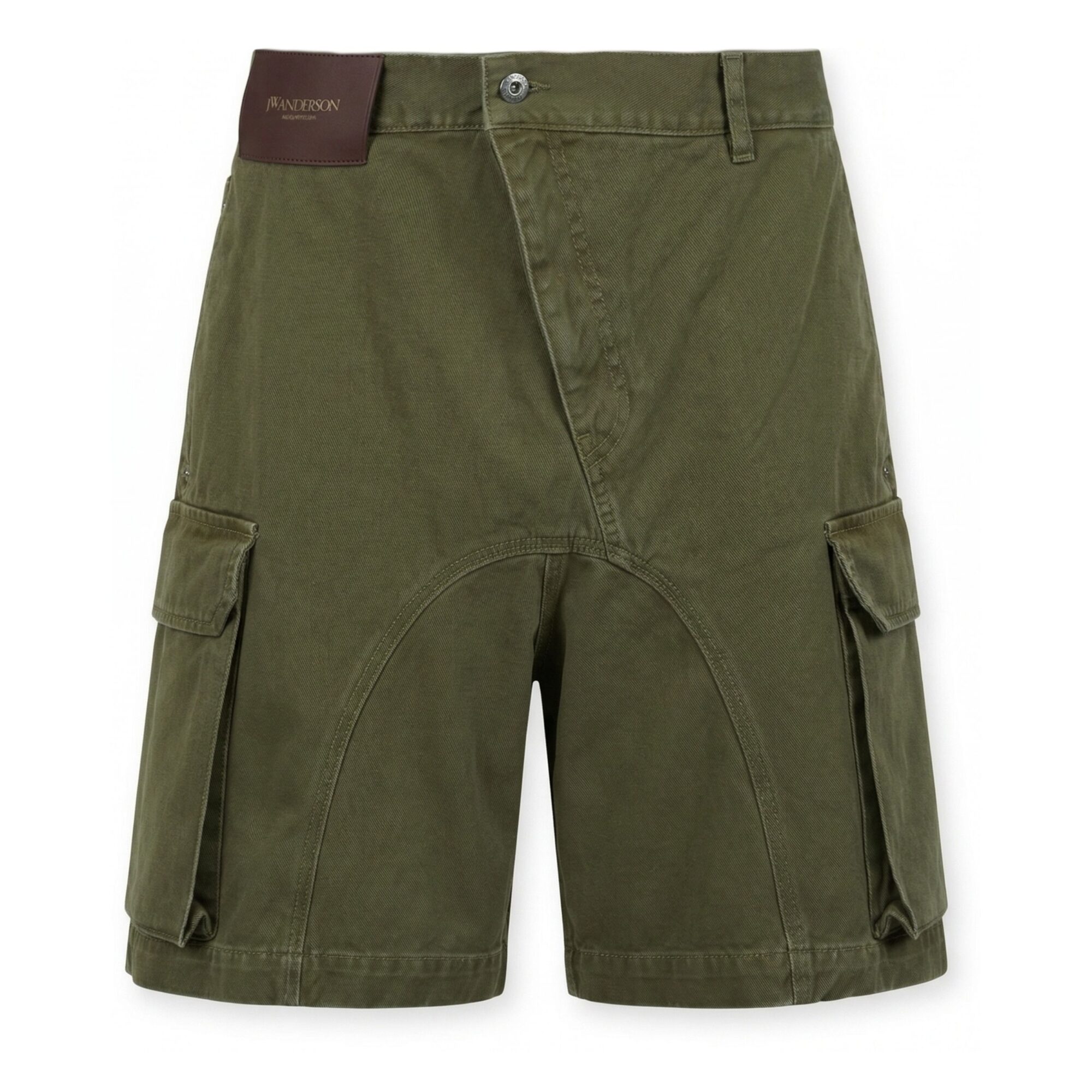 Twisted Patch Pocket Shorts JW Anderson. Chiusura frontale asimmetrica, tasche cargo laterali, gamba ampia.