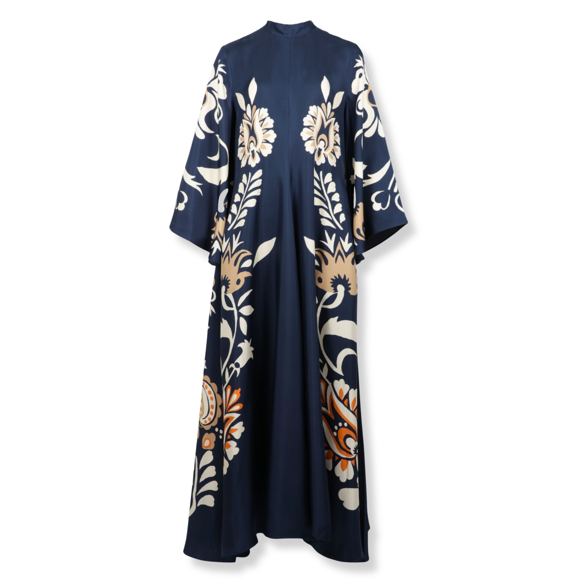 Magnifico La Double J. Design in twill di seta, con fantasia Selva. Collo rialzato, maniche drappeggiate a cascata e gonna lunga con orlo svasato.