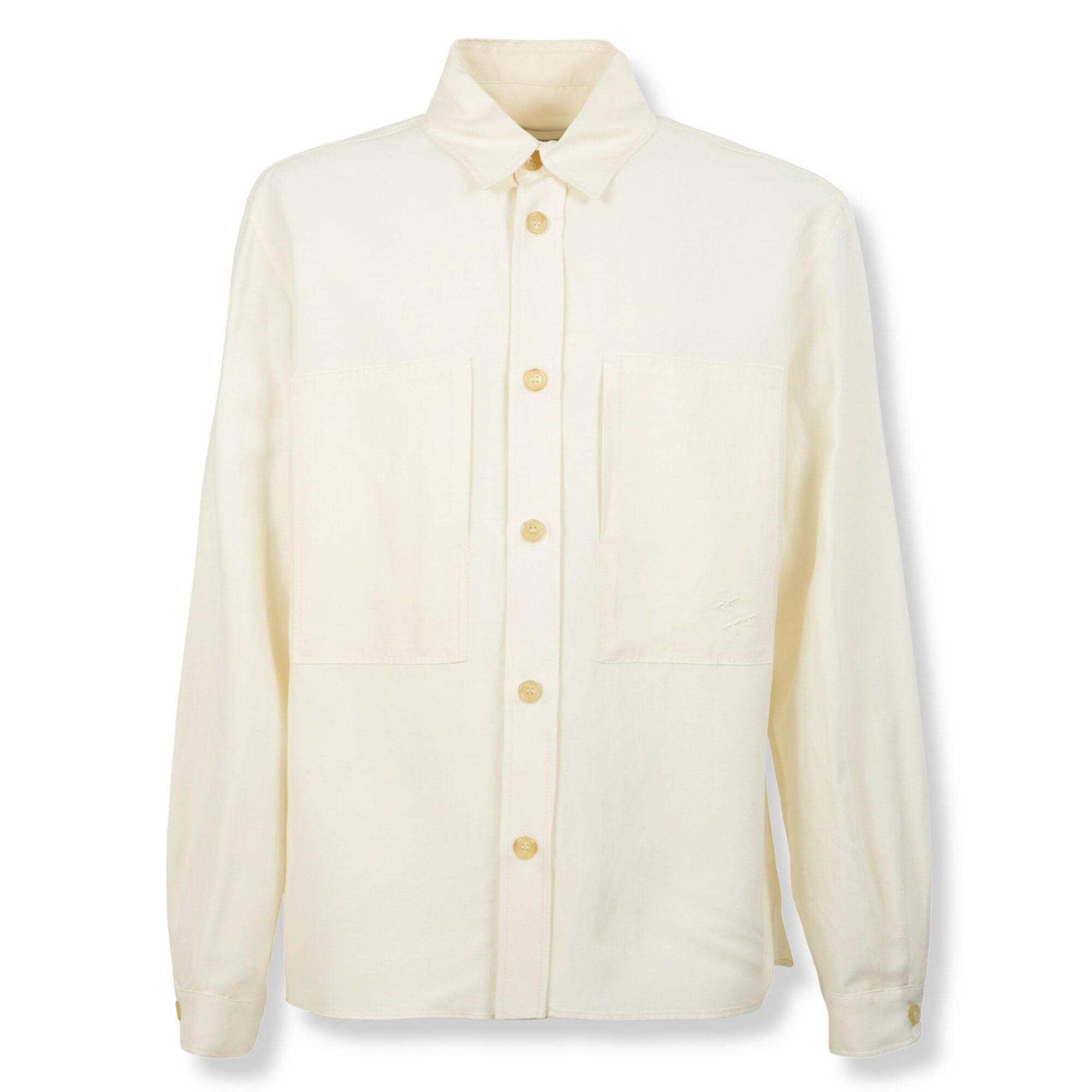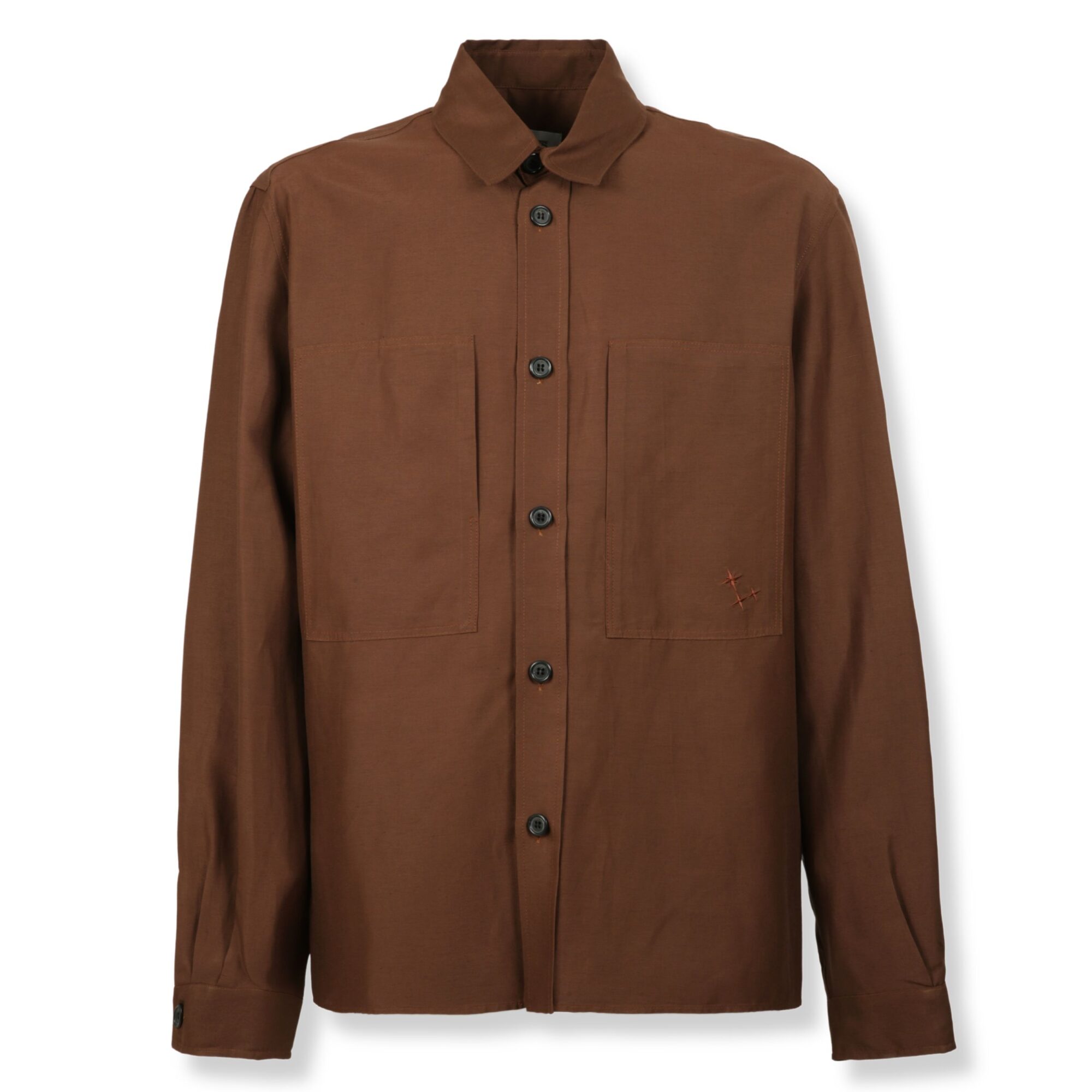 Overshirt Laneus. Vestibilità oversize, colletto a punta e abbottonatura frontale. Due tasche applicate sul petto.