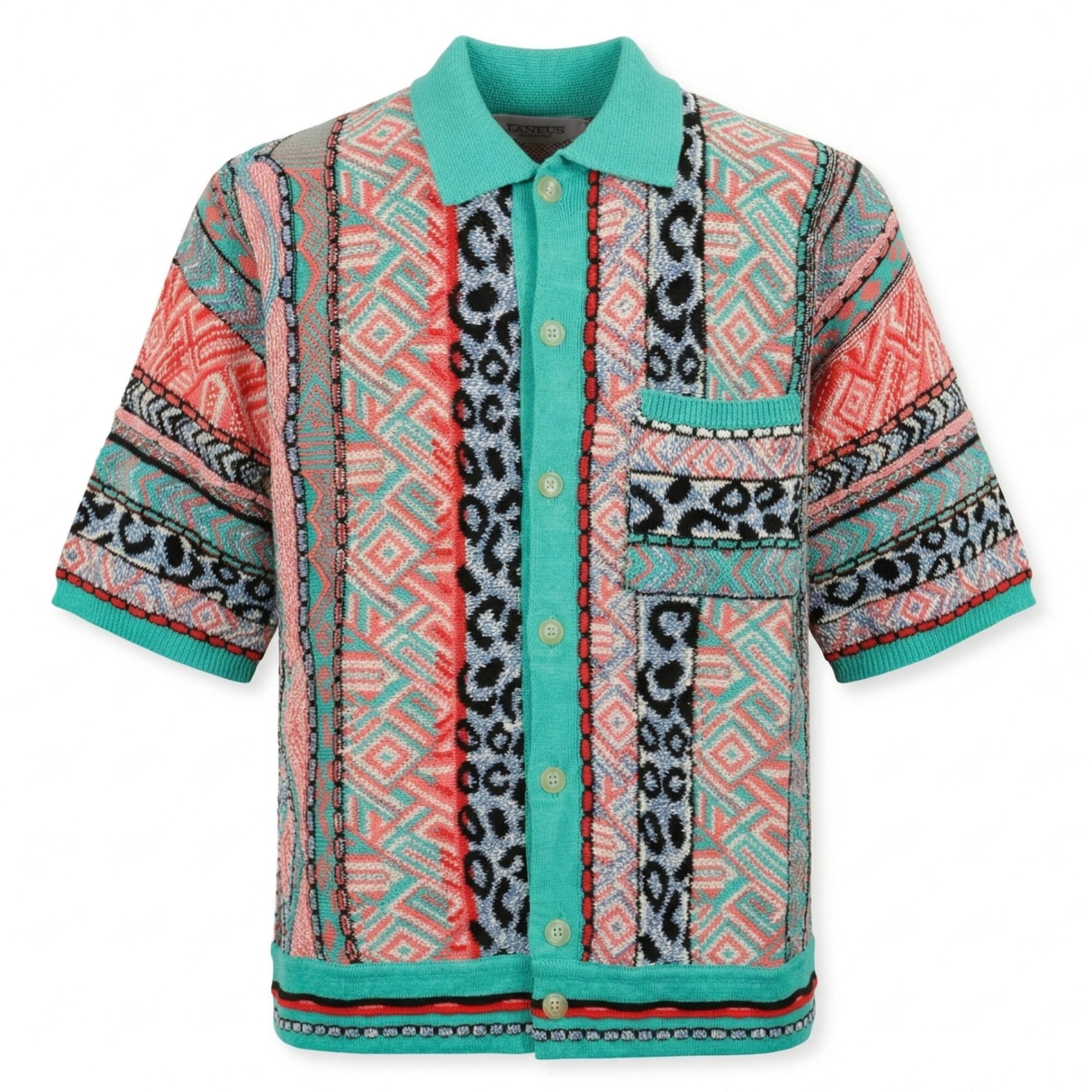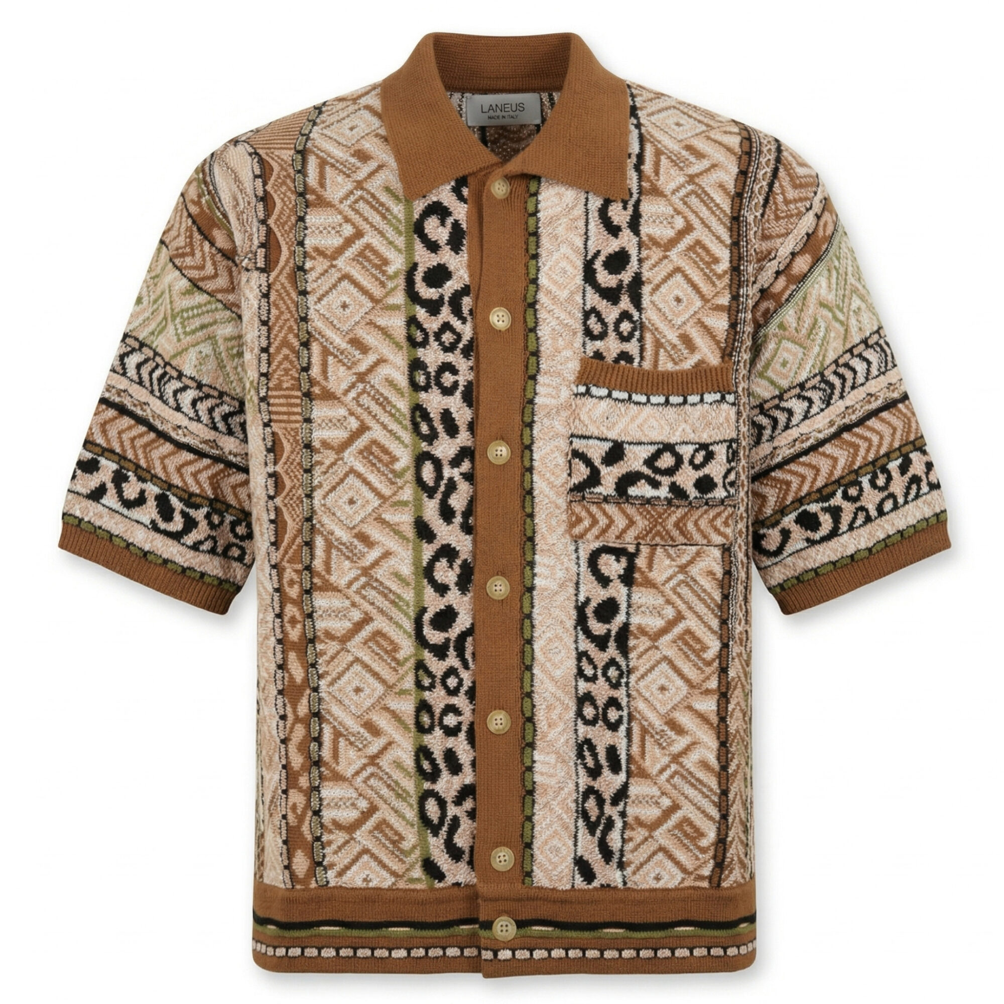 Knit Shirt Laneus. Design in cotone jacquard multifilo, colletto a punta e chiusura frontale a bottoni, taschino sul petto.