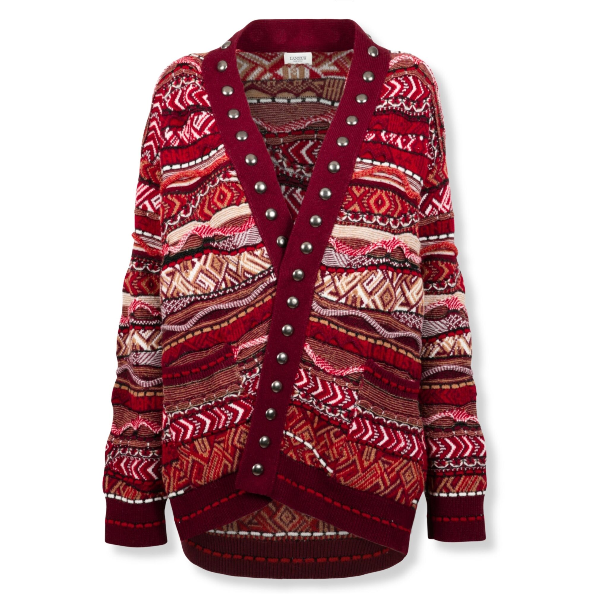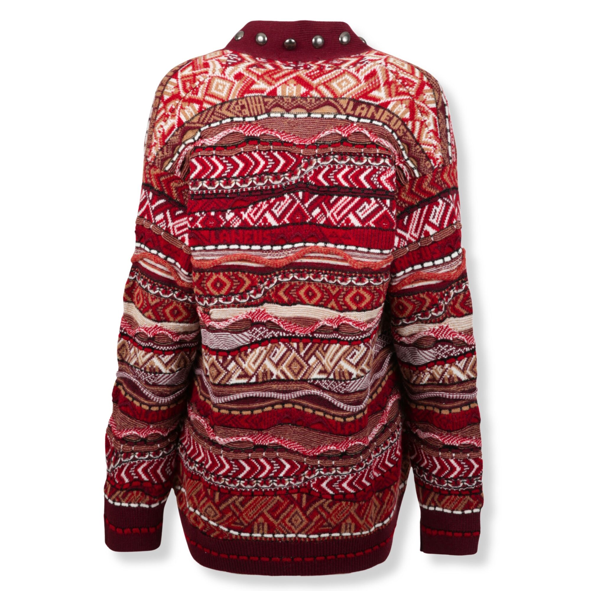 Cardigan Oversize Iconic Jacquard. Design con motivo “LA.” iconico del brand, impreziosito con borchie lungo l’apertura frontale e orli a costine.